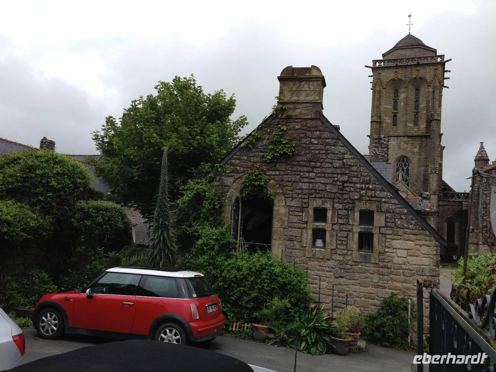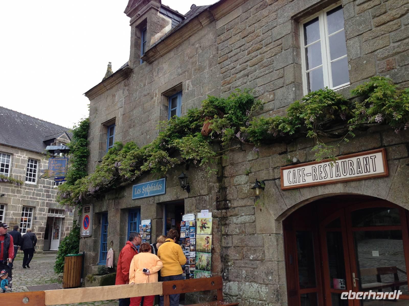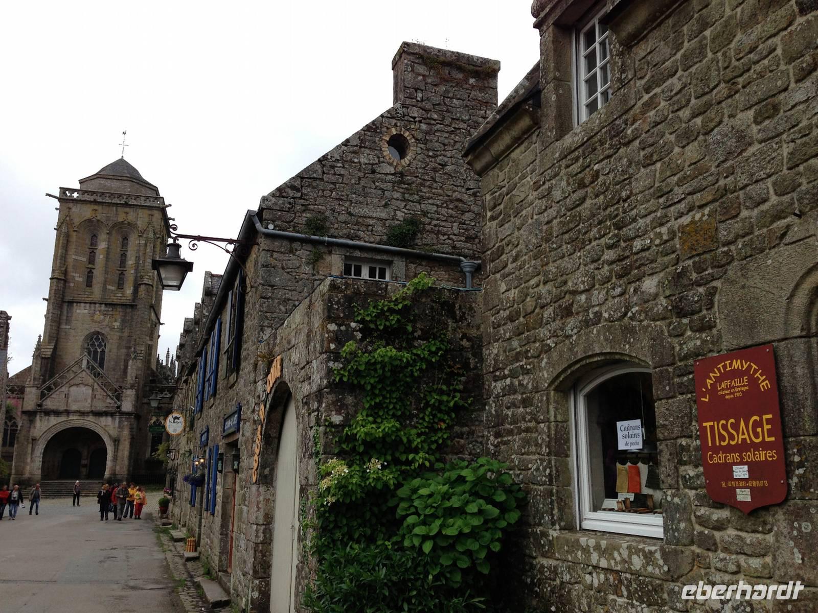 Bevor wir nach Quimper zurückfahren, statten wir der Bilderbuch-Ortschaft Locronan einen Besuch ab. Das winzige Nest besteht ausschließlich aus schönen Renaissance-Häusern aus Granit. Den reichsten Bauschmuck haben die Häuser am Dorfplatz, wo sich auch die Kirche befindet, welche dem heiligen Ronan gewidmet ist. Durch Hanfverarbeitung und den Export von Segeltuch in die ganze Welt war Locronan zu unermesslichem Reichtum gekommen, sodass alle Häuser aus dem haltbaren Granit gebaut werden konnten.