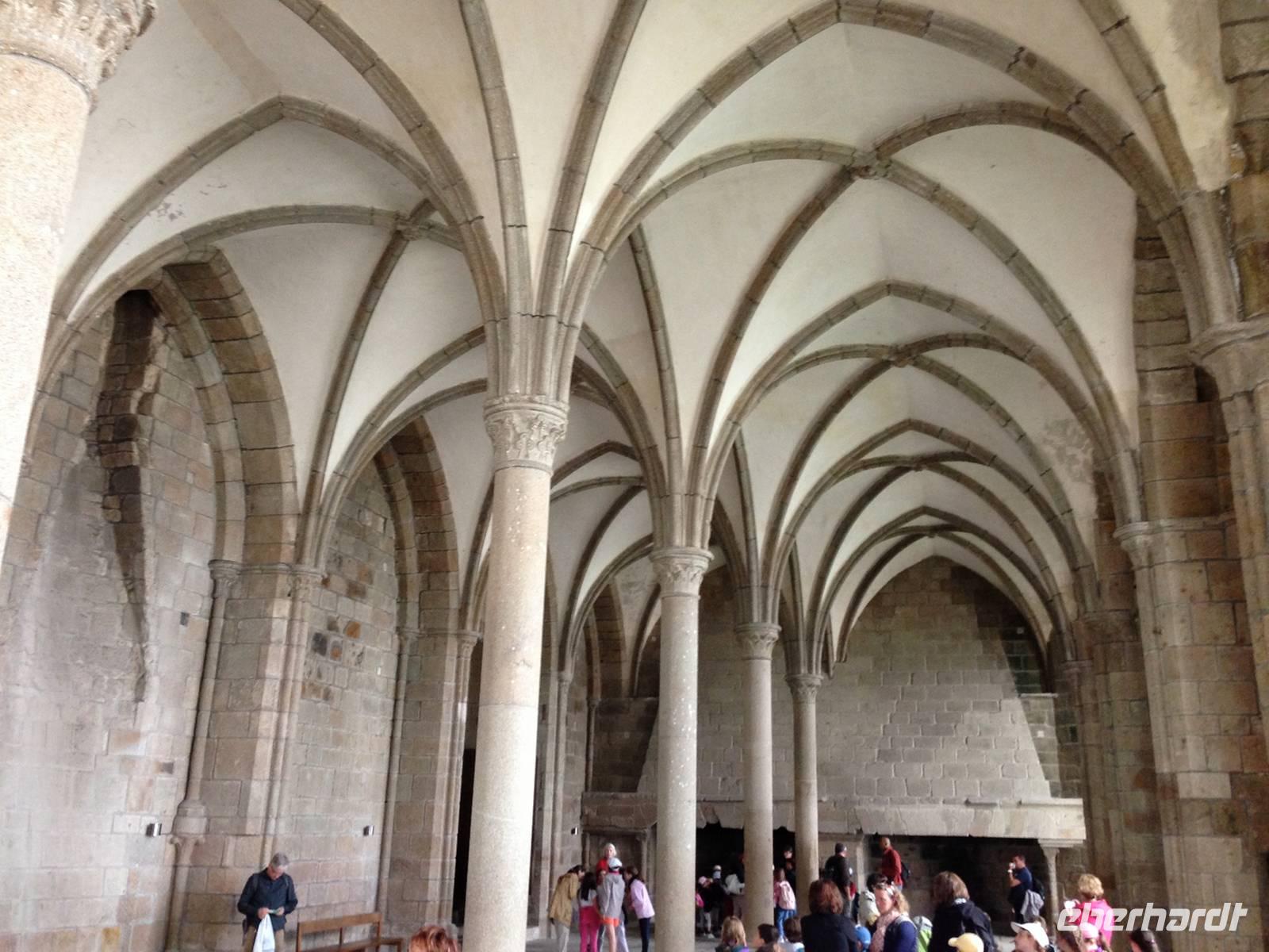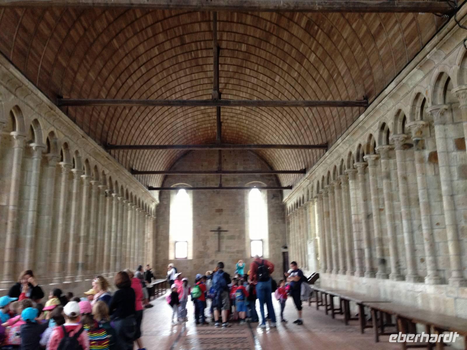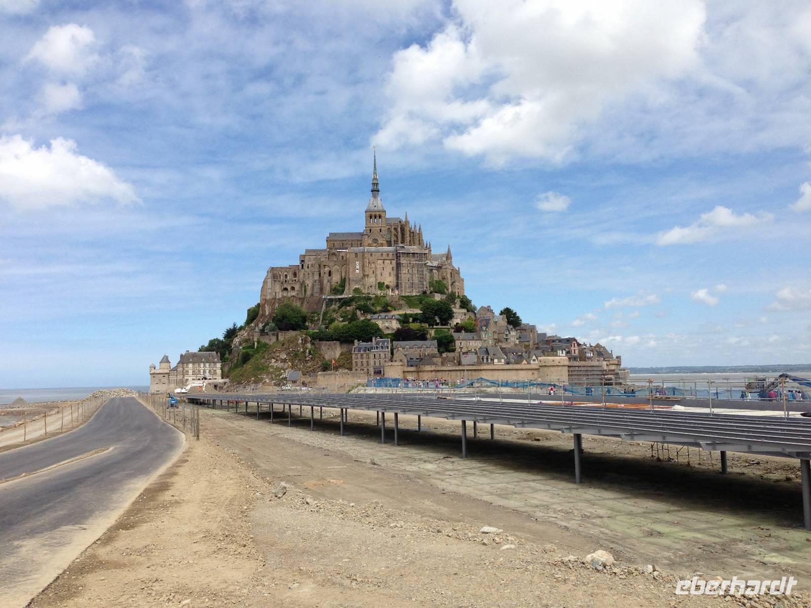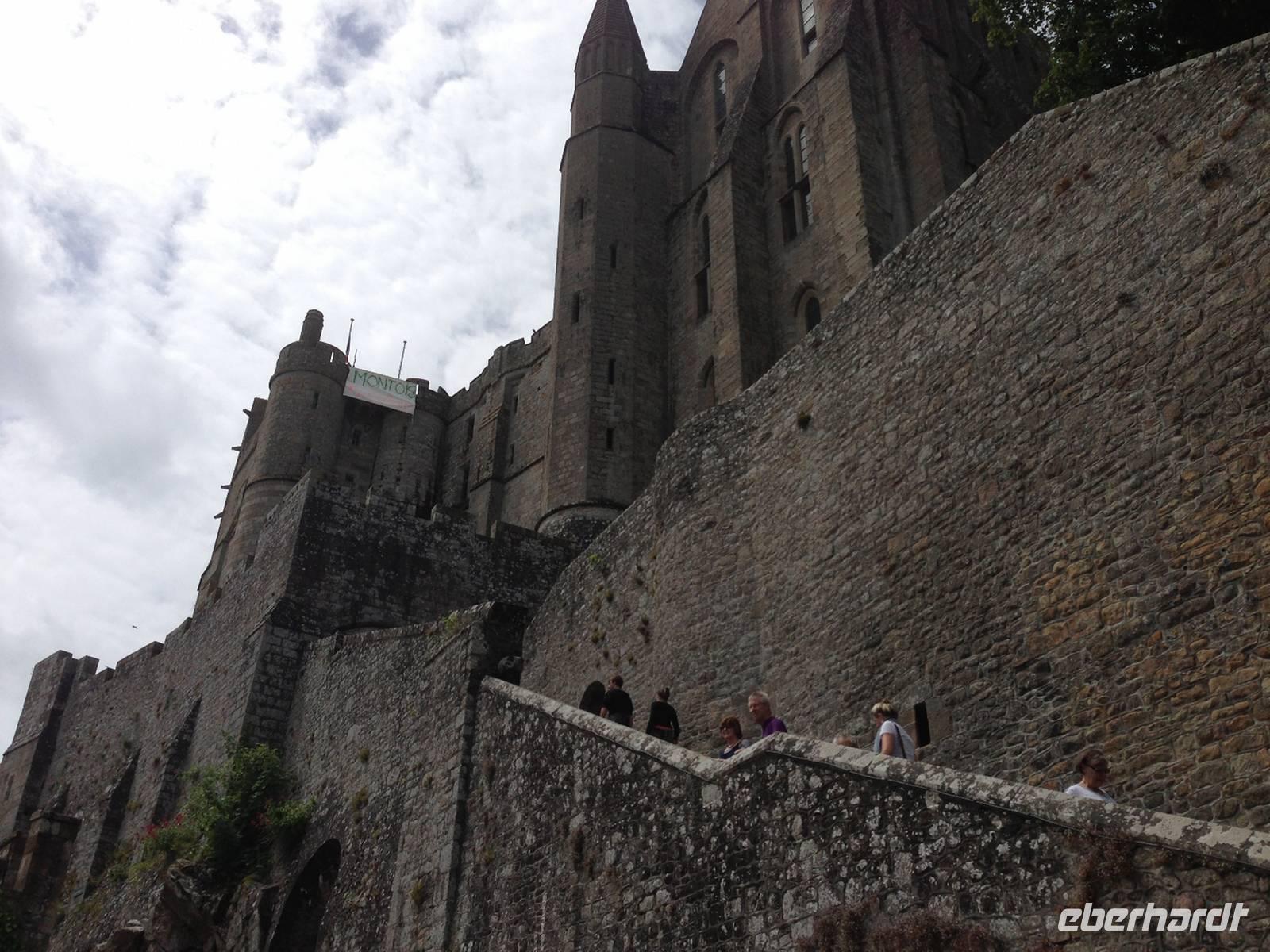 Heute steht mit dem Mont-Saint-Michel ein kultureller Höhepunkt der Reise auf dem Programm, welchem wir mit Bangen entgegensehen, denn die Belegschaft am Mont streikt und wir wissen nicht ganz genau, welche Auswirkungen das auf unseren Besuch haben wird. Vorsichtshalber hat sich die Reiseleitung darauf vorbereitet, die Führung durch das Kloster selbst zu übernehmen, was sich als die richtige Strategie herausstellt. Der gesamte Klosterberg ist geöffnet, nur werden keine Führungen angeboten. Wir kommen also doch in den Genuss dieses „Wunder des Abendlandes" ausgiebig besichtigen zu können.