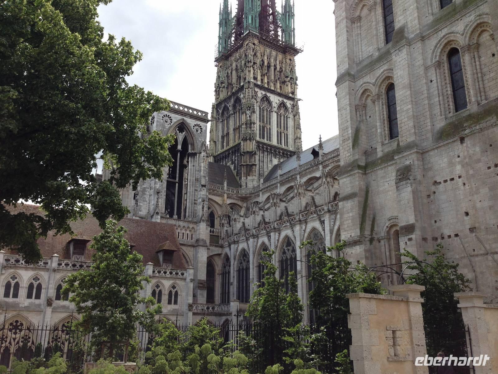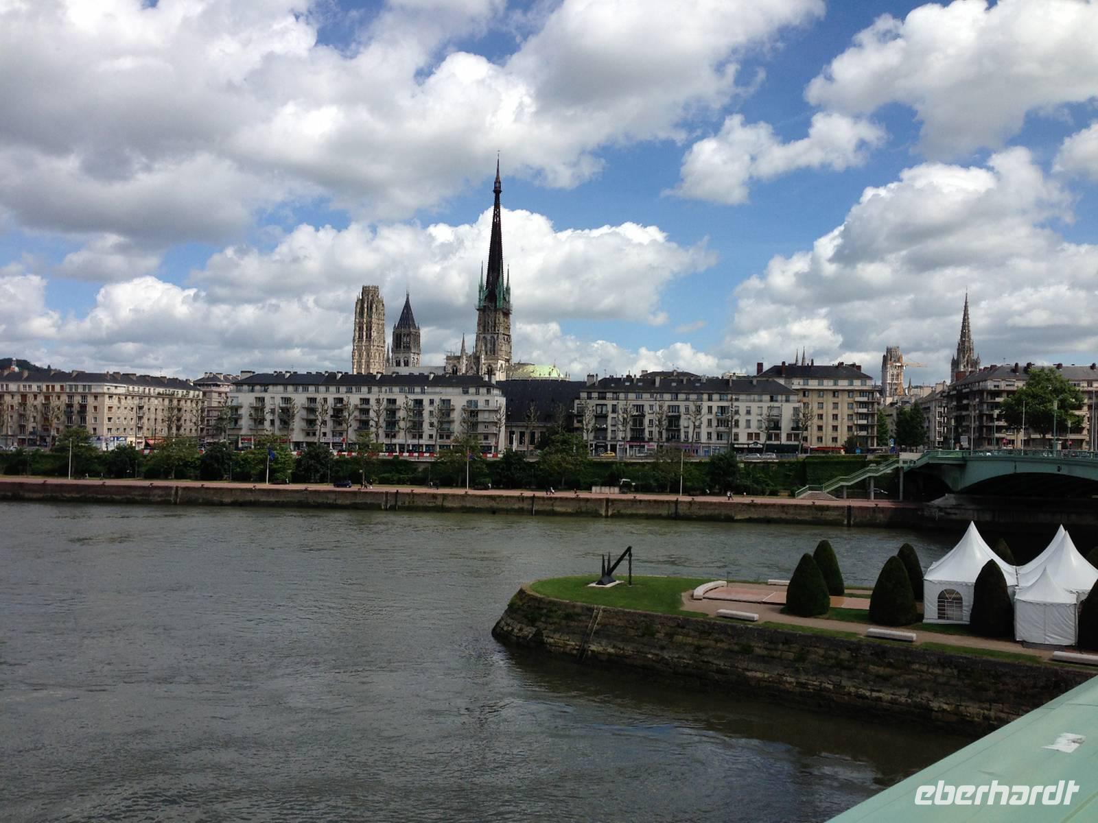 Heute geht es -es ist bereits ein Teil des Heimwegs- in die Normandie zu einer Stadtführung in Rouen. Hunderte von Segelschiffen erwarten uns dort, denn am Hafen wird ein großes Fest gefeiert: Die Armada. Alle vier Jahre gibt es hier eine Schau der größten Segelschiffe der Welt und das Treiben am Hafen ist tatsächlich sehr verlockend. Doch uns zieht es ins historische Zentrum, welches vor allem wegen der Verbrennung der Heiligen Johanna von Orléans in jedem Geschichtsbuch erwähnt ist. Die Retterin Frankreichs fand hier ein ungerechtes Ende! Wir bewundern die Westfassade der gotischen Kathedrale, die der impressionistische Maler Claude Monet in einem umfangreichen Bildzyklus in verschiedenen Lichtstimmungen gemalt hat.
