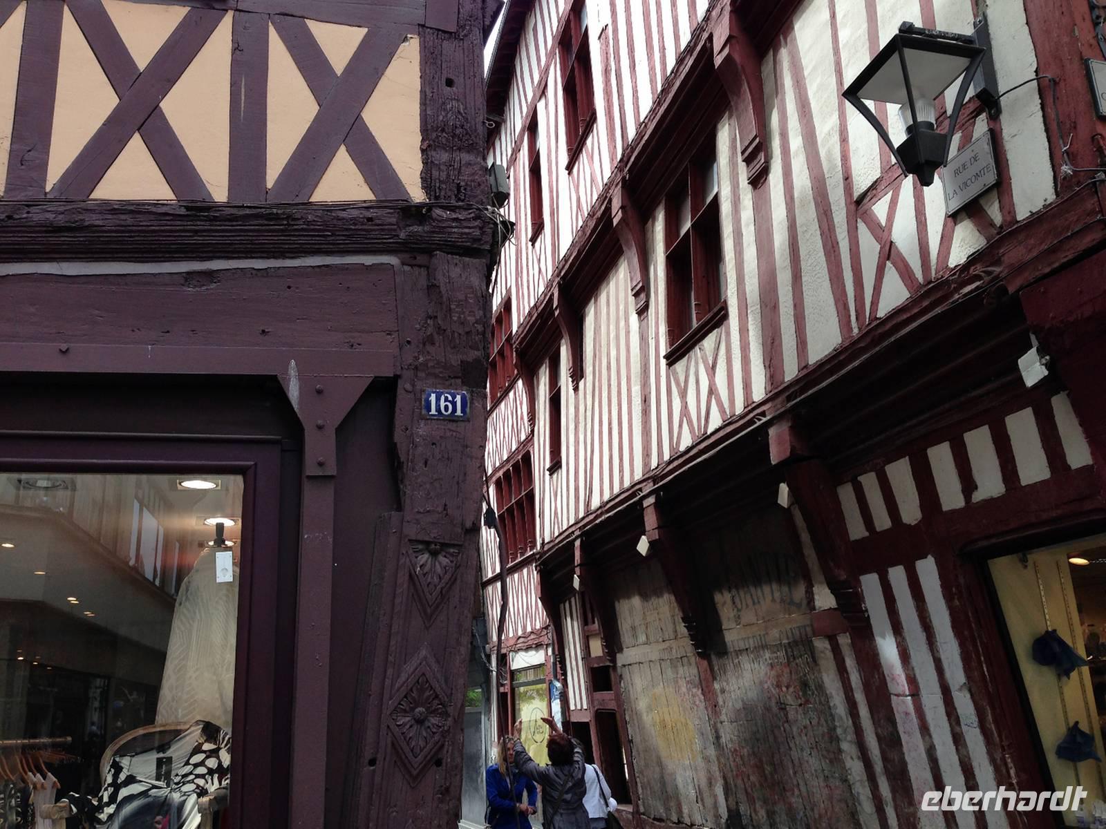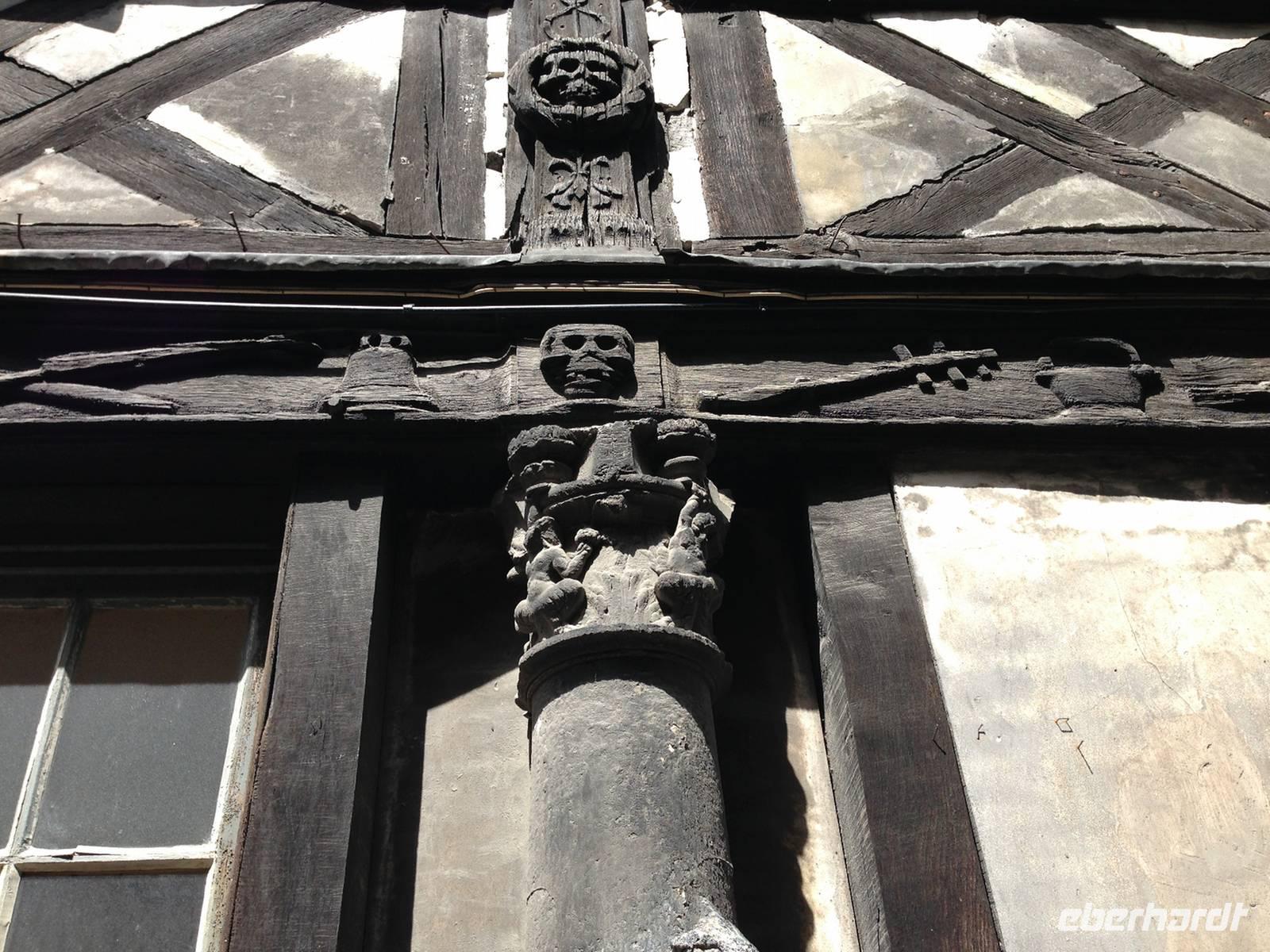 Nur ein kurzer Fußweg trennt uns von der Innenstadt, welche wir gleich nach dem Frühstück bei sonnigem Wetter besichtigen. Viele der Fachwerkhäuser sind schief und einige Straßen so eng, dass man sich aus den gegenüberliegenden Häusern die Hand reichen kann.