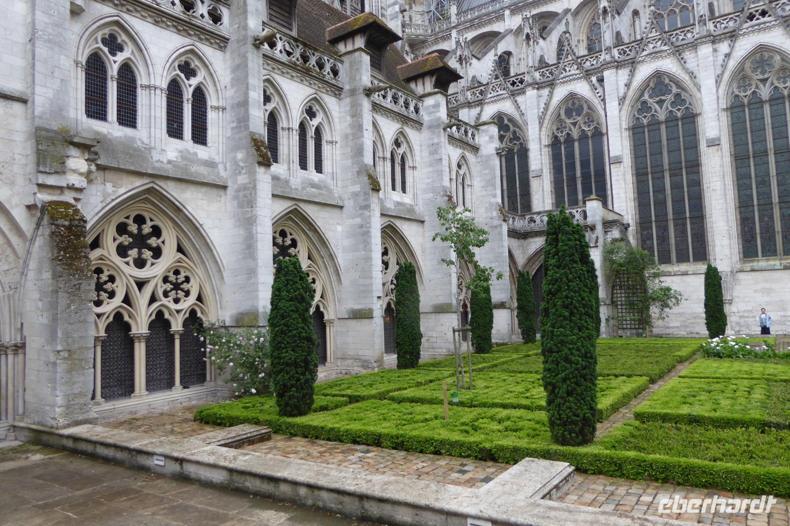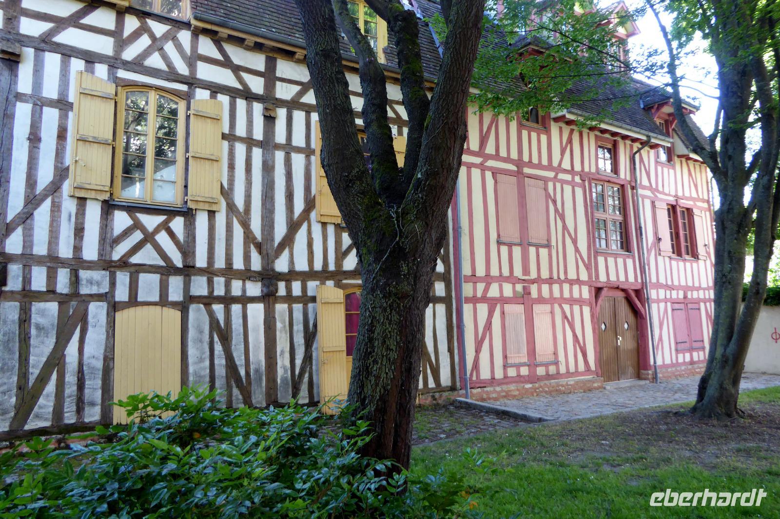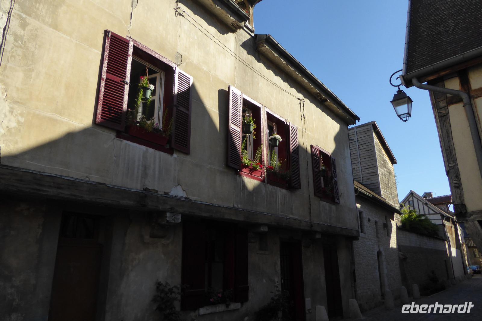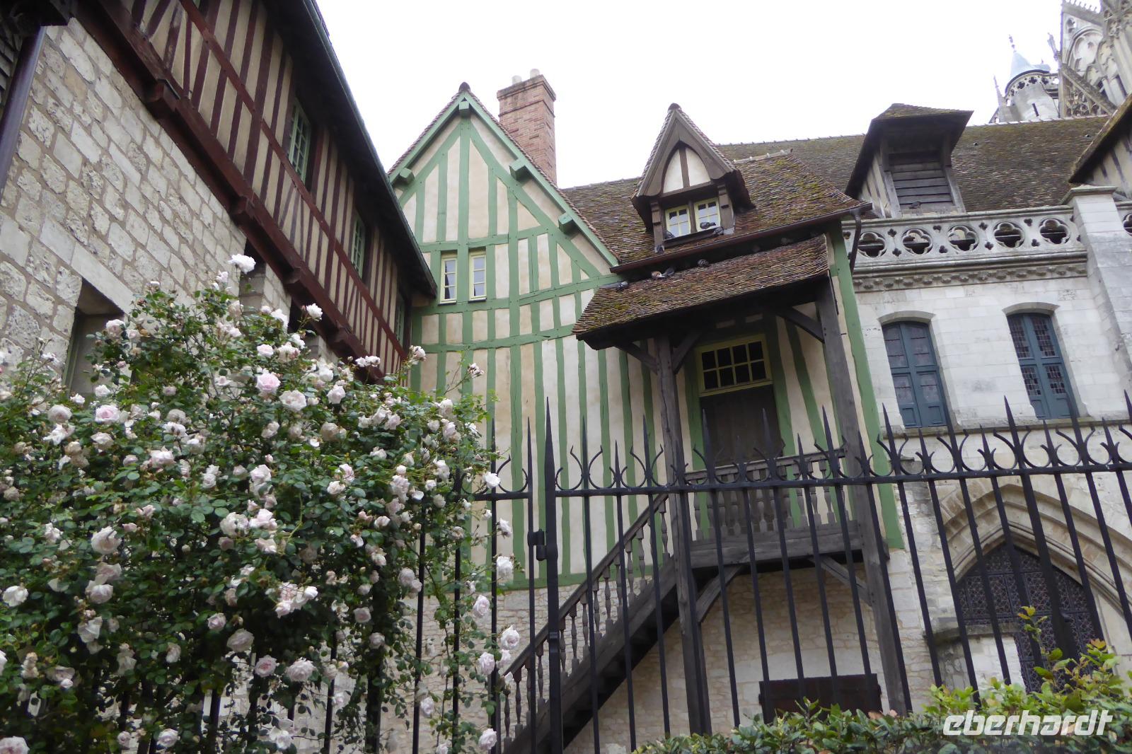 Am nächsten Morgen stand die Besichtigung von Troyes auf unserem Programm. Gisela, unsere versierte Fahrerin lenkte ihren Bus gekonnt durch die engen Straßen der Altstadt wo wir zu unserem Rundgang durch die von farbenfrohen Fachwerkhäusern gesäumten Gassen starteten. Troyes, in einer Schleife der Seine gelegen, ist eine vielschichtige Stadt, die ihr mittelalterliches Erbe bewahrt und sich den immer neuen Strömungen in der Architektur doch nicht verschließt. Schon die Kelten und Römer lebten hier in friedlicher Koexistenz, Atilla der Hunne sowie die deutschen Truppen in der Zeit der Besatzung konnten der von der Geschichte zeitweise schwer gebeutelten Stadt nichts anhaben. Hier wirkte der jüdische Gelehrte Raschi; Thibault, der Befreier Jerusalems, schrieb hier seine Liebeslieder für Blanka von Kastilien und mit den Werken Chrétien de Troyes wird der alte keltische Mythos um die Ritter der Tafelrunde und König Artus mit christlichen Tugenden, Minne und Ritterehre gemischt zum ersten großen Publikumserfolg. Tempelritter zogen von hier ins Heilige Land, Gelehrte, Geldwechsler, Handwerker aller Art brachten Reichtum in die Stadt und die Mühlen an der Seine klapperten unablässig... 1429 befreit Jeanne d´Arc die Stadt von den Engländern. Hundert Jahre später fällt die Stadt einem verheerenden Stadtbrand zu Opfer, von dem sie sich jedoch schnell wieder erholt und zu einem wichtigen Zentrum der Bildhauerei, Malerei und Glasfensterkunst aufsteigt, von dem wichtige Impulse für die europäische Kunst der Neuzeit ausgingen. Die seltsame asymmetrische Fassade der Kathedrale verblüfft durch ihre Schmucklosigkeit- die französische Revolution hinterließ hier sichtbare Spuren. Doch im Inneren des Gotteshauses lassen die prächtigen Glasmalereien der Fenster aus sechs Jahunderten Zeit und Raum vergessen! Auch in den Gassen scheint die Zeit stehen geblieben zu sein und hinter den Fenstern meint man die federgeschmückten Hüte der Musketiere zu erblicken. In den großzügigen Parkanlagen und Gärten ließen wir uns vom betörenden Duft alter Rosen locken und bewunderten einen Jardin éphémère im Hof des Hotel de Dieu, bevor wir wieder zu unserem Bus zurück gingen.