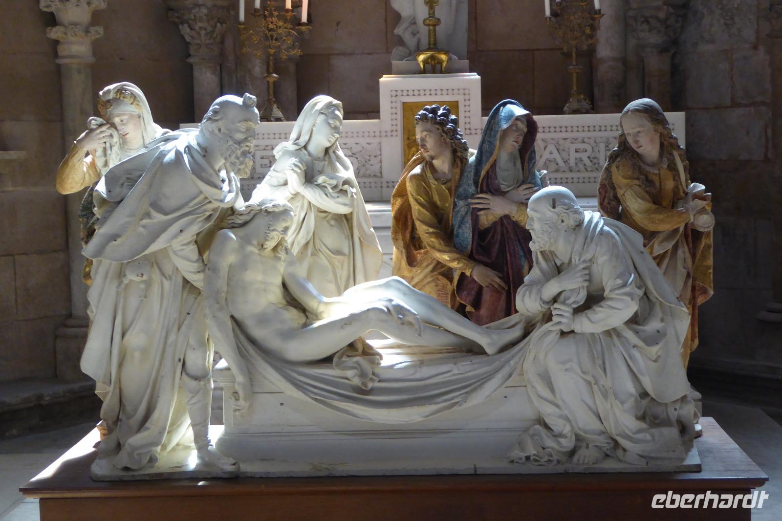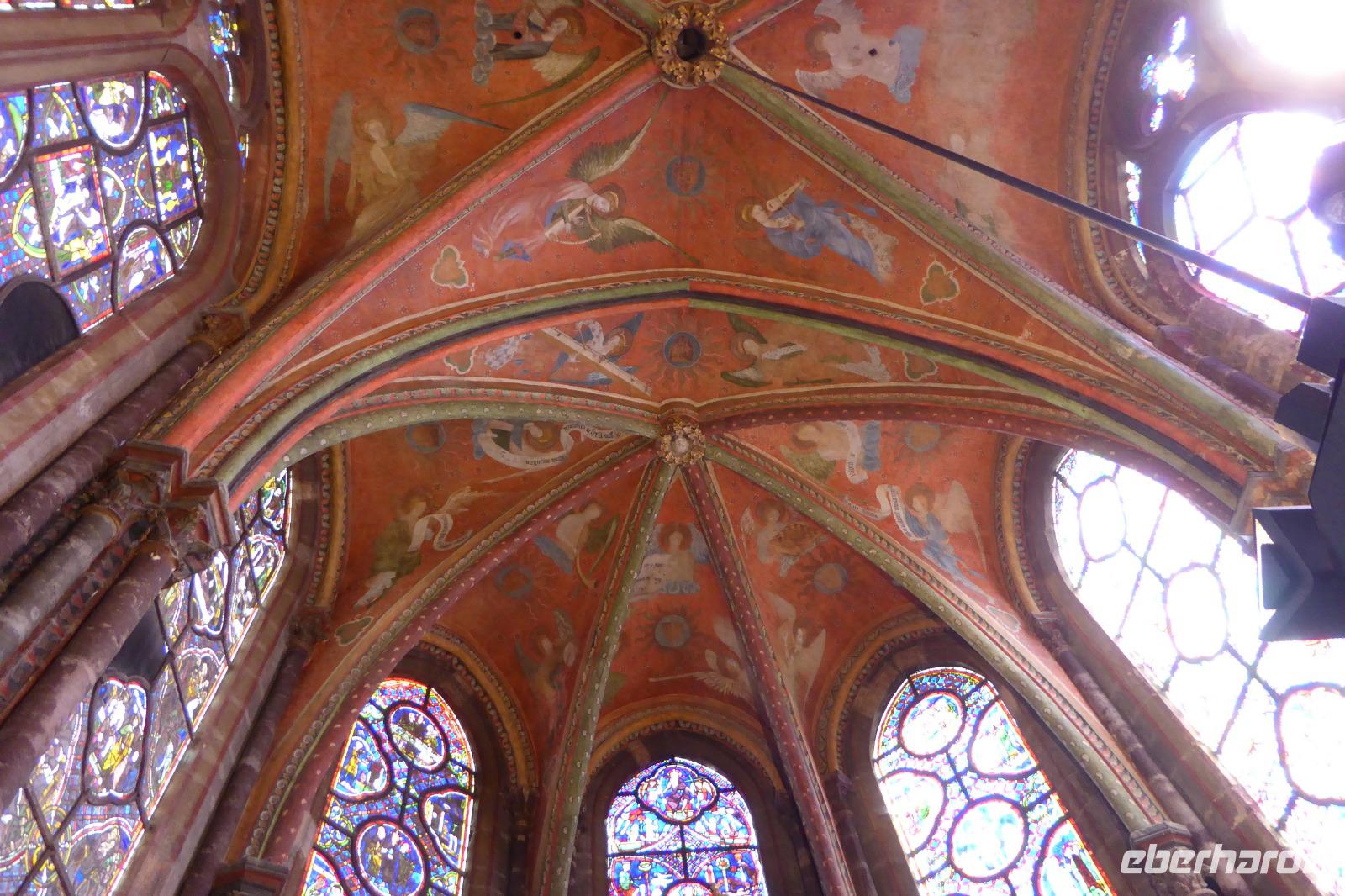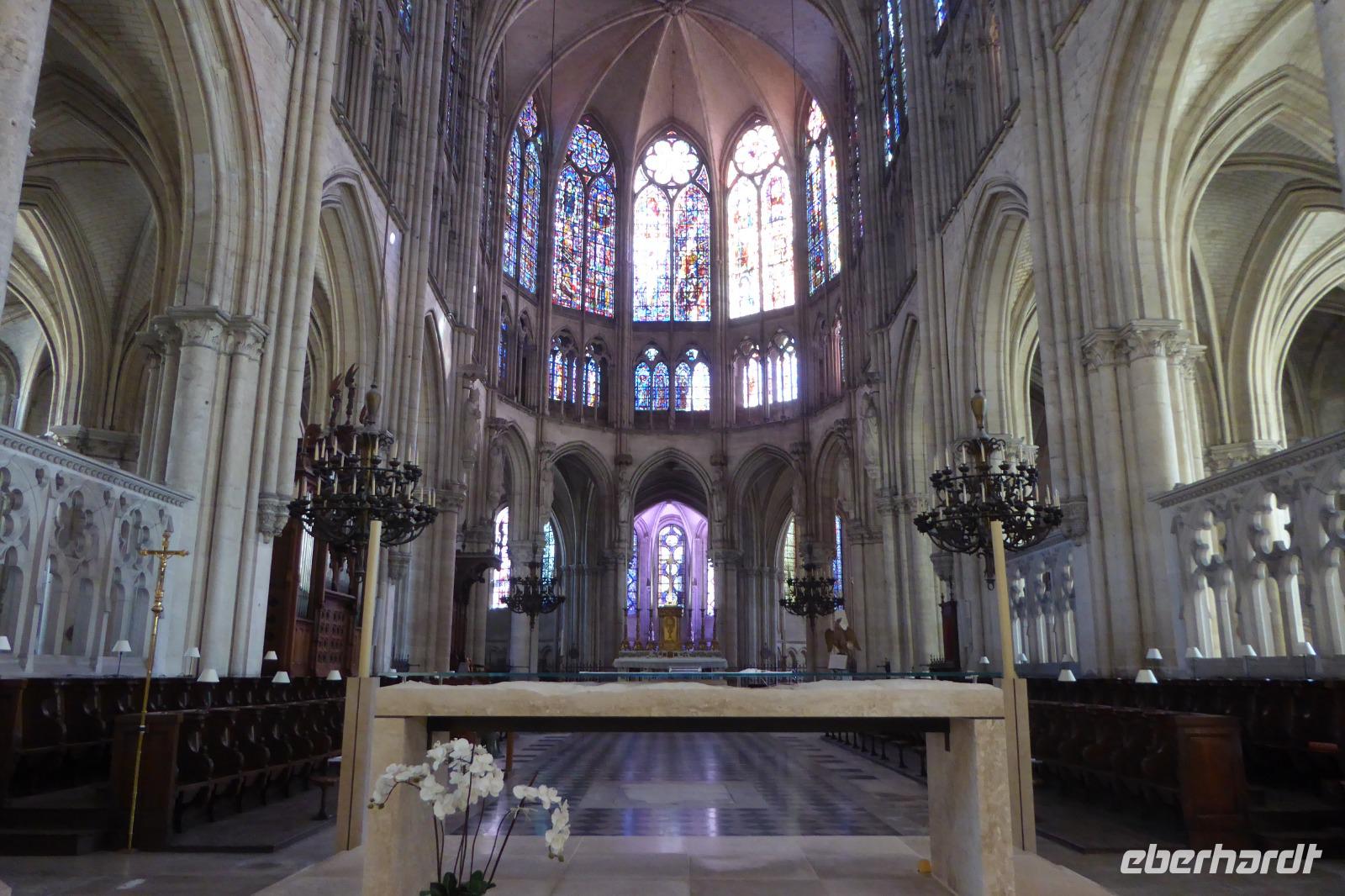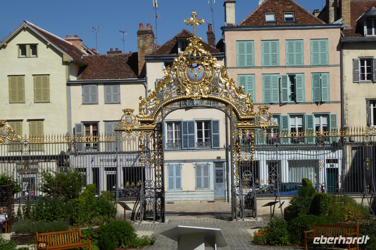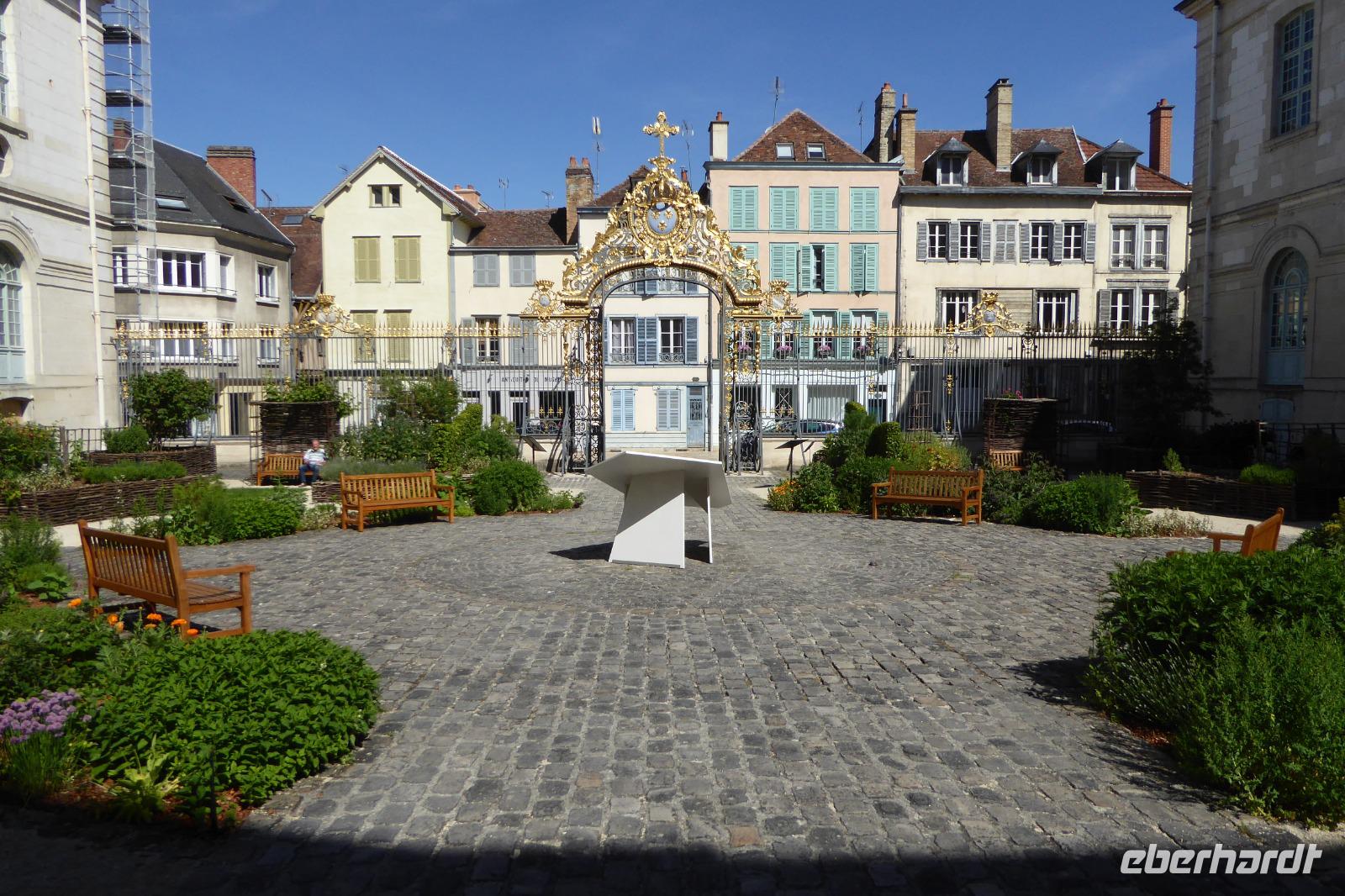 Am nächsten Morgen stand die Besichtigung von Troyes auf unserem Programm. Gisela, unsere versierte Fahrerin lenkte ihren Bus gekonnt durch die engen Straßen der Altstadt wo wir zu unserem Rundgang durch die von farbenfrohen Fachwerkhäusern gesäumten Gassen starteten. Troyes, in einer Schleife der Seine gelegen, ist eine vielschichtige Stadt, die ihr mittelalterliches Erbe bewahrt und sich den immer neuen Strömungen in der Architektur doch nicht verschließt. Schon die Kelten und Römer lebten hier in friedlicher Koexistenz, Atilla der Hunne sowie die deutschen Truppen in der Zeit der Besatzung konnten der von der Geschichte zeitweise schwer gebeutelten Stadt nichts anhaben. Hier wirkte der jüdische Gelehrte Raschi; Thibault, der Befreier Jerusalems, schrieb hier seine Liebeslieder für Blanka von Kastilien und mit den Werken Chrétien de Troyes wird der alte keltische Mythos um die Ritter der Tafelrunde und König Artus mit christlichen Tugenden, Minne und Ritterehre gemischt zum ersten großen Publikumserfolg. Tempelritter zogen von hier ins Heilige Land, Gelehrte, Geldwechsler, Handwerker aller Art brachten Reichtum in die Stadt und die Mühlen an der Seine klapperten unablässig... 1429 befreit Jeanne d´Arc die Stadt von den Engländern. Hundert Jahre später fällt die Stadt einem verheerenden Stadtbrand zu Opfer, von dem sie sich jedoch schnell wieder erholt und zu einem wichtigen Zentrum der Bildhauerei, Malerei und Glasfensterkunst aufsteigt, von dem wichtige Impulse für die europäische Kunst der Neuzeit ausgingen. Die seltsame asymmetrische Fassade der Kathedrale verblüfft durch ihre Schmucklosigkeit- die französische Revolution hinterließ hier sichtbare Spuren. Doch im Inneren des Gotteshauses lassen die prächtigen Glasmalereien der Fenster aus sechs Jahunderten Zeit und Raum vergessen! Auch in den Gassen scheint die Zeit stehen geblieben zu sein und hinter den Fenstern meint man die federgeschmückten Hüte der Musketiere zu erblicken. In den großzügigen Parkanlagen und Gärten ließen wir uns vom betörenden Duft alter Rosen locken und bewunderten einen Jardin éphémère im Hof des Hotel de Dieu, bevor wir wieder zu unserem Bus zurück gingen.