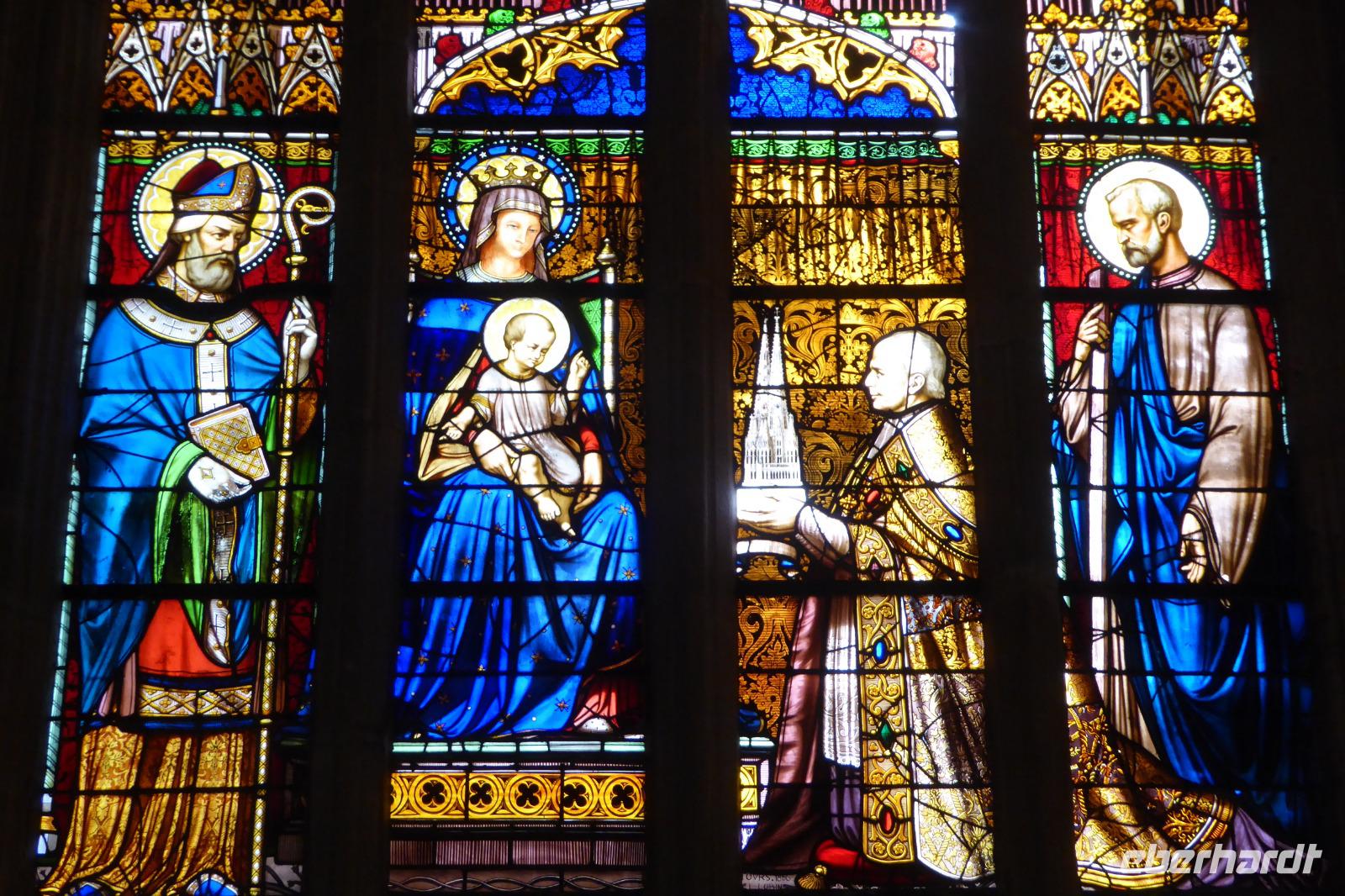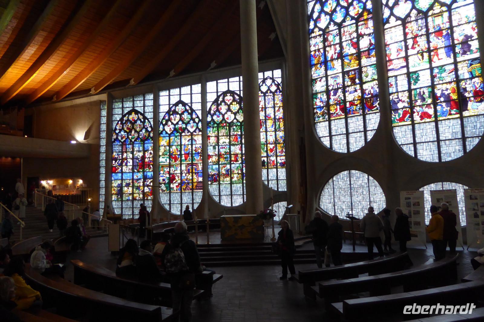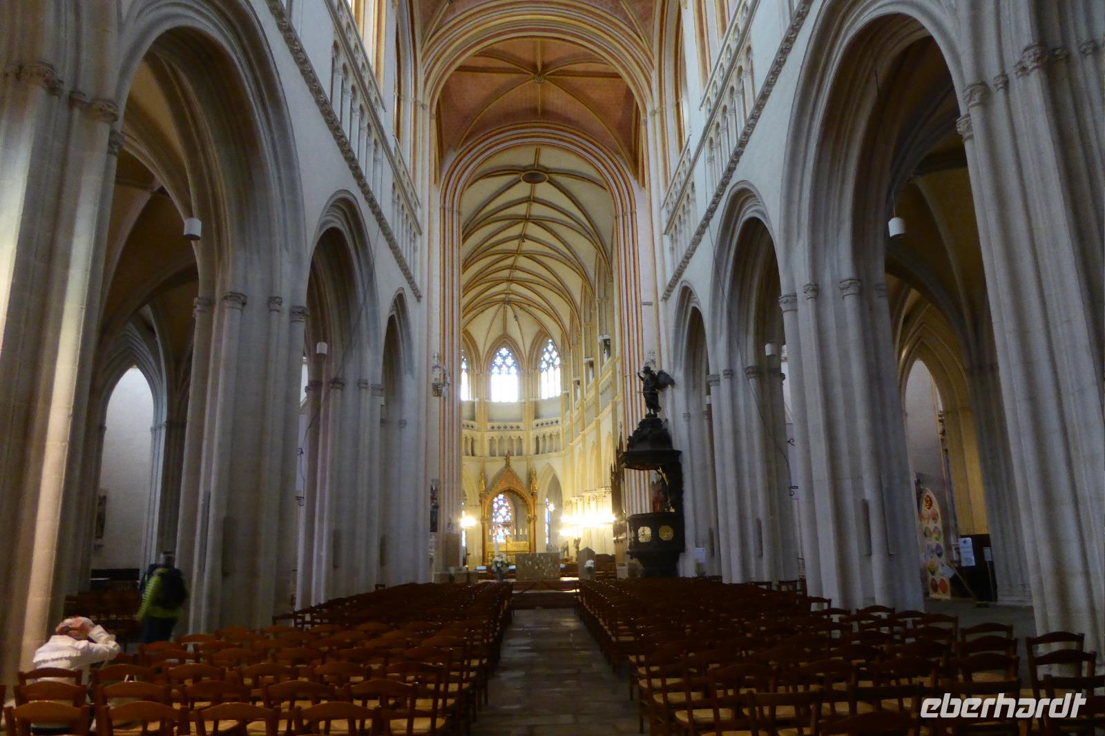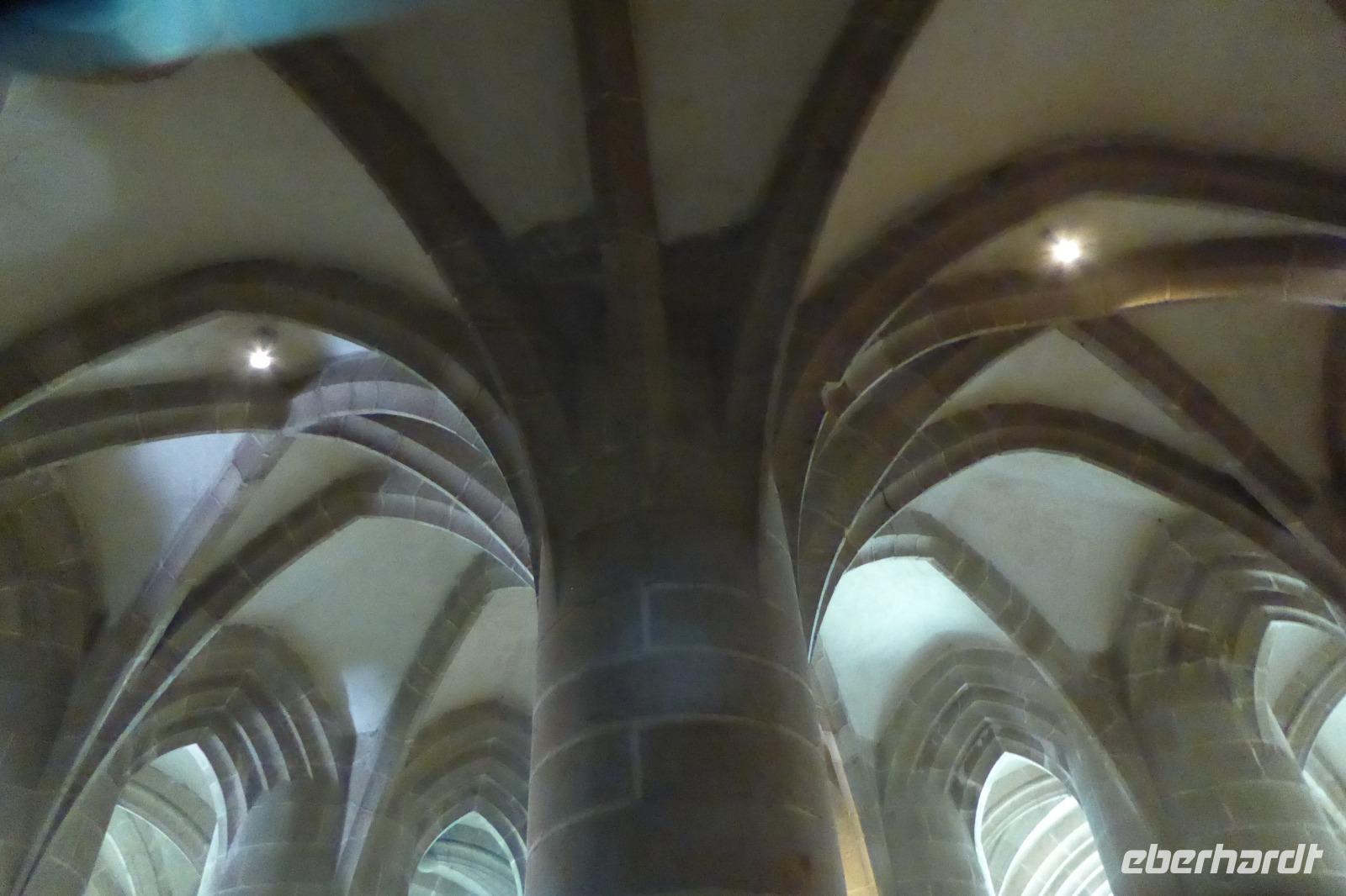 Am Nächsten Morgen hieß es 'Koffer packen' und Abschied nehmen von der Bretagne, dem Meer und der Küste. Die erste Etappe unserer Rückreise führte uns über die Straße der Gotik nach Rouen. Die ganze Stadt stand im Zeichen der `Armada´, einer Großveranstaltung, bei der sich die größten Segelschiffe der Welt auf der Seine ein Stelldichein geben. Im Vorbeifahren staunten wir über die gewaltigen Viermaster, die vor der Hubbrücke lagen. In der Stadt war alles geöffnet und so konnten wir die Kathedrale mit ihren enormen Ausmaßen auch im Inneren bewunderten. Vor der Fassade der Kathedrale kapituliert jede Linse und wir begnügten uns, sie von genau der Stelle, wo die Staffelei Claude Monets stand, zu betrachten. Die heutige Kathedrale Notre-Dame mit ihren beiden Türmen der Westfassade steht auf den Grundmauern eines romanischen Vorgängerbaus. Der Butterturm mit seinen 75 Metern Höhe ist eines der schönsten Beispiele für die Kunstfertigkeit der Bauleute der Hochgotik. Bis 1880 war der Turm über der Vierung mit 151 Metern Höhe das höchste Bauwerk der Welt! Durch die engen Gassen, dicht mit Fachwerkhäusern bestanden, kamen wir zum Justizpalast. An diesem größten, nicht sakralen Gebäude des ausgehenden Mittelalters, waren noch deutlich die Spuren der Häuserkämpfe am Ende des Zweiten Weltkriegs zu erkennen. Wir bestaunten noch den Uhrturm und gingen dann zum Alten Markt, der Stätte an der die junge Jeanne d´Arc 1431 den Flammentod erleiden musste. Die zu Ihren Ehren errichtete Kirche verblüfft im Inneren durch ihre großzügige Architektur, die einen ganz eigenen Raum schafft. Die bunten Glasfenster aus dem 16. Jahrhundert stammen aus dem 1944 zerstörten Vorgängerbau.