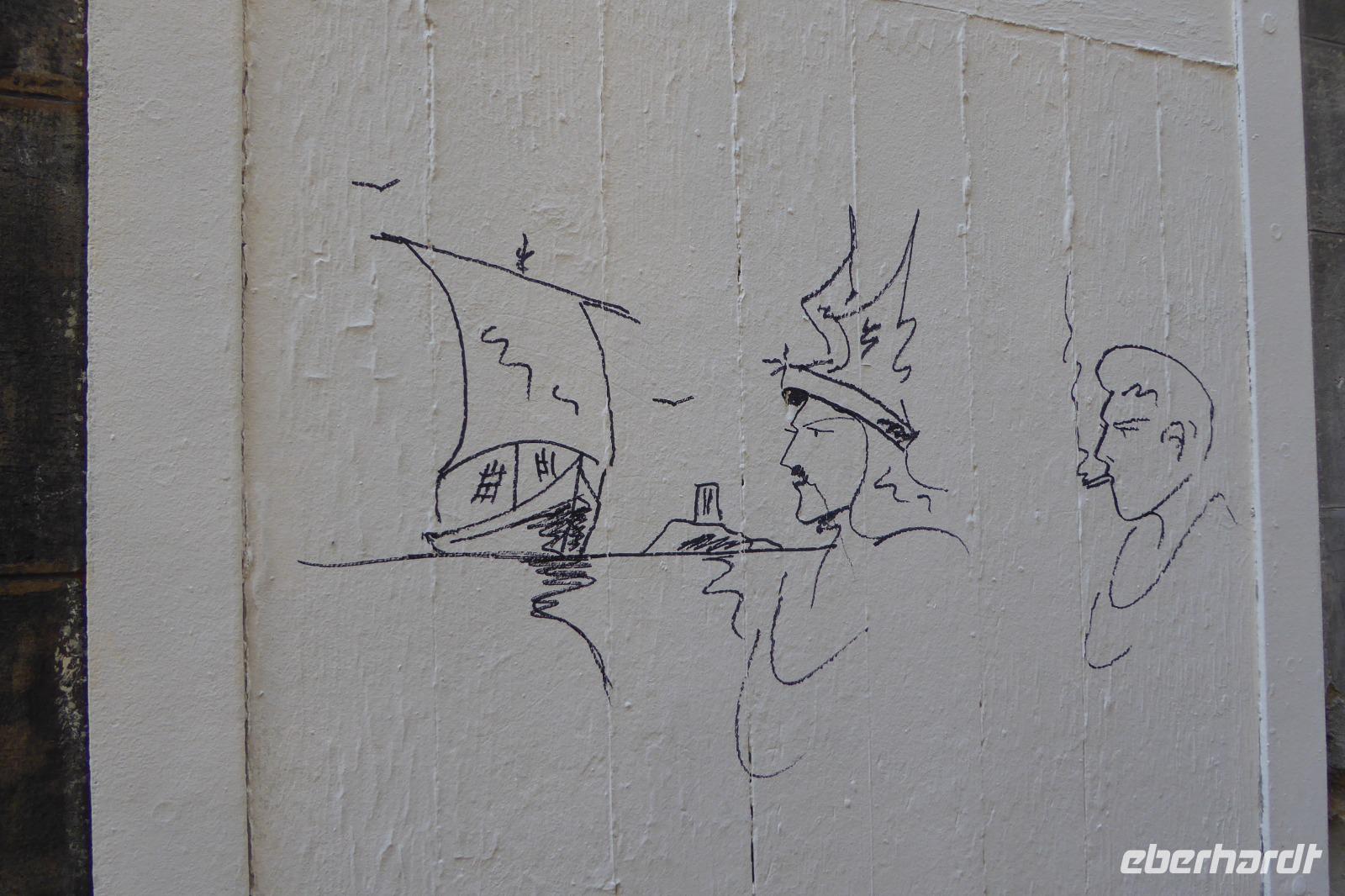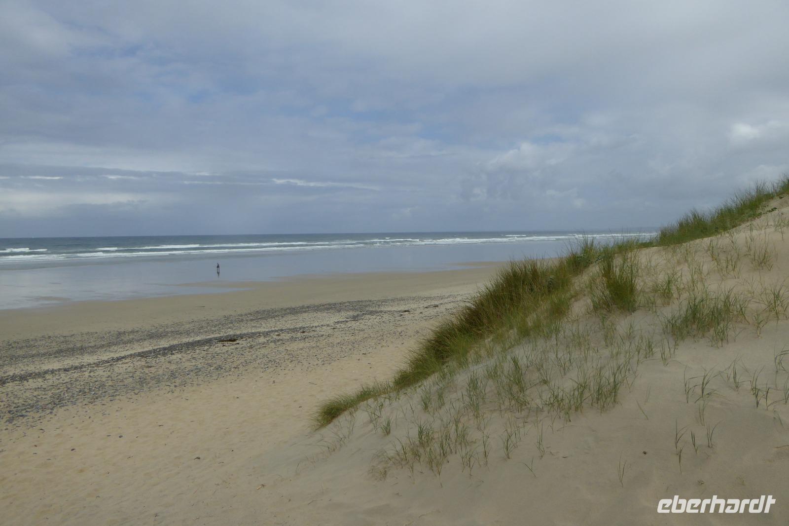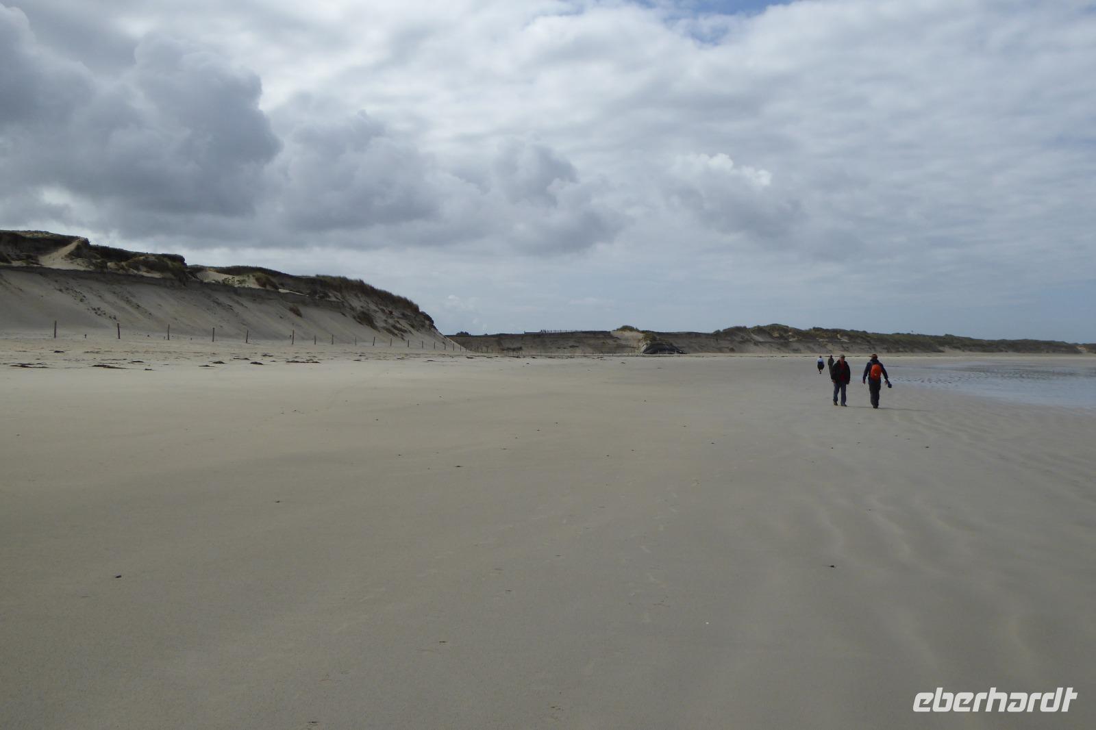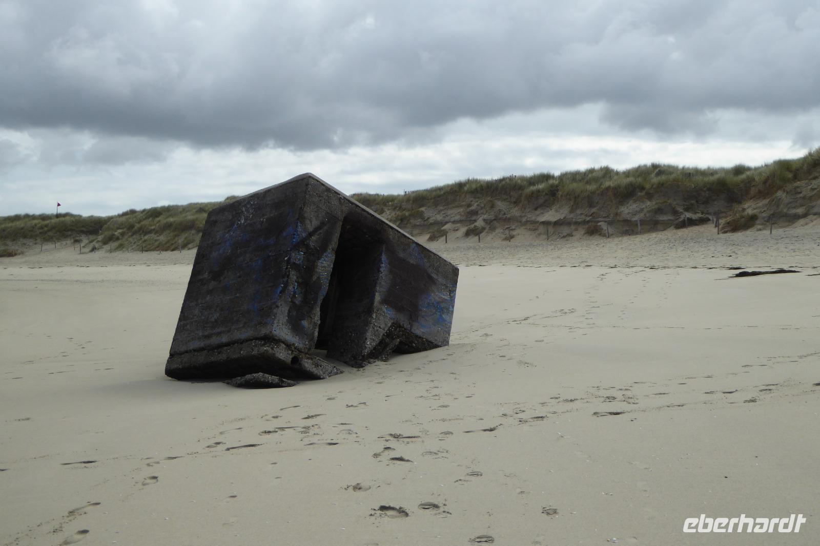 Neben der kleinen Kirche von Tronoën, die gerne die Kathedrale der Dünen genannt wird, steht der älteste Kalvarienberg der Bretagne. Mit über 100 ursprünglich wohl bunt bemalten Figuren, wird hier das Leben Christi dargestellt. Sieben solche in Stein gemeißelte Evangelien kann man in der Bretagne entdecken. Unsere Wanderung zur Küste führte uns über die Dünen zu Meer. Die Ebbe ausnutzend spazierten wir barfuß über den Strand und genoßen die kostenlose Thalasso-Therapie für Körper und Seele! In Penmarch trafen wir wieder auf steinerne Zeugnisse der Vergangenheit: wie von Teufels Hand geworfene Würfel liegen die Bunker des Atlantikwalles am Strand und auf der Pointe de la Torche findet sich der in Beton gegossene Größenwahn der deutschen Heeresführung neben einem Megalithgrab der Jungsteinzeit. Kleine Kinder nutzen die Anlagen für ihr fröhliches Versteckspiel.