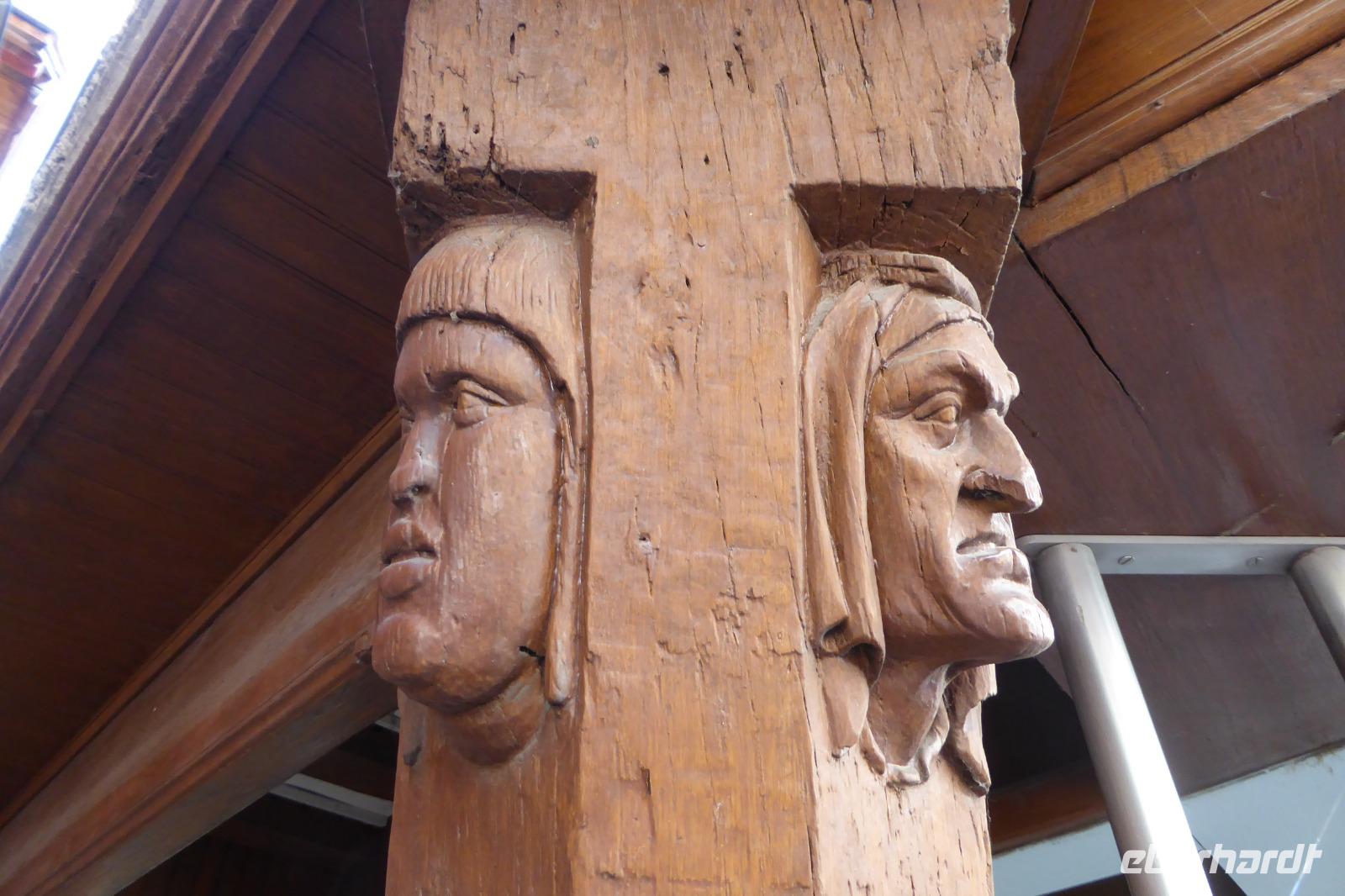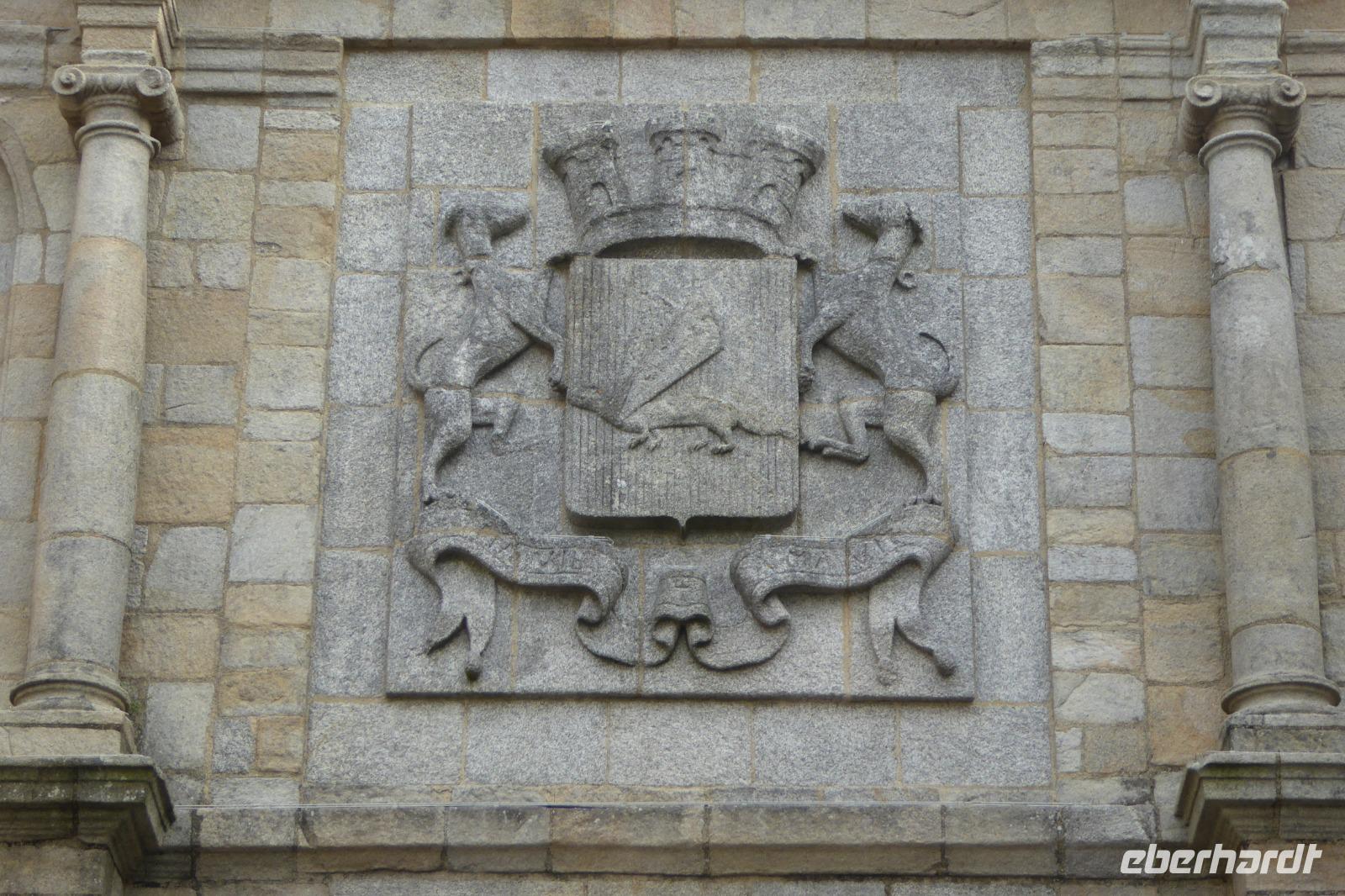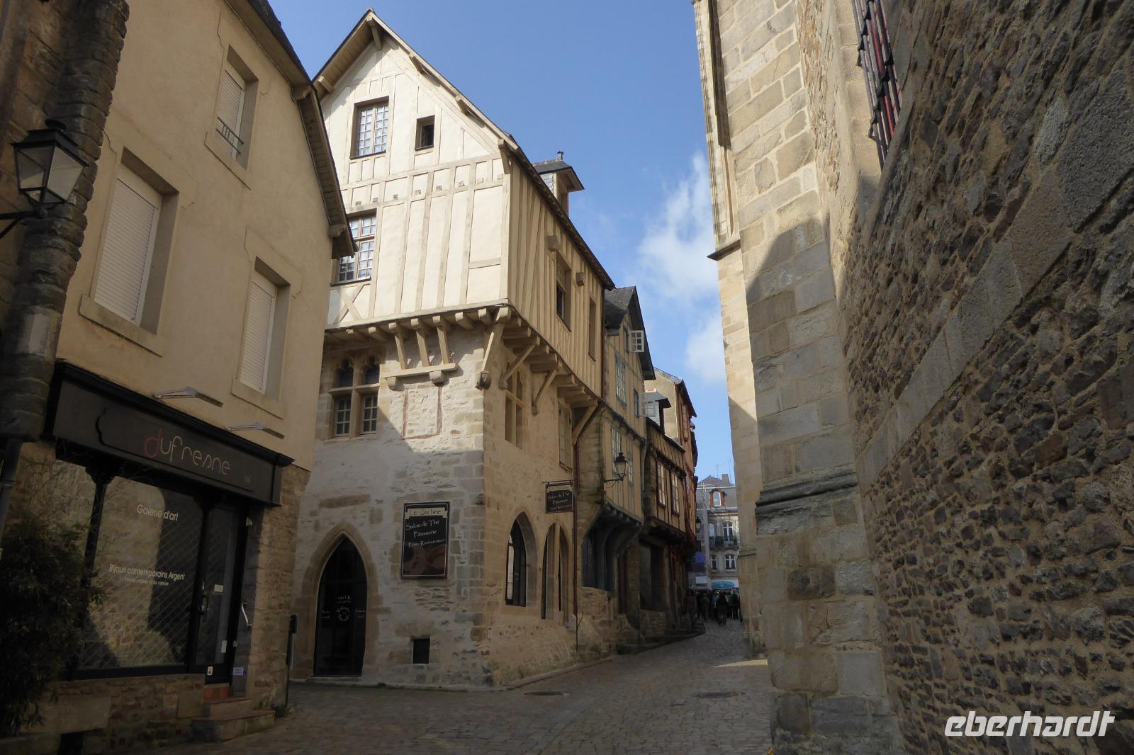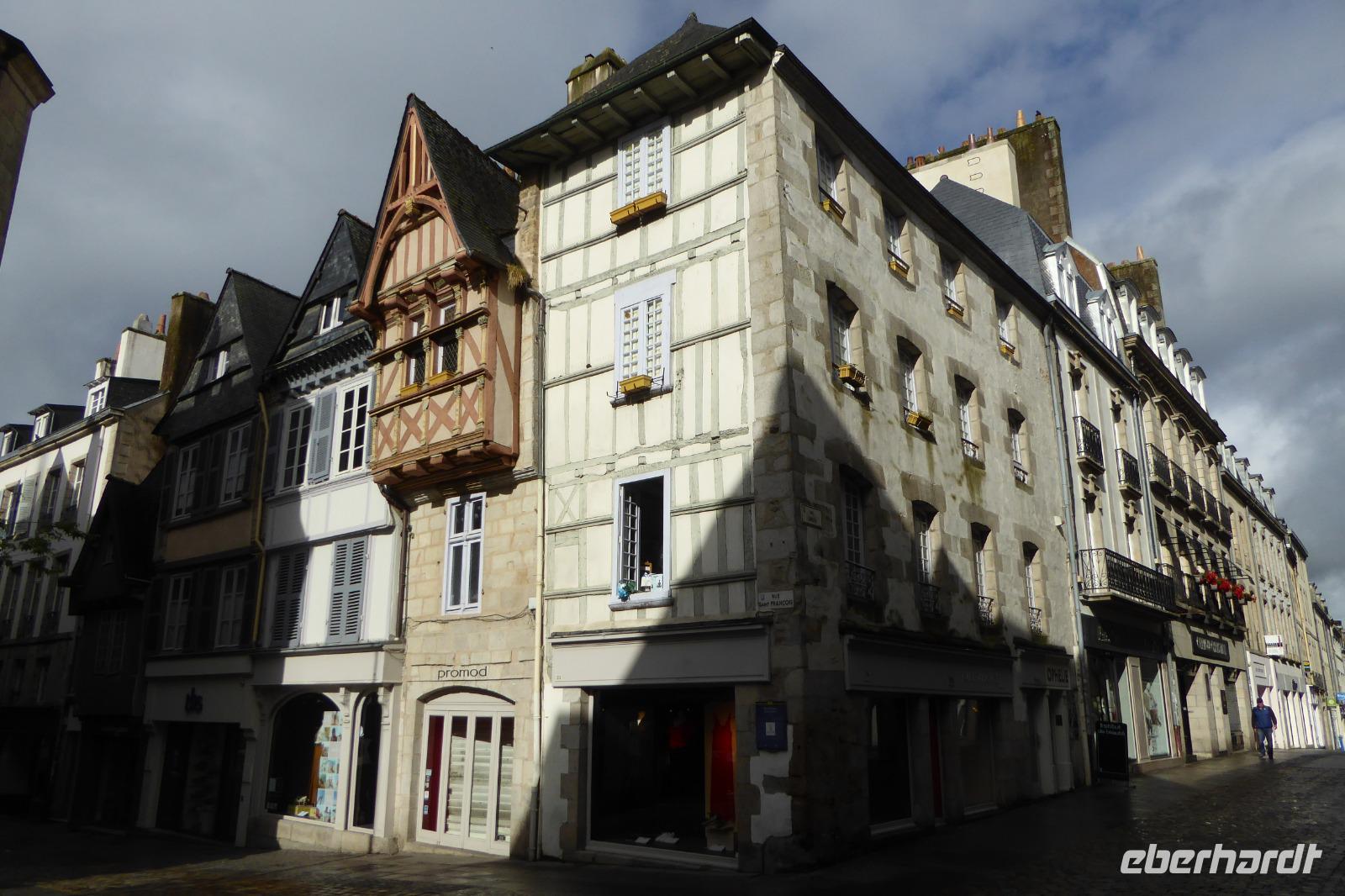 Am Vormittag holte uns unsere Stadtführerin Kristin am Hotel ab und wir ließen uns direkt an das Stadttor von Vannes bringen. Am Wochenende war Segler Messe, der Hafen war noch gesäumt von weißen Zelten und unterstrichen so den bretonischen Namen Vannes: Gwened, die Weiße. Sie liegt am Ende des Golfe du Morbihan geschützt von massiven Stadtmauern. Durch das Saint-Vincent-Stadttor kamen wir in die Altstadt. Jenseits des Tors drängen sich dicht an dicht Gebäude aus dem 17. Jahrhundert. Rund um den Place des Lices, an dem die mittelalterlichen Turniere ausgetragen wurden, stehen Stadtvillen neben alten Fachwerkhäusern. Die Fassaden leuchten in fröhlichen bunten Farben. Hinter der Kathedrale bietet die Rue Saint-Gwénaël eine große Auswahl an Baudetails, bis hinab zur Porte Prison, an der das malerische Viertel Saint-Patern beginnt. Von der Porte Prison gingen wir entlang der Garenne-Promenade, die an den im 13. Jahrhundert errichteten Stadtmauern entlangführt. Türme und Tore folgen in bemerkenswerter Harmonie aufeinander, zu ihren Füßen bewunderten wir die schönen französischen Gärten und daneben das beeindruckende Château de l´Hermine mit einem überdimensionalen Hermelin Wappen aus roten und weißen Blumen. Die öffentlichen Waschplätze neigen ihre langen Schieferdächer malerisch über die Marle. Viel zu schnell ging die Zeit vorüber, doch es reichte noch für einen Blick in die Kathedrale, die mit 110 Metern Länge eine der größten in der Bretagne ist und um bei der Skulptur "Vannes et sa femme" zu rätseln, wer denn nun der Mann und wer die Frau sei!