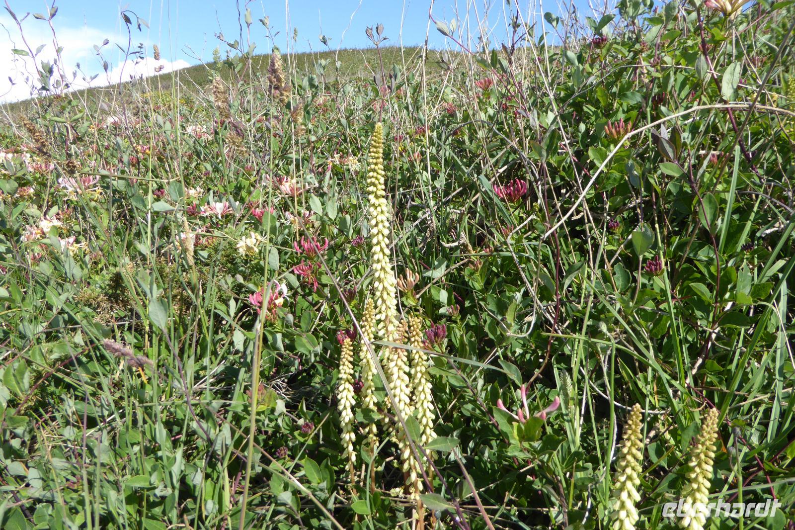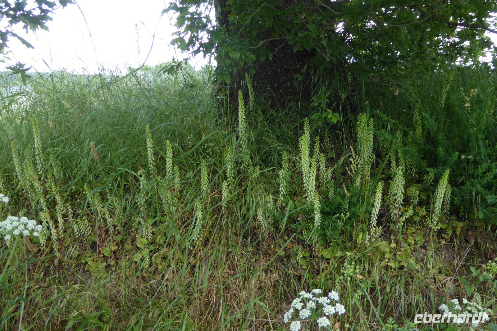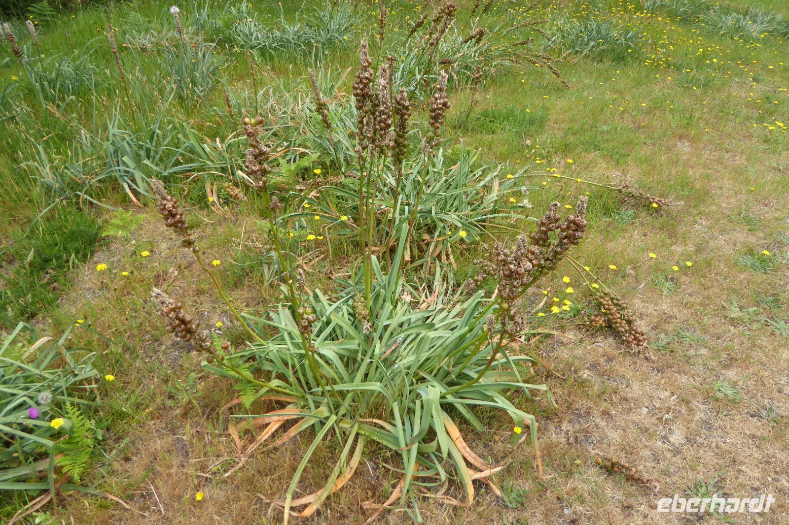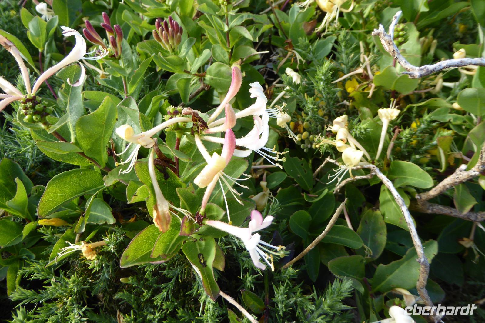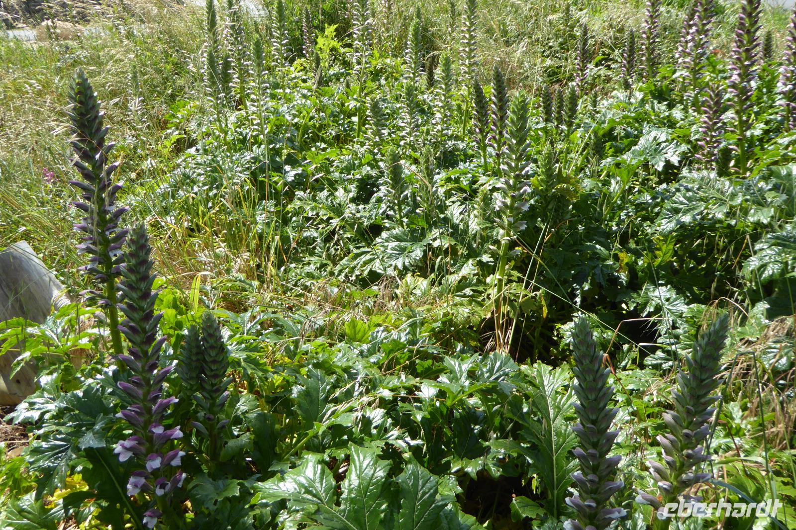 Umgeben von Tamarisken liegt das kleine Kirchlein Notre Dame de Bon Voyage inmitten eines Waldes hoher Farne wie eine Glucke auf den Klippen. Gleich dahinter treffen wir wieder auf den Wanderweg GR 34, der auf 1700 Kilometer um jede Klippe, jede Bucht der Bretagne vom Mont Saint-Michel bis nach Saint-Nazaire führt. Der Gesang der Feldlerchen begleitete unseren Weg zur Steilküste und längs des Weges blühten Erika, Geißblatt, Stachelginster, Fingerhut, Berg-Sandglöckchen, Knabenkraut und Umbilicus, der sonst eher unscheinbare Venusnabel. Wir genoßen bei unserer gut 16 Kilometer langen Wanderung die herrlichen Ausblicke auf das tiefblaue Meer und die schneeweiß schäumende Gischt. Möwen und Kormorane zeigten ihre Flugkünste. Die üppige stets wechselnde Flora, die Felsformationen und plötzlich aus den Farnen springende Quellen boten dem Auge wie der Linse immer neue unerwartete Attraktionen. An der Pointe du Raz (der Name kommt von rasen, nicht von rasten!) dem westlichsten Punkt unserer Reise und dem nicht ganz westlichsten Punkt Europas legten wir dort eine Mittagsrast ein, wo 72 Meter unter uns der Atlantik an die Felsen brandet. Über die hier beginnende Fernwanderroute E5 erreicht man in etwas mehr als 3000 Kilometer das Mittelmeer bei Venedig- wir schlugen die andere Richtung ein und marschierten bis in die tropenhaft anmutende Sandbucht Baie des Trépassés. Dort hatten wir dann noch die Begegnung mit der Fauna der Region: eine seltene Aspisviper schlummerte im Gebüsch.
