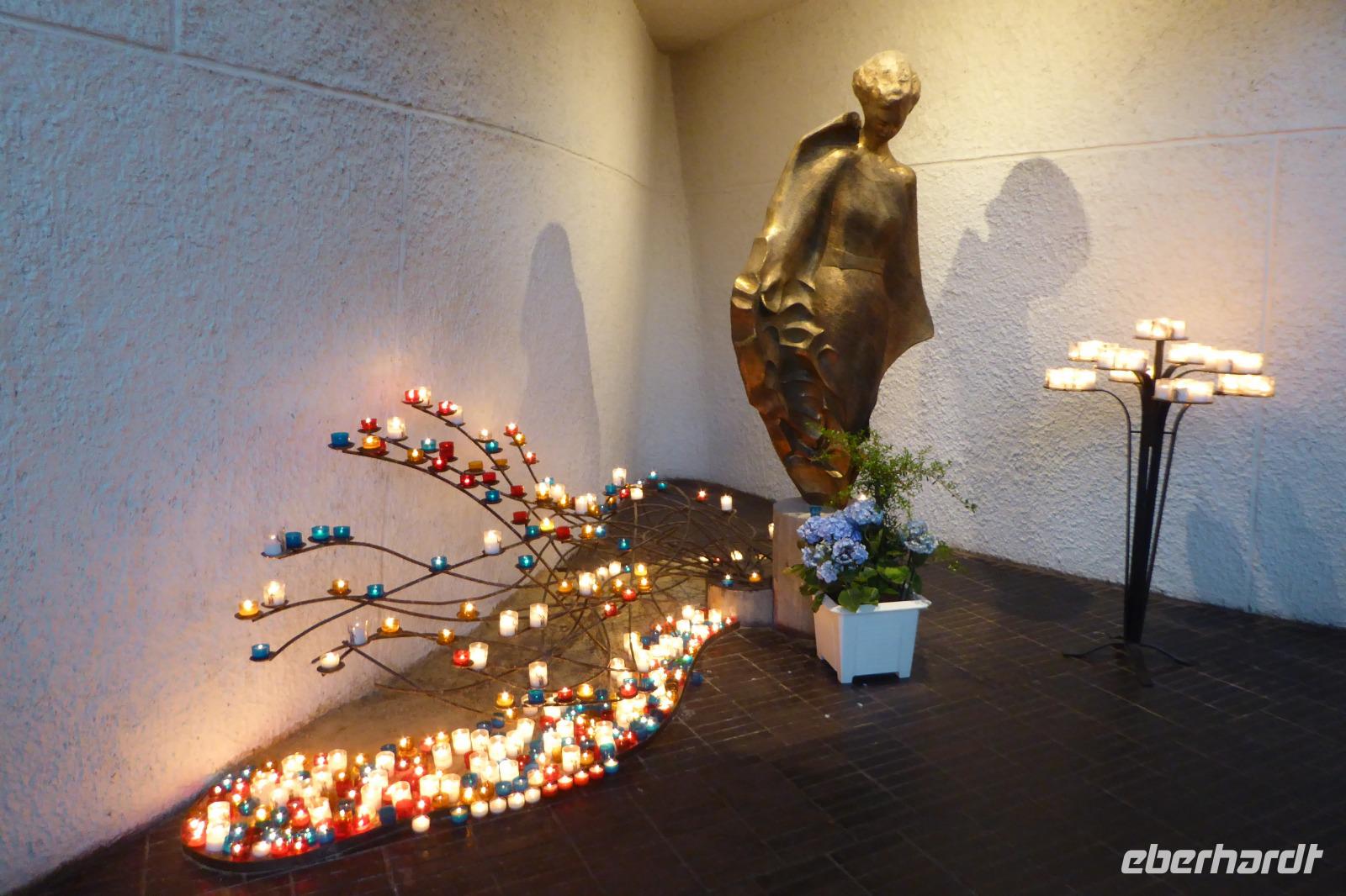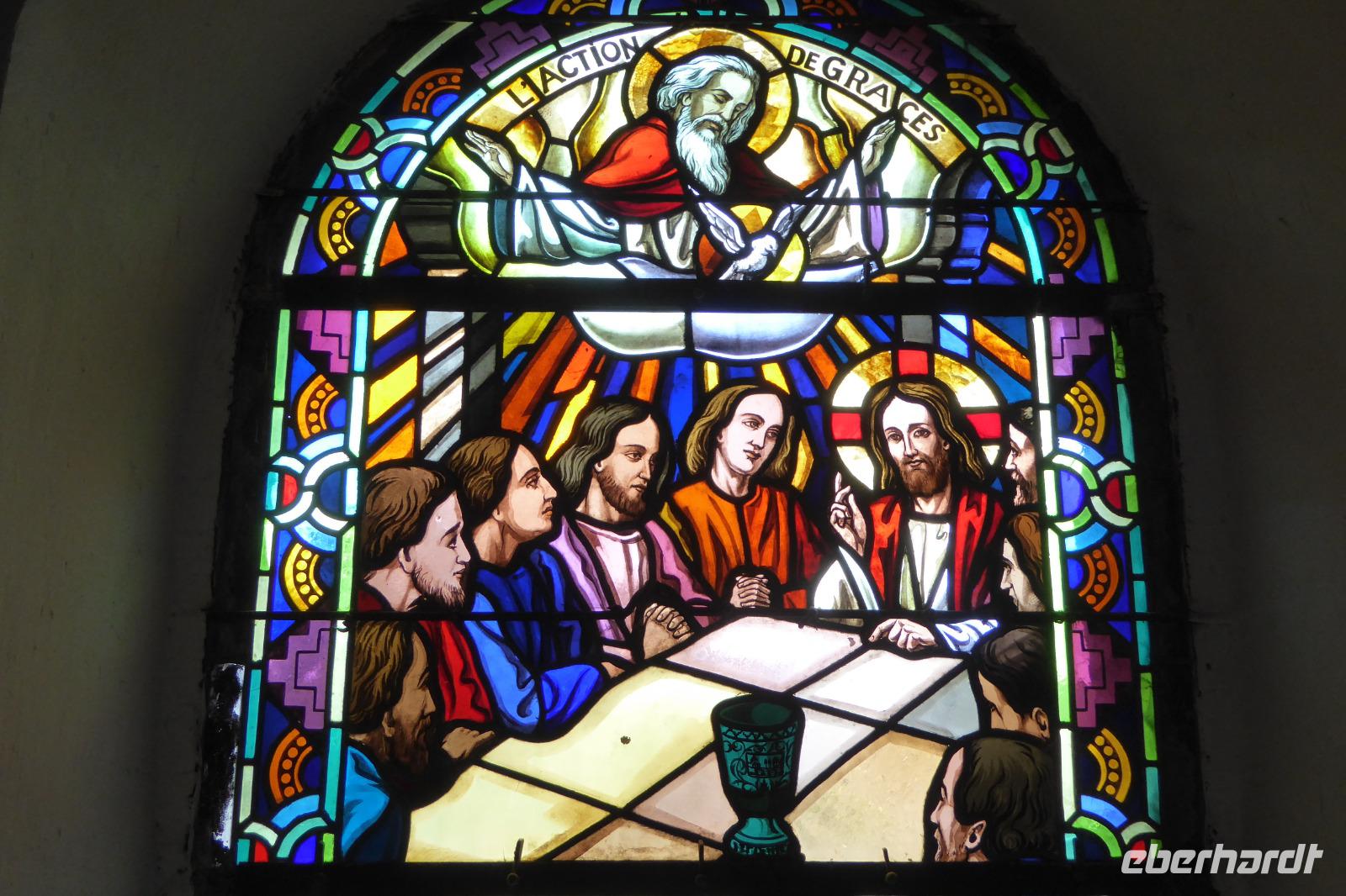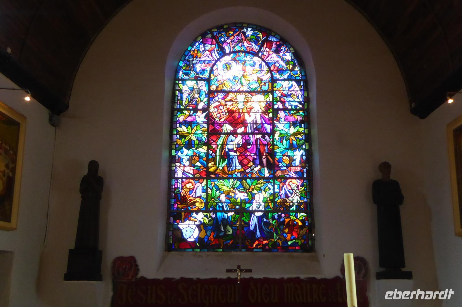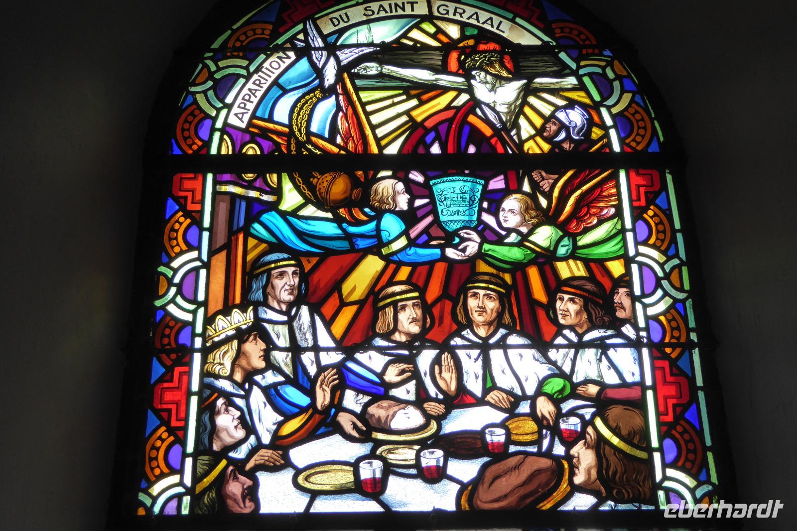 Nach einer gemütlichen Mittagsrast in Tréhorenteuc bestaunten wir die Glasfenster in der kleinen Kirche und waren von der seltsamen Mischung christlicher und mystischer Motive überrascht. Das Tal ohne Wiederkehr entließ uns reichlich zwei Stunden später wieder; nach einem Aufstieg auf das Hochplateau führte unsere Wanderung zum Arbre d´Or, dem goldenen Baum, einem Kunstobjekt des französischen Bildhauers Francois Davin aus dem Jahre 1991. Am Wasserschloß von Trécesson endete unser erster gemeinsamer Wandertag.