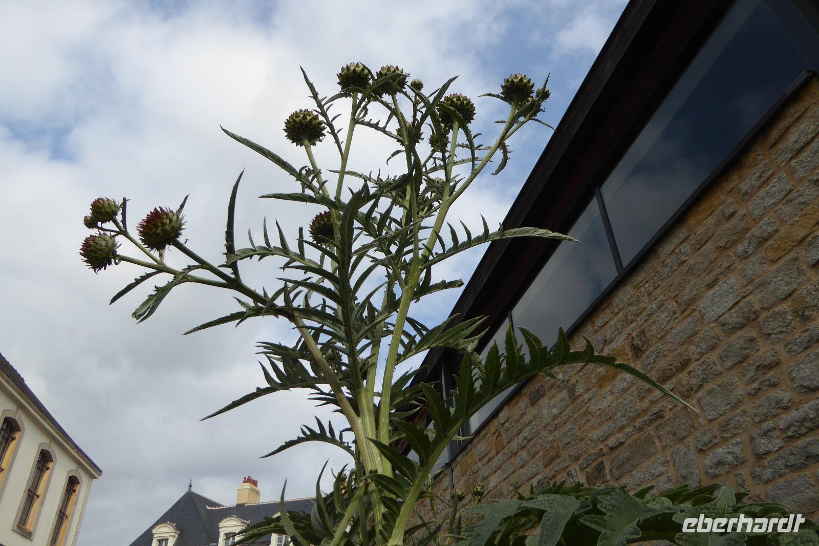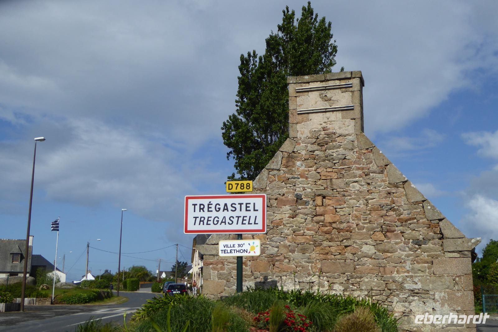 Leider regnete es in Strömen als wir Lannion erreichten. Gleich hinter der Stadt liegt das kleine gallische Dorf, das jedem Asterix Leser wohl bekannt sein dürfte. Ob dort wohl Troubadix mit seinen Liedern die Götter erzürnte? Selbst die riesige weiße Kugel der Satellitenanlage erschien nur wie ein Schemen durch den feinen Regen.