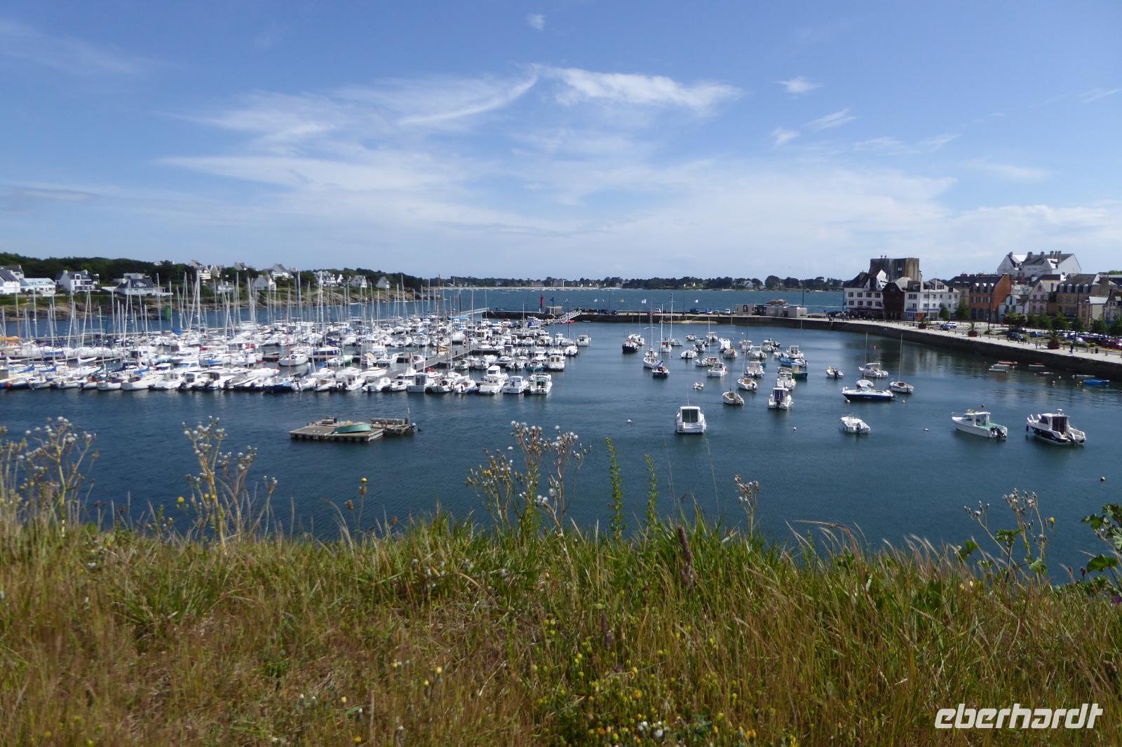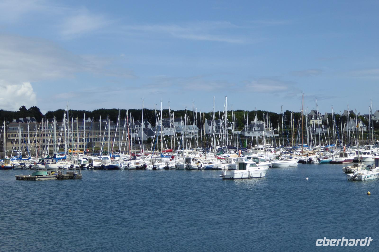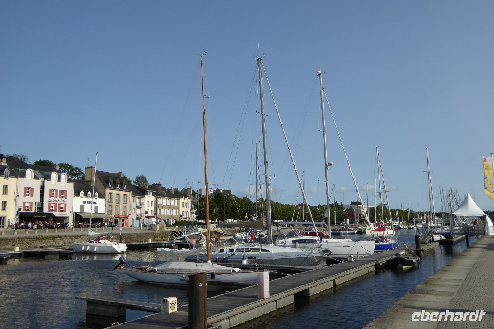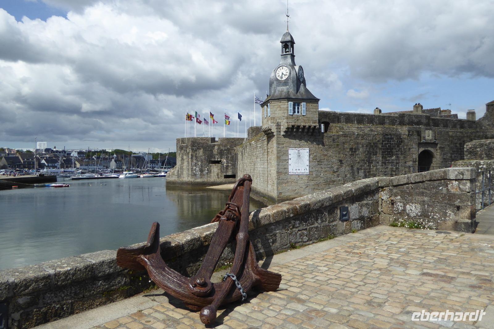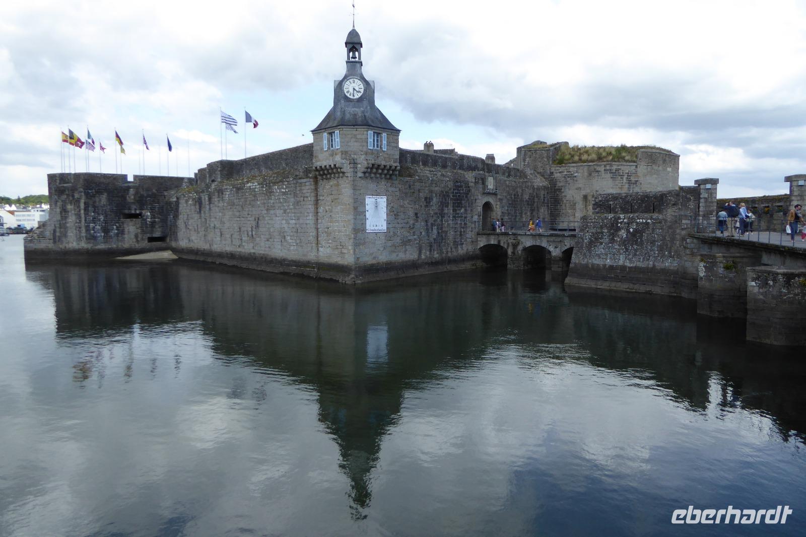 Die Ville Close von Concarneau, auf einer kleinen vorgelagerten Insel mit gerade mal 3,5 Hektar, ist von dicken Festungsmauern umgeben. Die ältesten stammen bereits aus dem 14. Jahrhundert und wurden von Vauban, dem Architekten des Sonnenkönigs Ludwig XIV, erneuert, dessen Handschrift bis heute zu erkennen ist. In der Rue Vauban wurde übrigens 1982 unter der Regie von Claude Chabrol der Film "Die Fantome des Hutmachers" mit Michel Serrault und Charles Aznavour gedreht. Der Schriftsteller Henri Belbeoch erklärt den Reiz der Stadt so: "Concarneau ist eine Hafenstadt. Von Grund auf kosmopolitisch, heißt sie Fremde willkommen und steht deren Sprache offen." Die vielen bunten Flaggen, die über den Mauern wehen, unterstreichen diese Weltoffenheit. Im Hafenbecken schaukeln Segelboote und trotz der vielen Touristen hinterlässt die Stadt einen gemütlichen Eindruck.