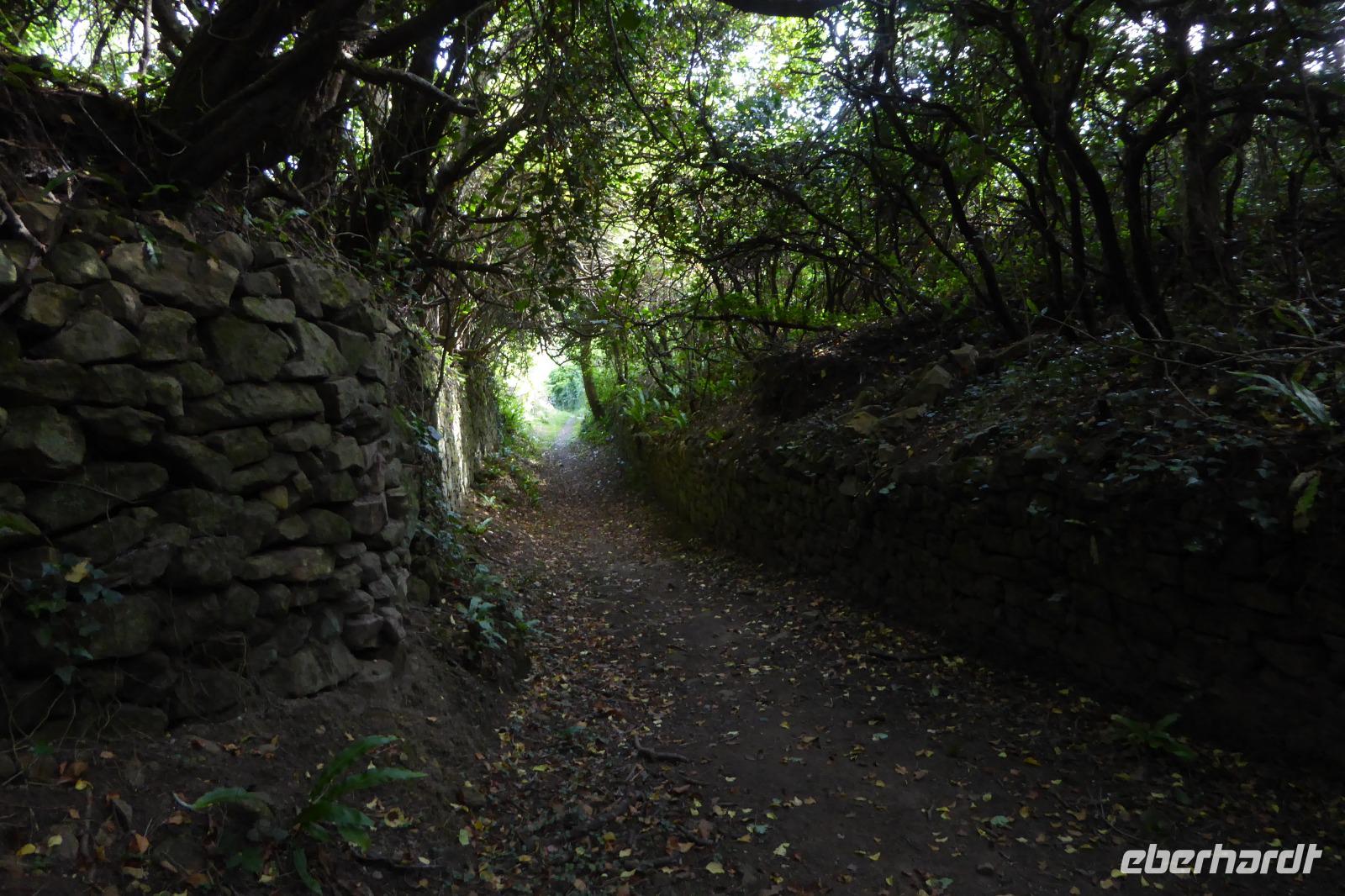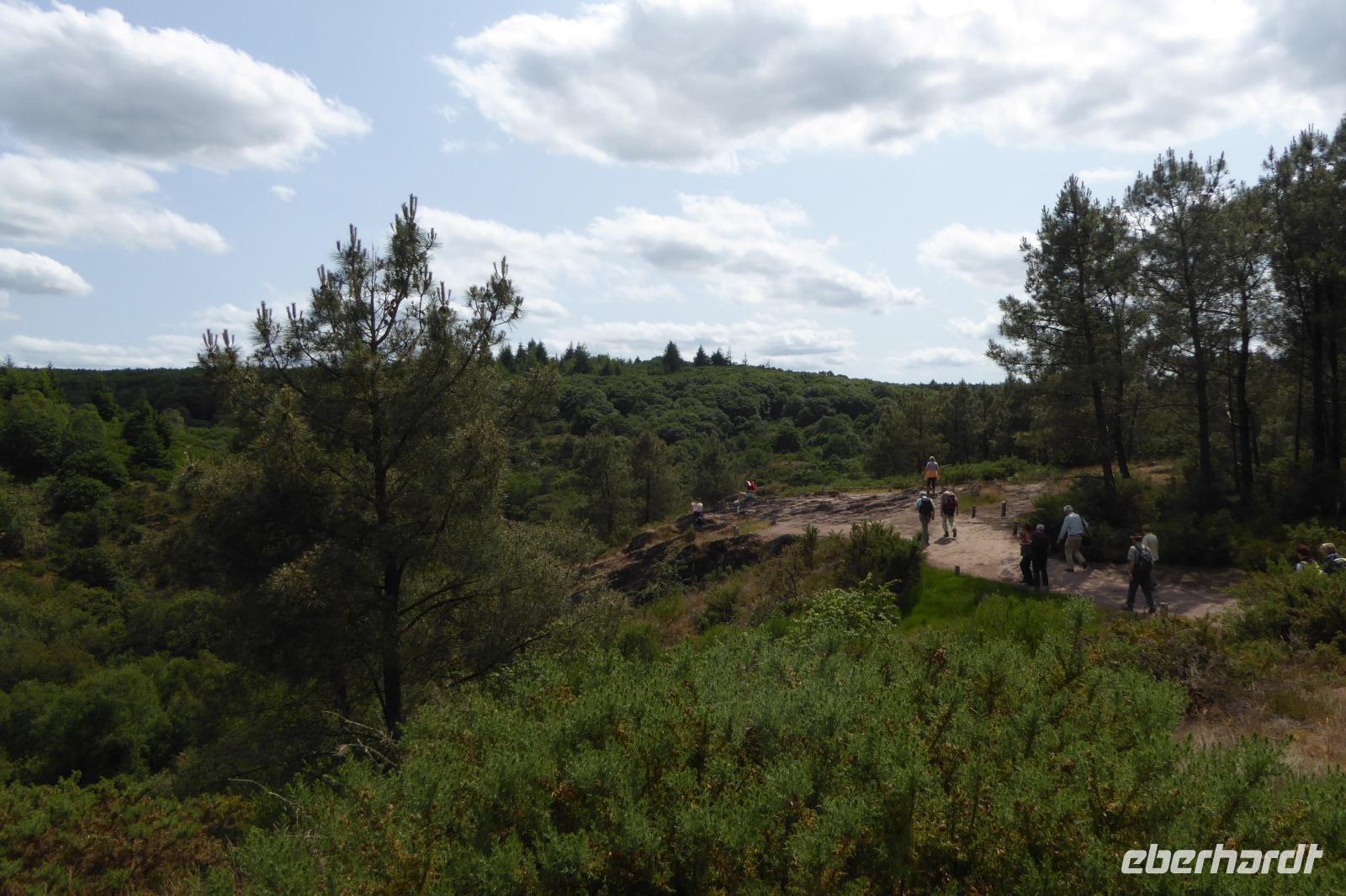 Unsere erste gemeinsame Wanderung führte uns zum Sagenwald von Brocéliande, der noch vor ein paar Jahren lediglich als der Wald von Paimpont bekannt war. Dieses Waldgebiet sei der Schauplatz der Artus Legende. Hier zwischen Weiher, Quellen, Felsen und Dickicht sind der Fantasie keine Grenzen gesetzt und allein bei der Nennung des Namens denkt man unweigerlich an den Zauberer Merlin, an Viviane und an den Ritter Lancelot. Wir spazierten zur magischen Quelle von Barenton, doch wir begegneten weder Merlin noch Viviane- lediglich ein streunender Hund kreuzte unseren Weg... Da keine unserer Mitwanderinnen auf der Suche nach einem Ehemann war und niemand an Ringelflechte litt, verließen wir die wundertätige Quelle wieder und erfreuten uns an dem herrlichen lichten Wald und den in der Luft tanzenden Zitronenfaltern. Das angenehme Wetter nutzend, legten wir eine kleine Pause ein, um uns miteinander bekannt zu machen. Gut gelaunt und gespannt auf die kommenden Tage setzten wir unsere Wanderung fort.