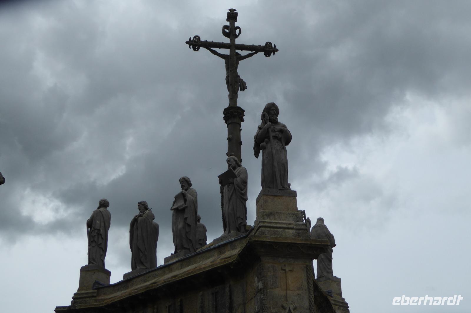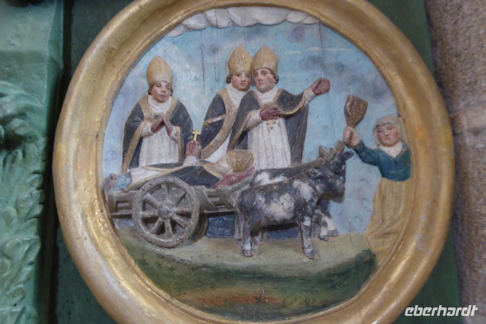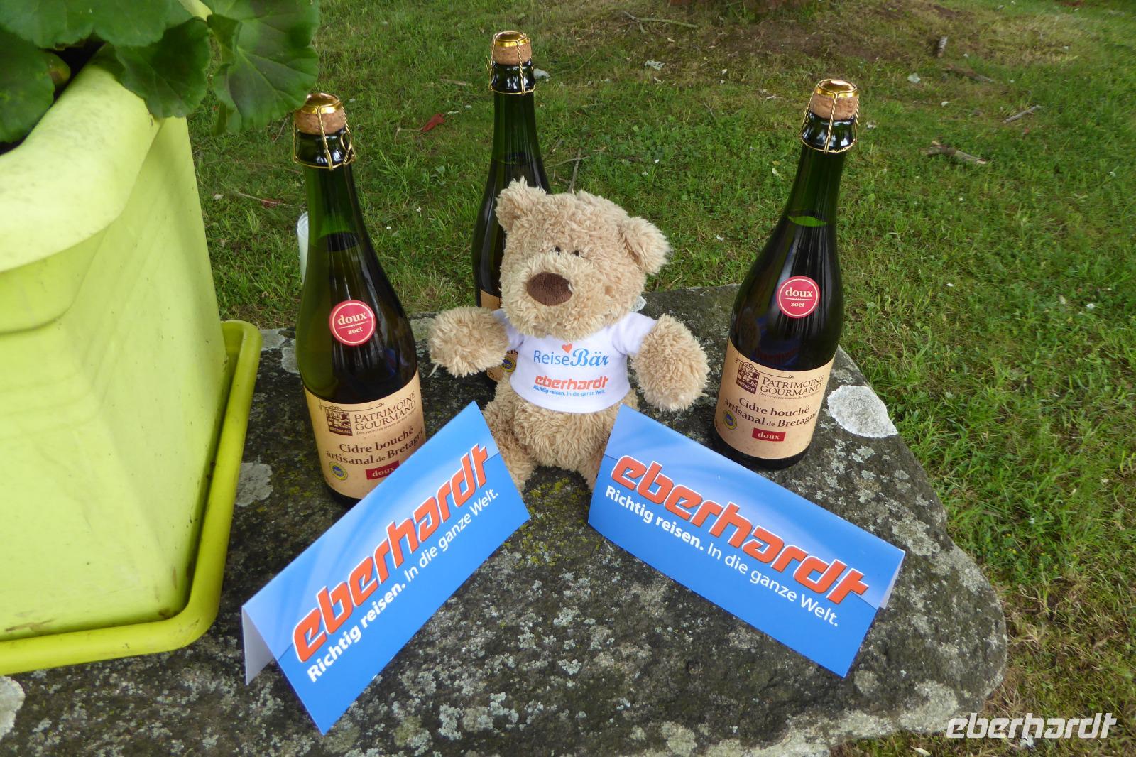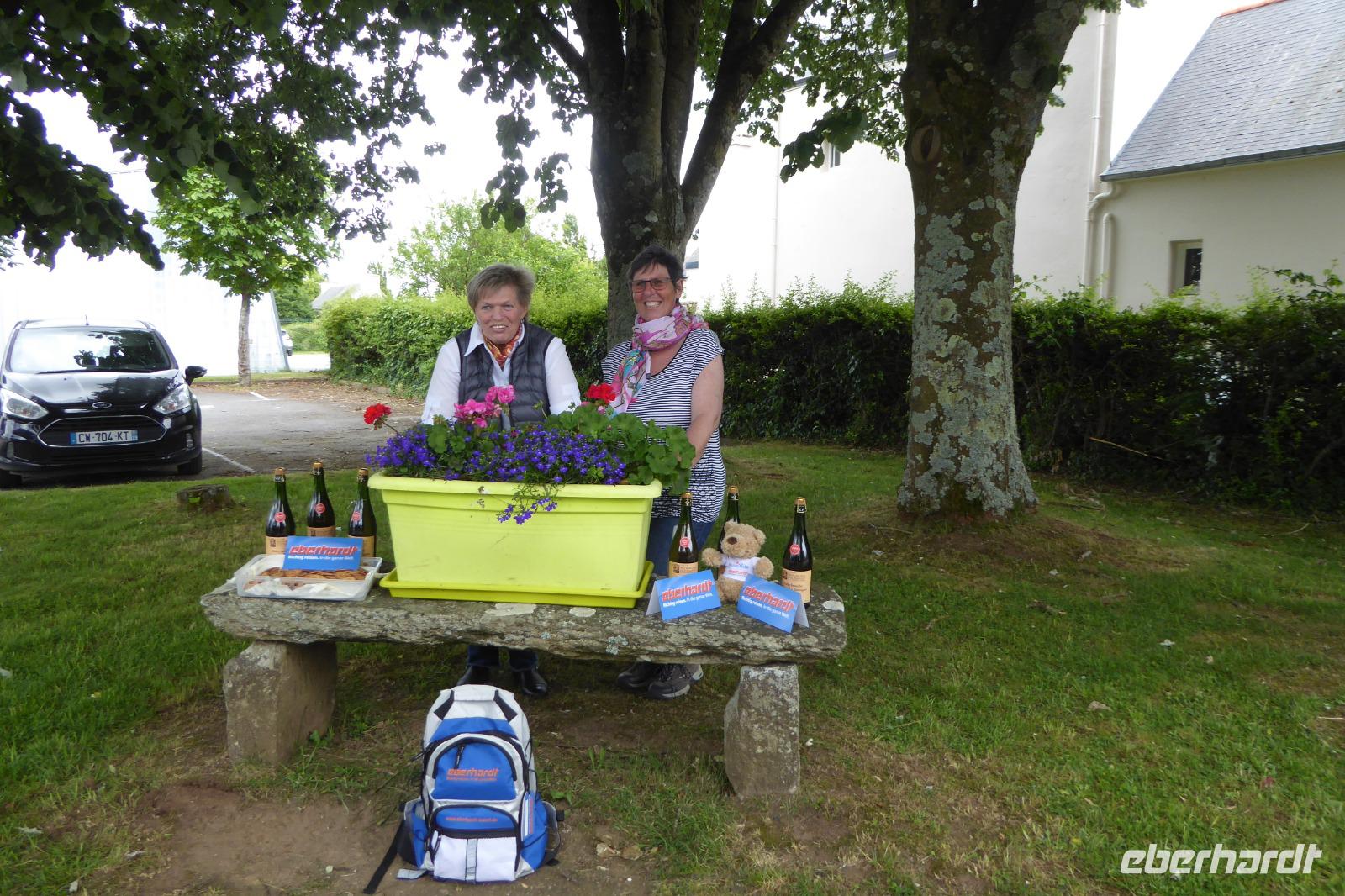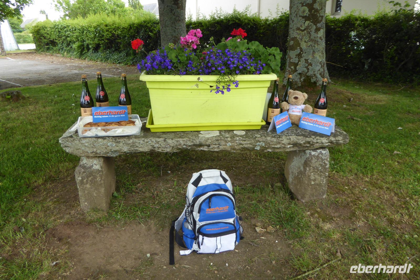 In Confort lauschten wir dem Glockenspiel des Rades der wundertätigen Maria und feierten mit bretonischen Keksen und herrlich kühlem Cidre hinter der Kirche unser Bergfest bis uns ein kleiner Regenschauer aus dem Paradies vertrieb.