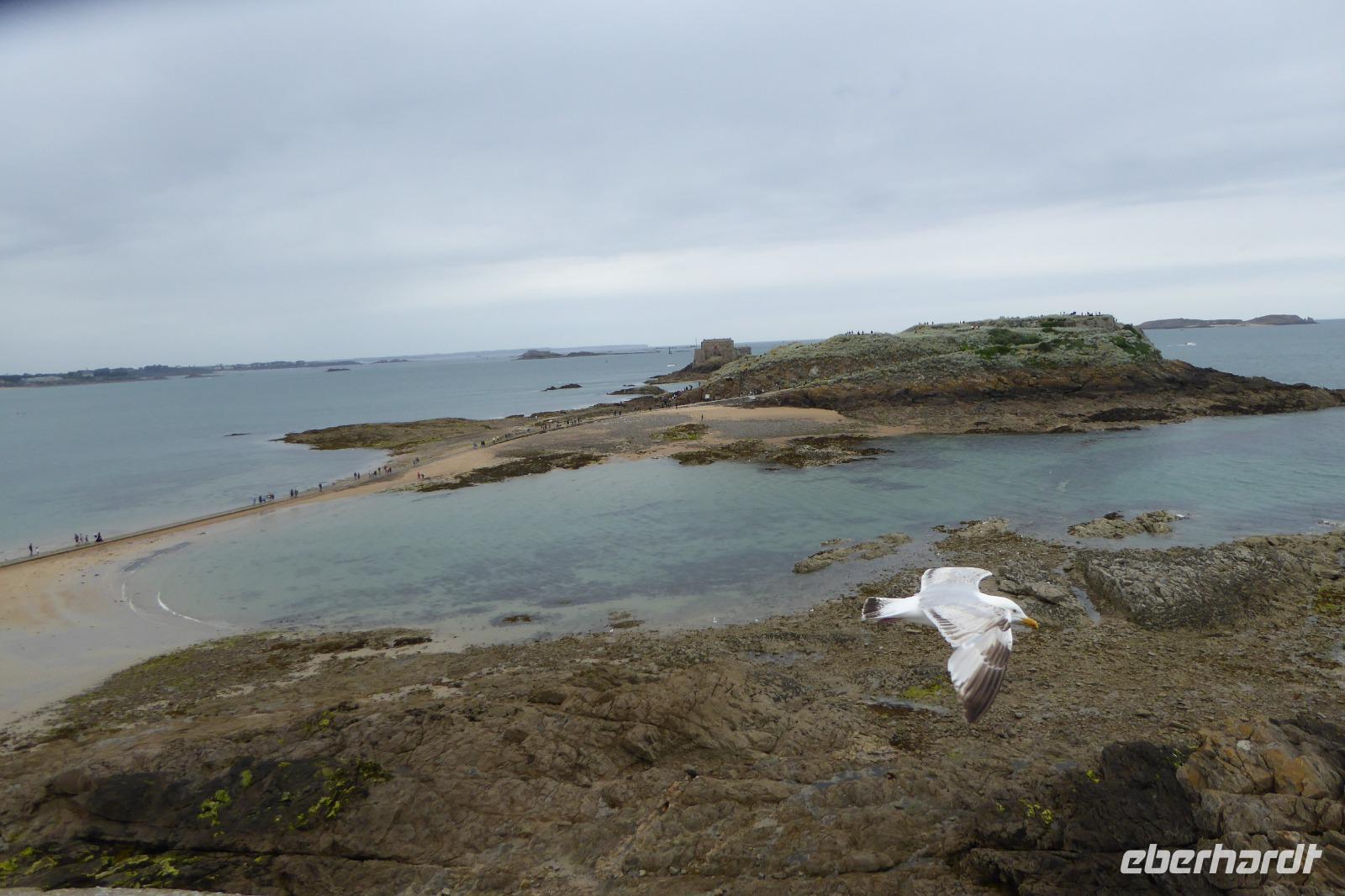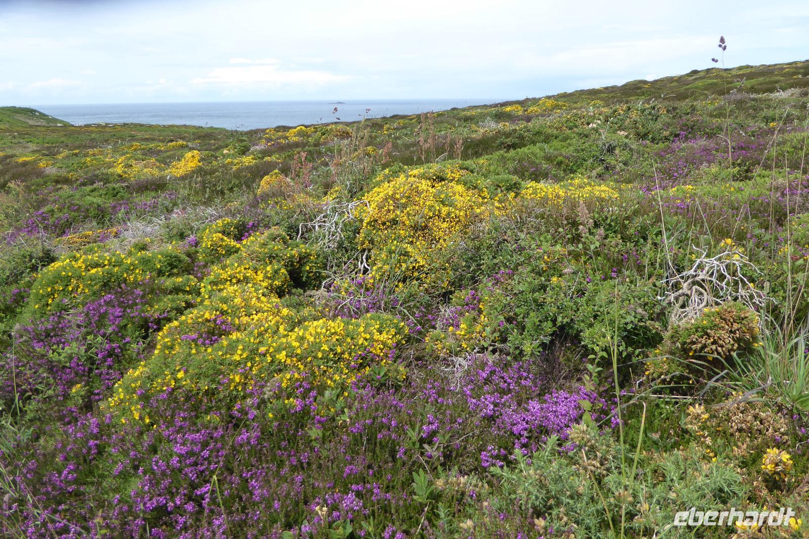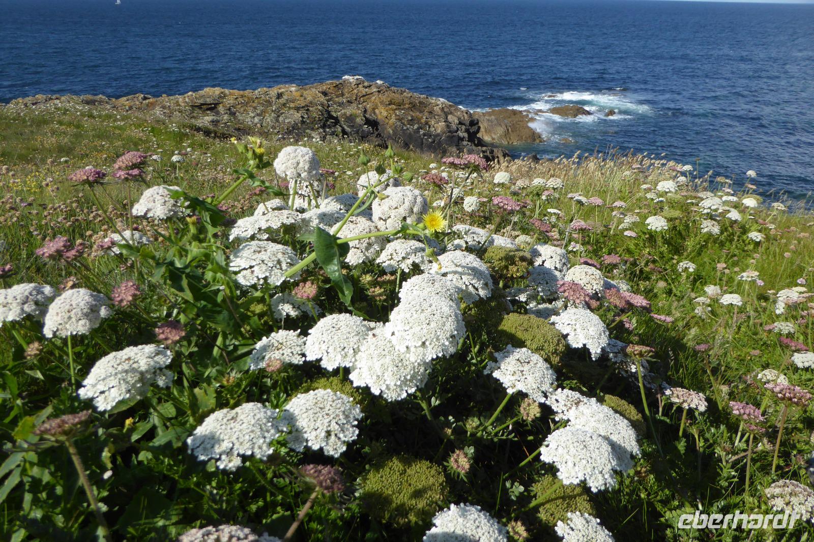 Auf der Pointe de Grouin konnte man in der Ferne den Mont St. Michel sehen und wir spazierten über die Felsnase der östlichsten Landzunge der Bretagne und konnten die auflaufende Flut sehen, die wie ein fliehendes Pferd in die Buchten zurückkehrte.
