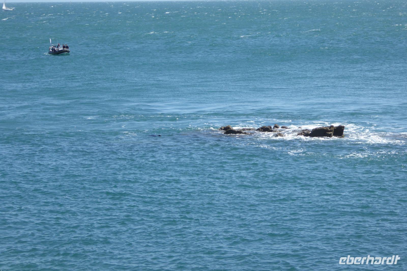 Bis St. Guenolé wetteifern bizarre Felsformationen, mit tosender Gischt zu ihren Füßen, im smaragdblauen Wasser um die Gunst des Betrachters. Nach 12 gemütlich gewanderten Kilometern erreichten wir hungrig den Leuchtturm von Eckmühl, wo uns Gisela bereits mit heißen Würstchen, Suppen und einem kühlen Bier erwartete. Danach hatte niemand mehr Lust, die 307 Stufen des Turmes zu erklimmen und so zogen wir weiter nach Concarneau.