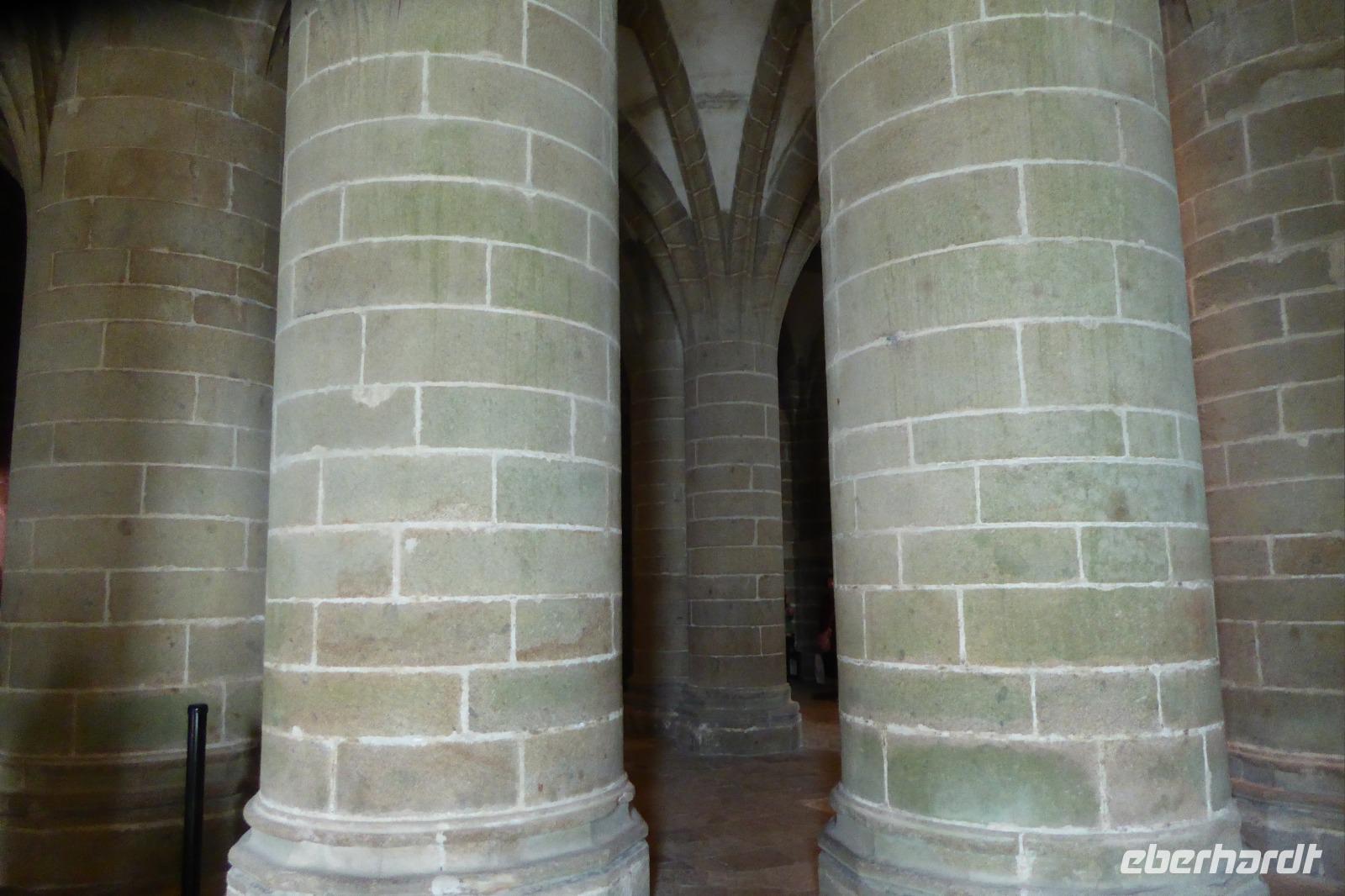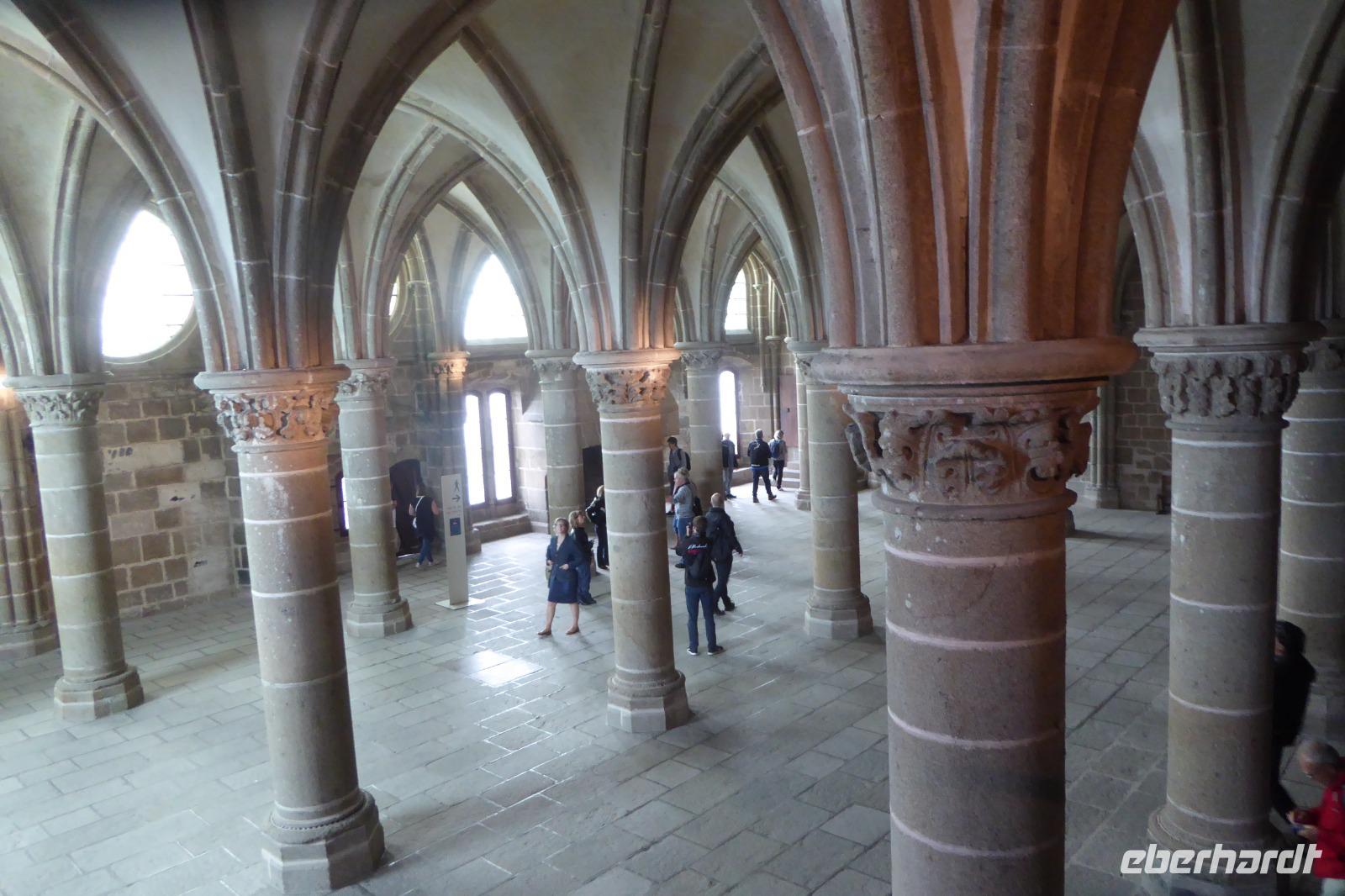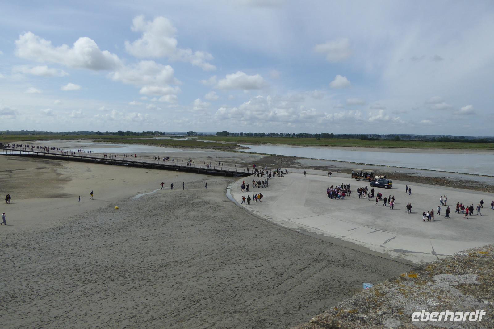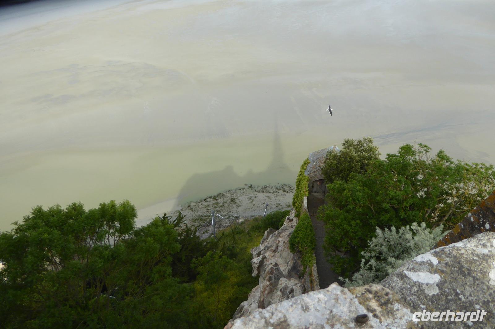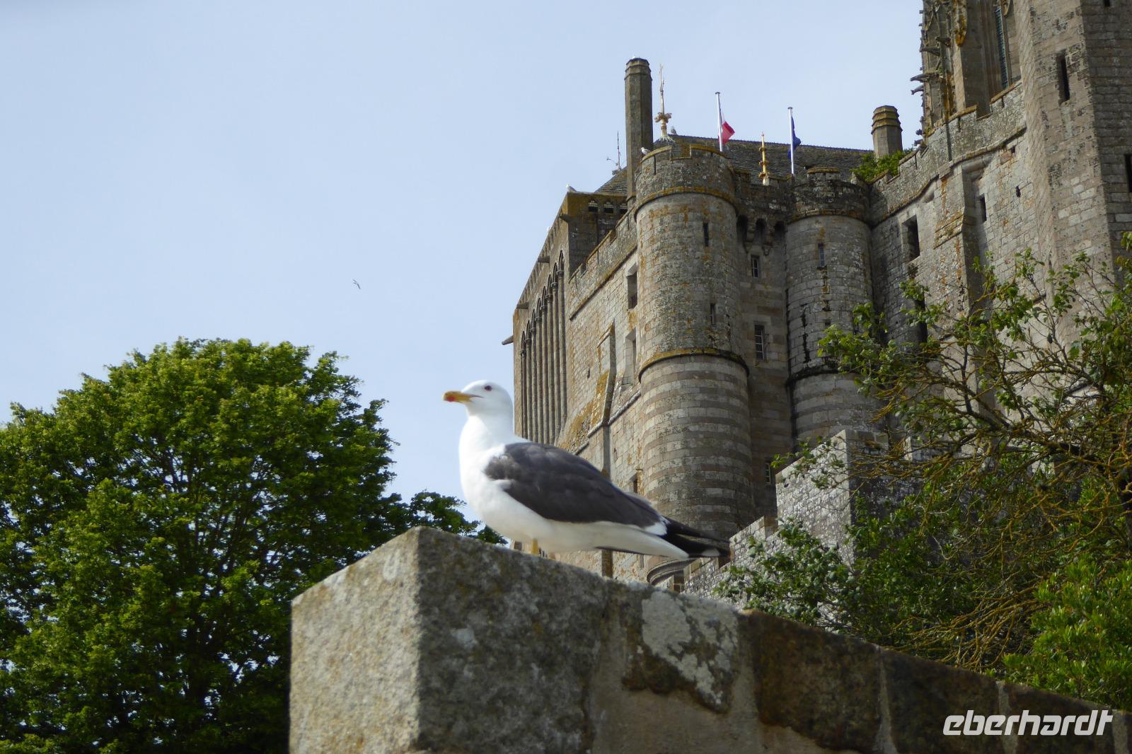 Schon früh machten wir uns auf zum Mont Saint Michel. Noch vor dem großen Ansturm erreichten wir den Inselberg, der auch bei Ebbe ein imposantes Bild bot. Um die obere Abteikirche zu erreichen müssen erst viele steile Stufen erklommen werden, doch die grandiose Aussicht von oben entschädigt für alle Mühen! Ausgerüstet mit Audioguides ließen wir uns die Geschichte der bedeutenden christlichen Wallfahrtsstätte, seit 1979 UNESCO Weltkulturerbe, erklären. Lange Jahre nach der französischen Revolution war die alte Klosteranlage ein gefürchtetes Staatsgefängnis, bevor sich Victor Hugo und andere für die Restaurierung des Ensembles stark machten. Jedes Jahr kommen mehr als drei Millionen Besucher zu dem heiligen Berg im Meer, der seit 1300 Jahren die Menschen in seinen Bann zieht. Bei unserem Rundgang über die Festungsmauern konnten wir die Wattwanderer beobachten und sahen, einer Ameisenstraße gleich, die Besuchermassen über die neue Brücke den Berg erstürmen. Glück gehabt, das frühe Aufstehen hat sich gelohnt- wir hatten den Berg noch ganz für uns und konnten selbst im Kreuzgang noch meditative Stille genießen!