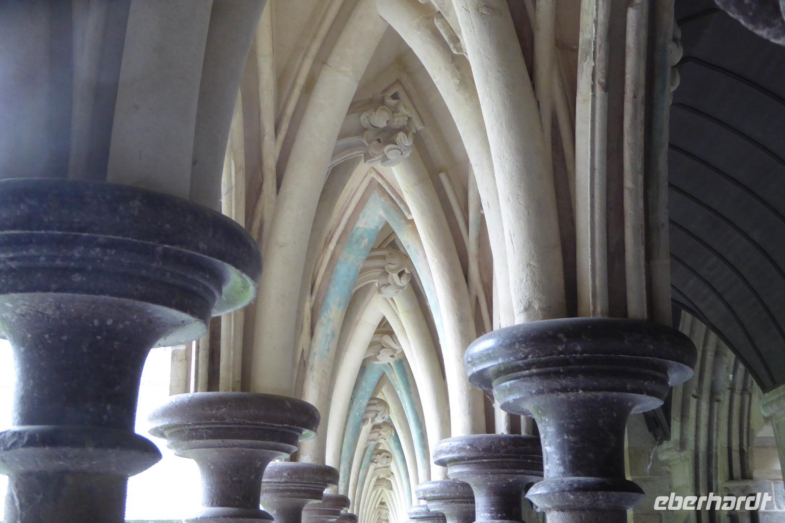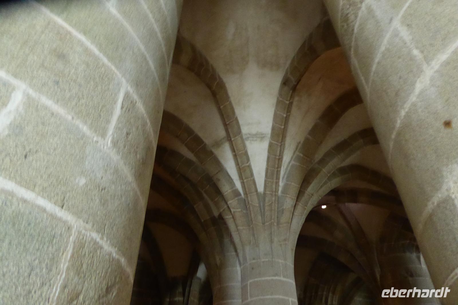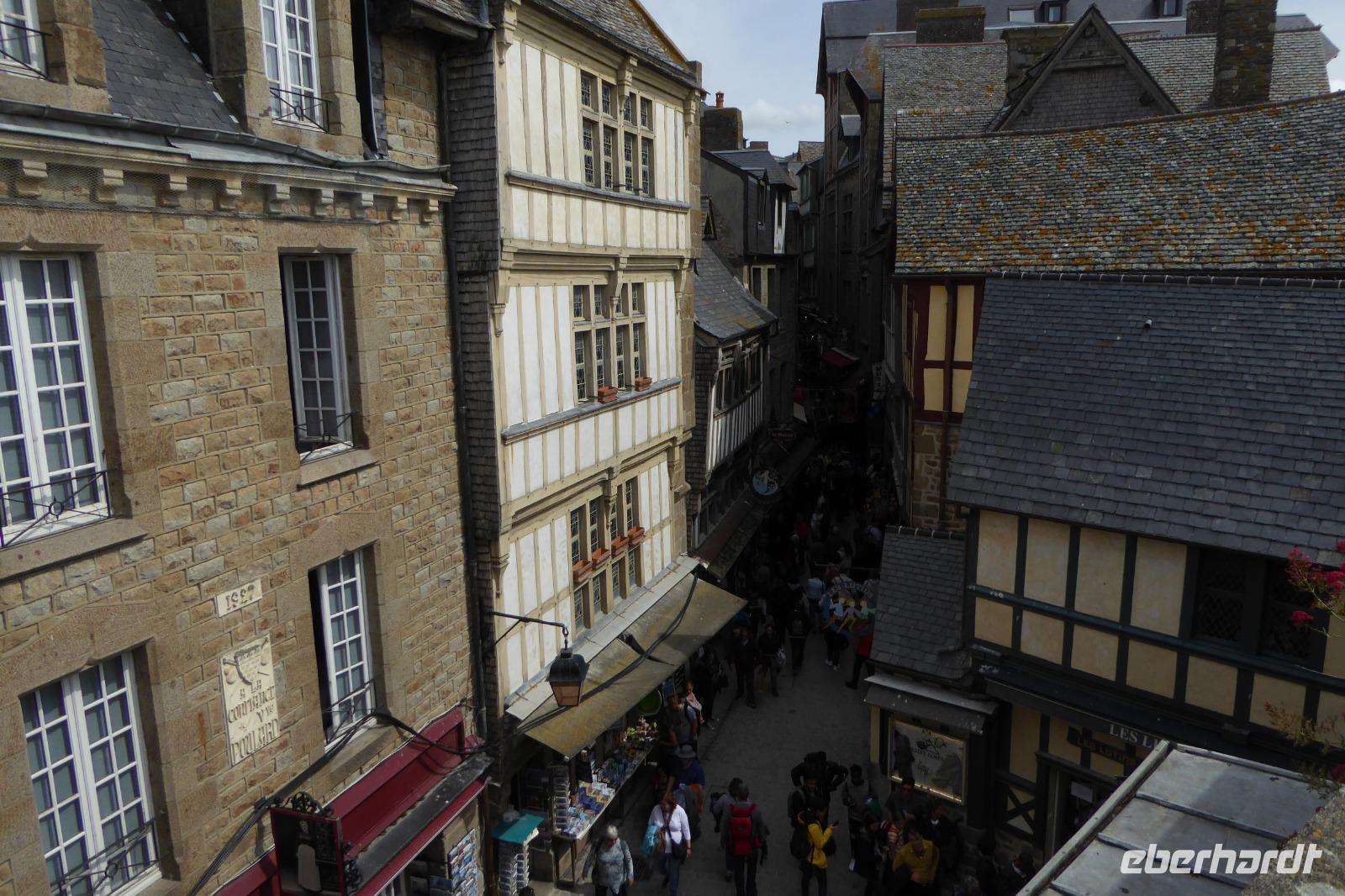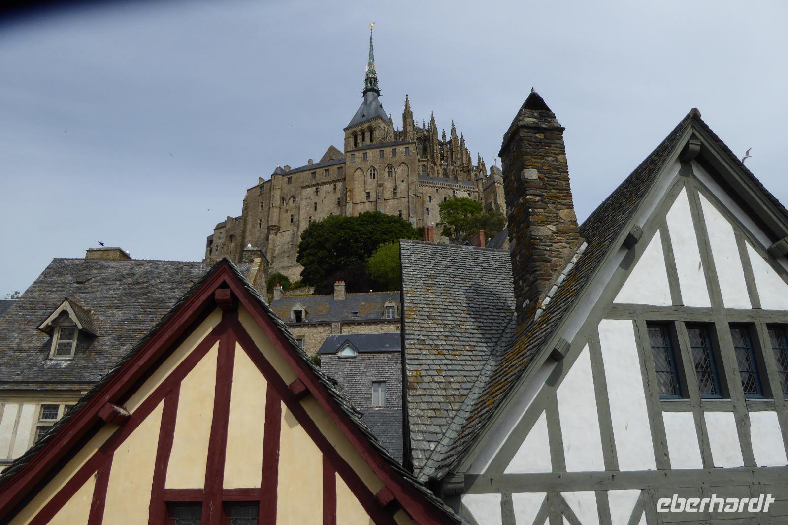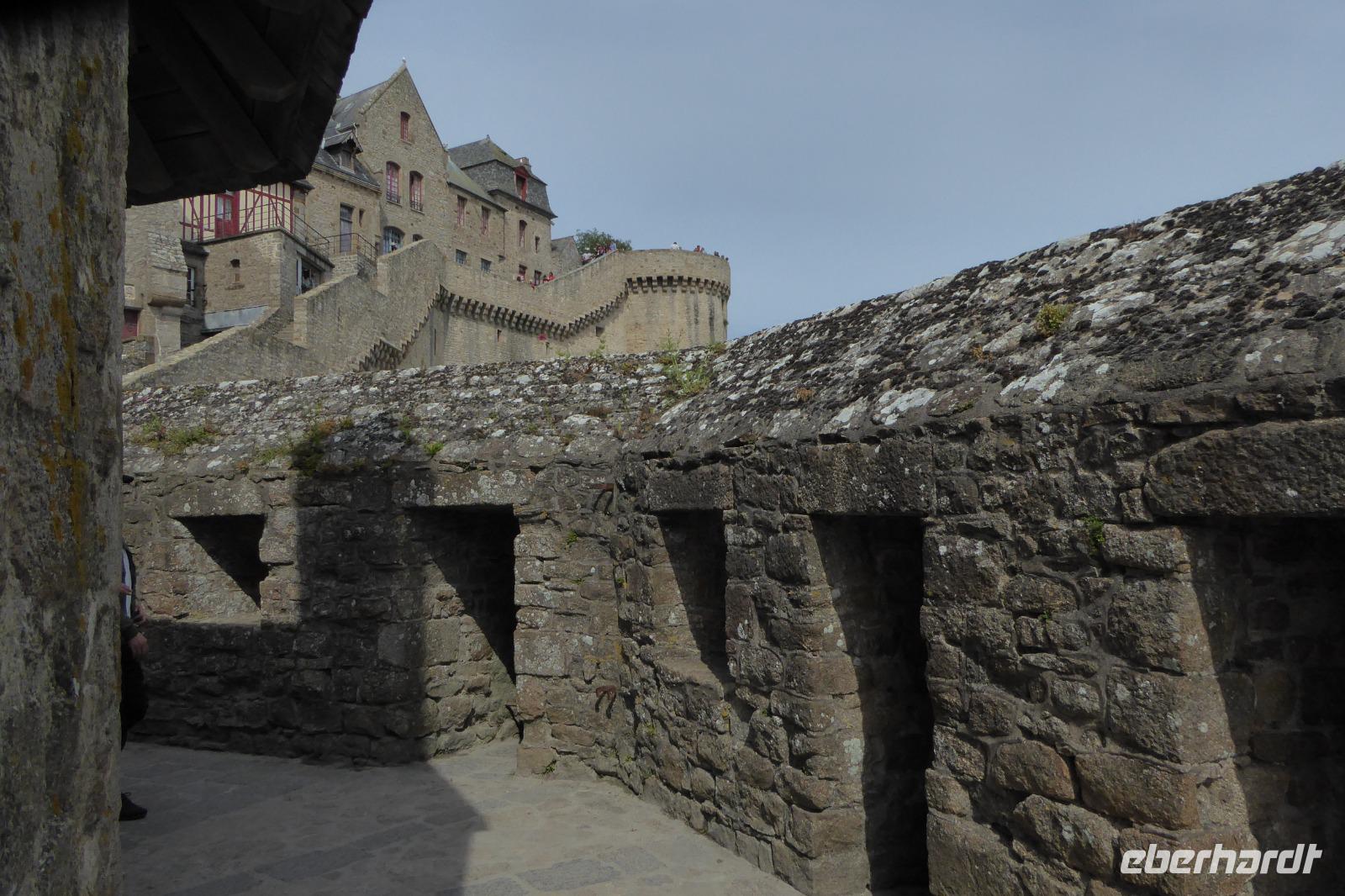 Schon früh machten wir uns auf zum Mont Saint Michel. Noch vor dem großen Ansturm erreichten wir den Inselberg, der auch bei Ebbe ein imposantes Bild bot. Um die obere Abteikirche zu erreichen müssen erst viele steile Stufen erklommen werden, doch die grandiose Aussicht von oben entschädigt für alle Mühen! Ausgerüstet mit Audioguides ließen wir uns die Geschichte der bedeutenden christlichen Wallfahrtsstätte, seit 1979 UNESCO Weltkulturerbe, erklären. Lange Jahre nach der französischen Revolution war die alte Klosteranlage ein gefürchtetes Staatsgefängnis, bevor sich Victor Hugo und andere für die Restaurierung des Ensembles stark machten. Jedes Jahr kommen mehr als drei Millionen Besucher zu dem heiligen Berg im Meer, der seit 1300 Jahren die Menschen in seinen Bann zieht. Bei unserem Rundgang über die Festungsmauern konnten wir die Wattwanderer beobachten und sahen, einer Ameisenstraße gleich, die Besuchermassen über die neue Brücke den Berg erstürmen. Glück gehabt, das frühe Aufstehen hat sich gelohnt- wir hatten den Berg noch ganz für uns und konnten selbst im Kreuzgang noch meditative Stille genießen!