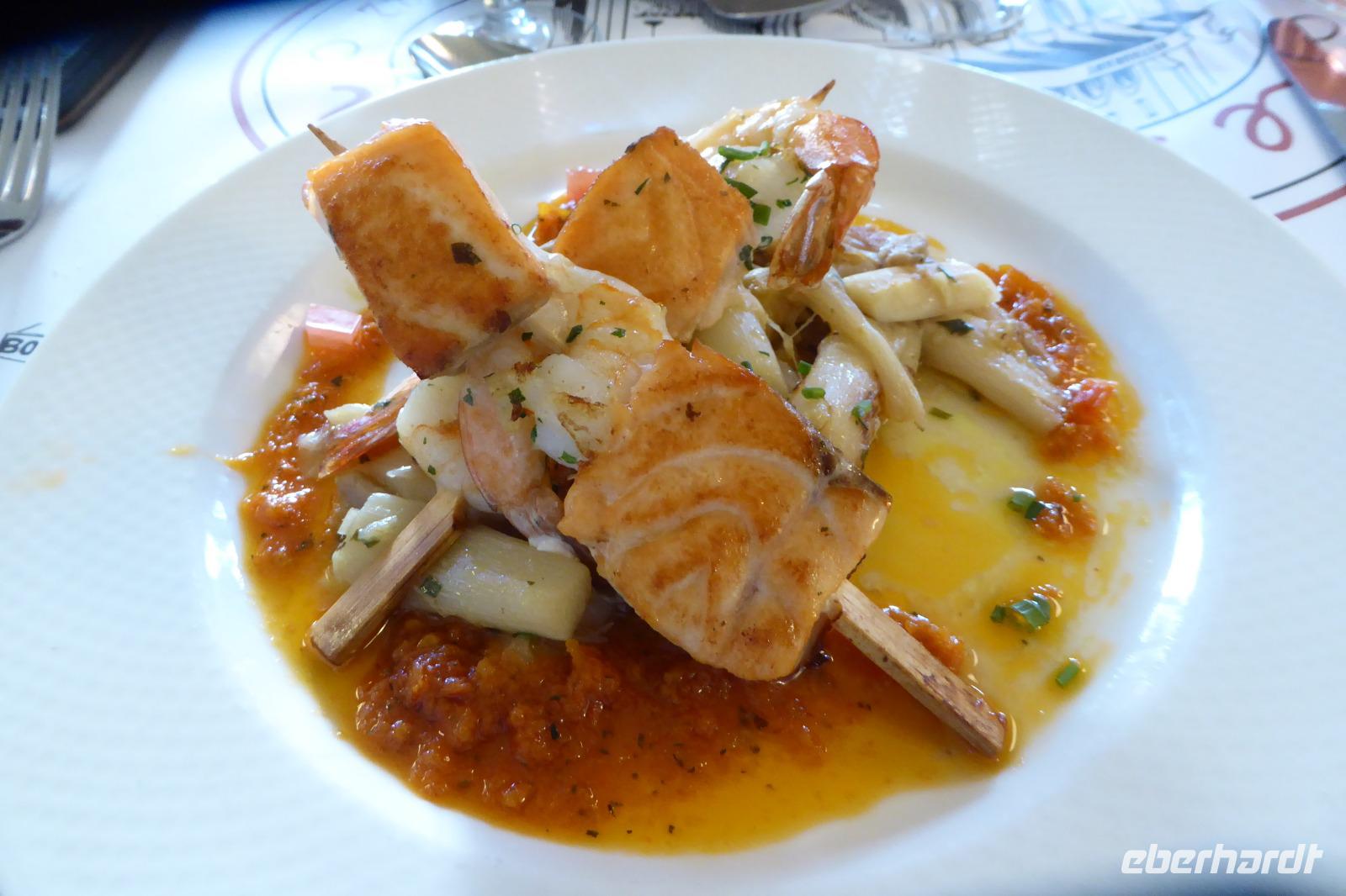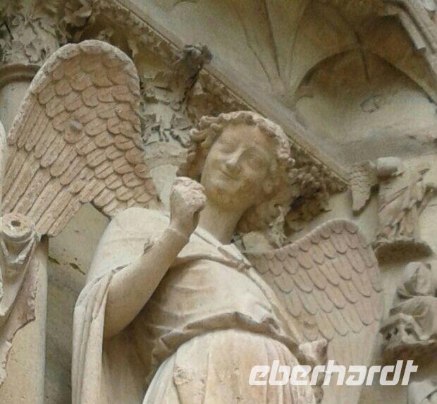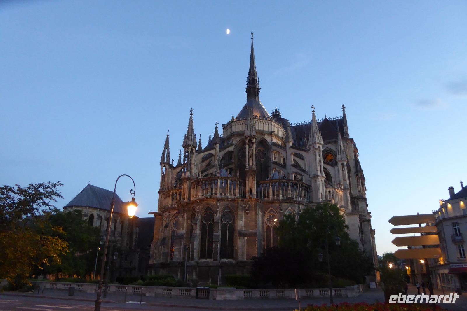 Am frühen Abend erreichten wir Reims in der Champagne. Unser zentral gelegenes kleines Boutique Hotel bot allen Komfort für die Zwischenübernachtung. Zum Abendessen trafen wir uns in einer typischen Brasserie mit herrlichem Art Deco Interieur. Das Boulingrin ist ein bekanntes Traditionslokal am Rande der Altstadt für gehobene Ansprüche. Zum Abendessen gab es leckere Spieße mit Scampi und Lachs, dazu ein Gemüseeintopf mit Spargel und Pilzen, die uns noch lange in Erinnerung bleiben werden. In den vergangenen Tagen bekamen wir einen kleinen Einblick in die leckere Küche Frankreichs. Nicht umsonst steht die französische Küche mittlerweile auf der Welterbeliste der UNESCO! Mit einem kleinen Abendspaziergang durch das nächtliche Reims beendeten wir unser umfangreiches Besichtigungsprogramm, betrachteten die römischen Hinterlassenschaften und honorierten den Wiederaufbau der im Ersten Weltkrieg stark zerstörten Stadt. Die Kathedrale, ein Meisterwerk der Hochgotik, seit 1991 Weltkulturerbe der UNESCO, in der 29 französische Könige gekrönt wurden, hüllte sich zum Abschied in ein schlichtes Lichterkleid. Und mit dem Gruß des lächelnden Engels verabschiedeten wir uns in die Nacht.