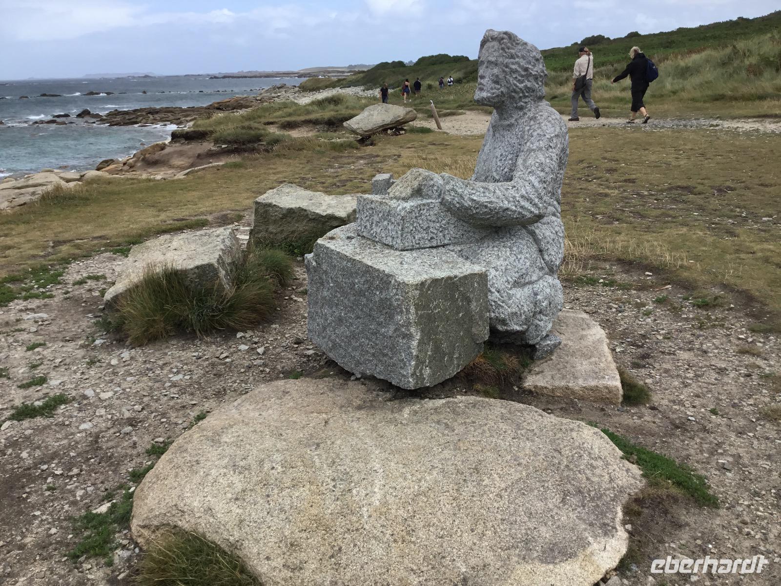 Der Morgen beginnt noch grau und mit einem Missverständnis. Eigentlich sollten wir unsere Stadtführerin auf am Parkplatz treffen, so die Information des Touristenbüros. Nur leider kommt niemand. Also beginnen wir unseren Rundgang schon einmal, schließlich ist dies unser letzter Vormittag in Quimper. Am Marktplatz taucht dann Yolande auf. Es findet sich immer wieder alles zusammen! Sie übernimmt nun die Stadtführung und mit ihr lernen wir auch eine echte Bretonin kennen. Charmant und unterhaltsam erzählt sie über ihre Stadt. Für uns heißt es jetzt nach drei Tagen Abschied zu nehmen von Quimper und der Region, denn es geht nun auf die andere Seite der Bretagne. Zunächst machen wir eine kleine Wanderung auf der Île Grande, die gar nicht so groß ist, aber lange Zeit dem Granitabbau diente. Im Anschluss wollen wir echten bretonischen Whisky probieren, weshalb wir die Traditionsbrennerei Warenghem ansteuern. Beschwingt geht es dann zu unserem Hotel im Gewerbegebiet von Lannion, wo sich vor dem Essen noch die Gelegenheit bietet im großen Supermarkt einige Mitbringsel zu erwerben.