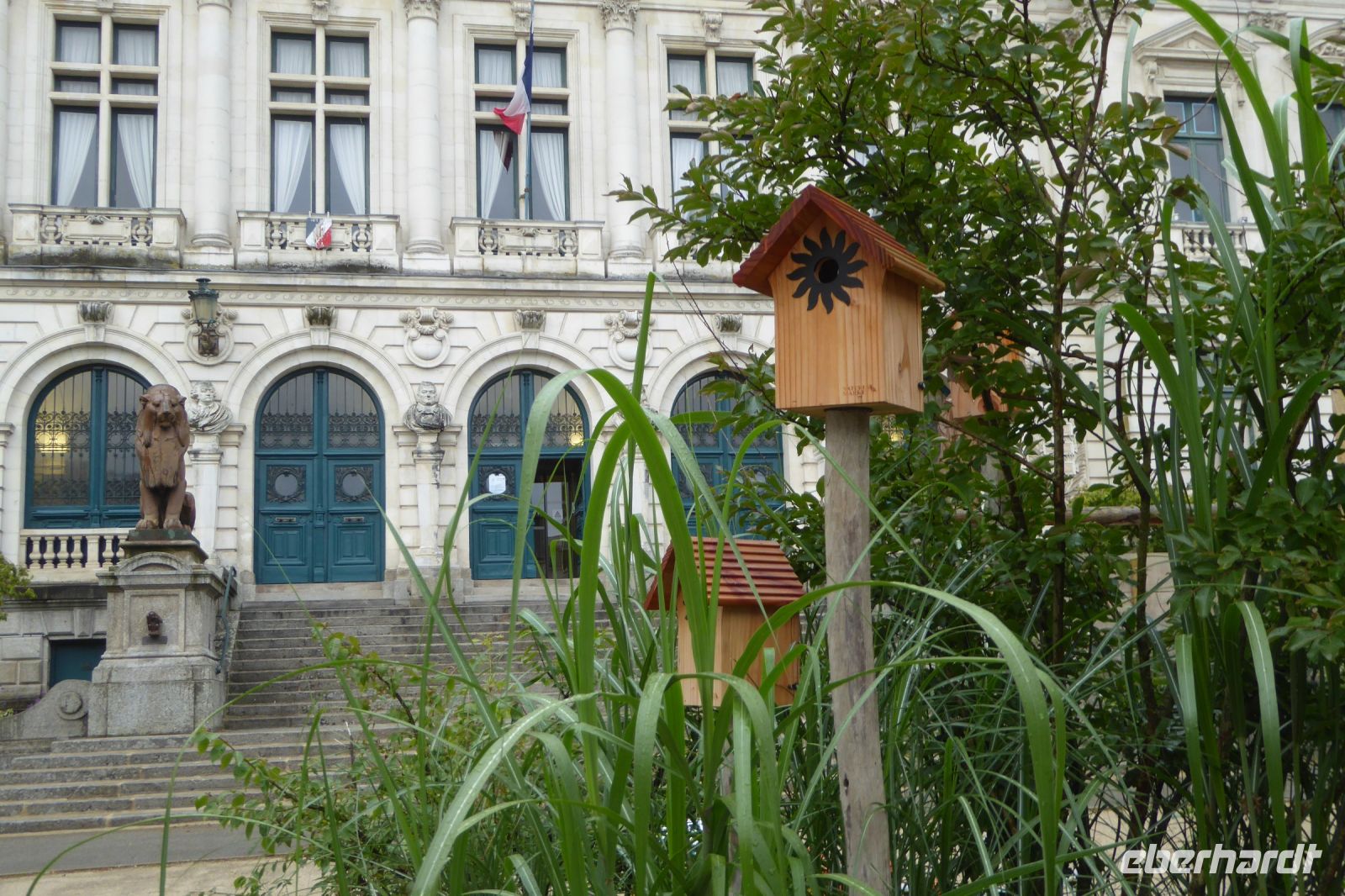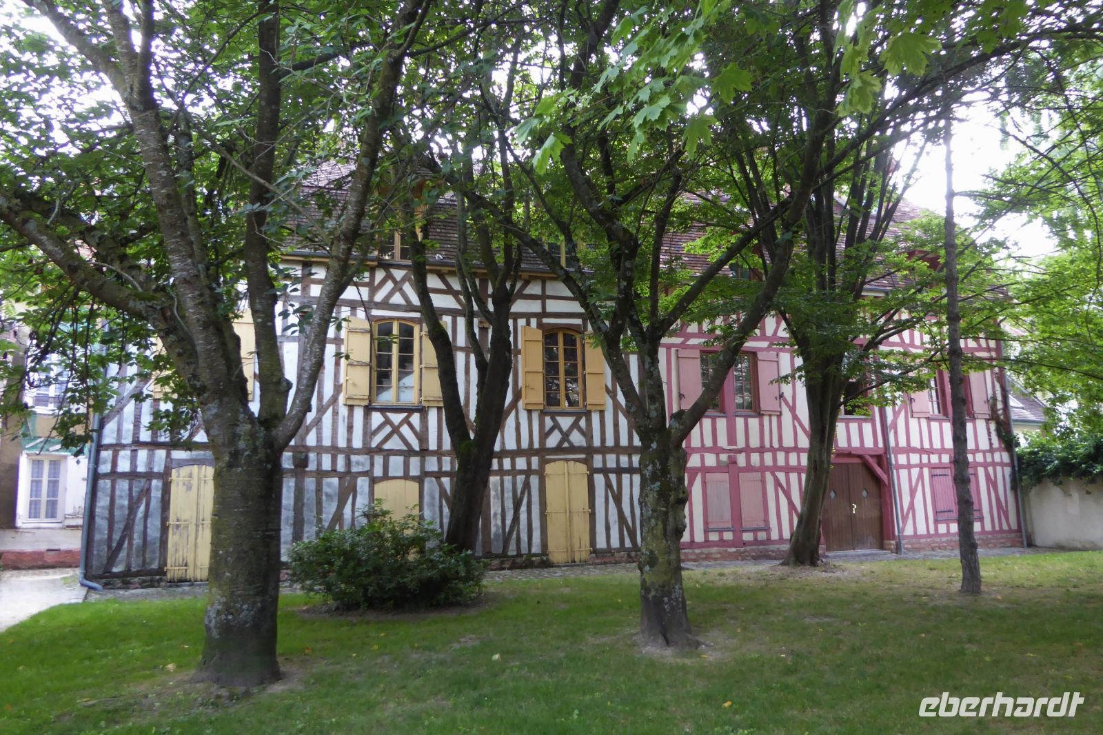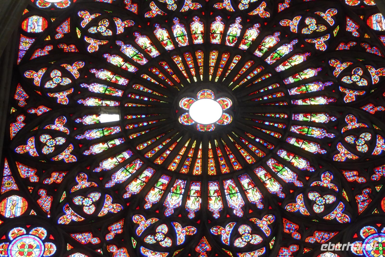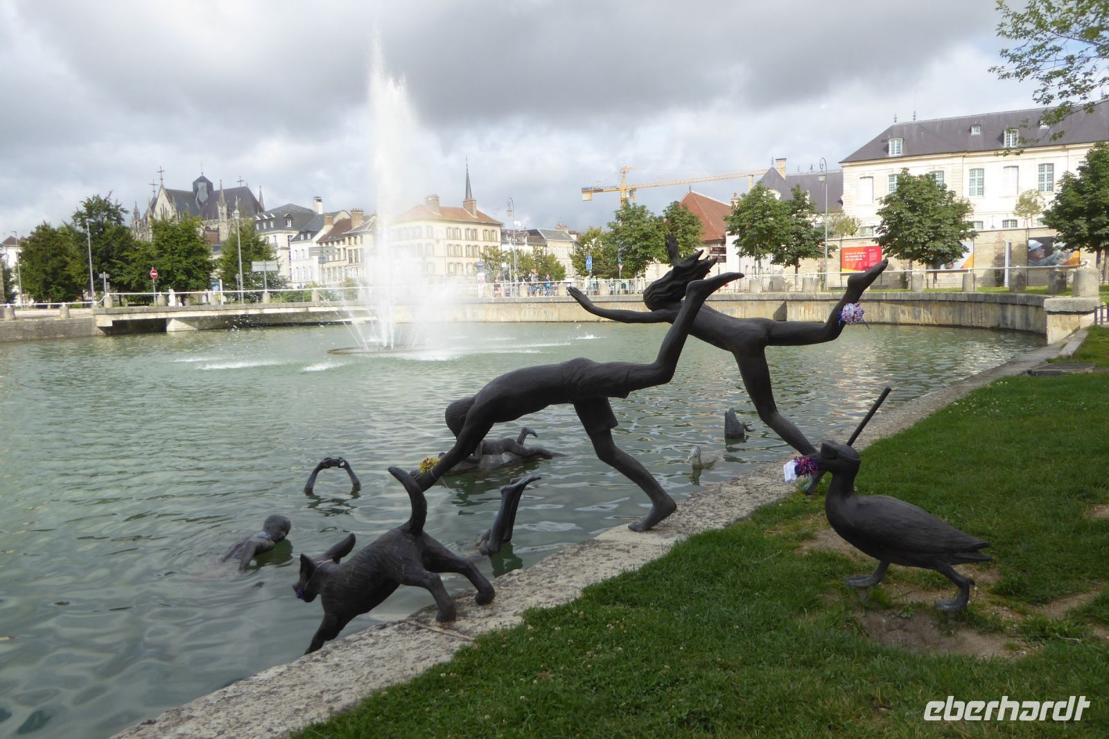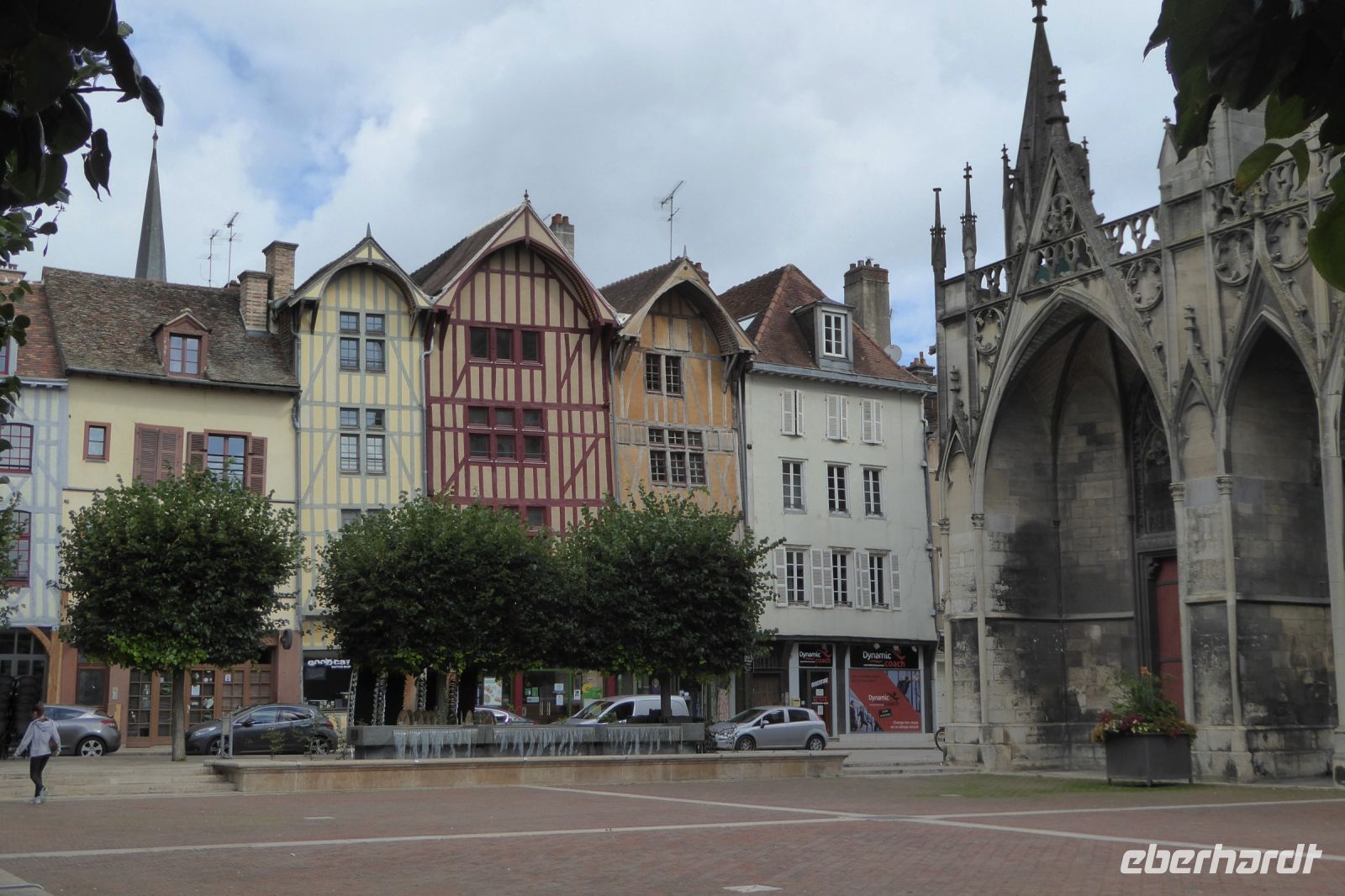 Am nächsten Morgen starteten wir mit einer kleinen Verspätung zu unserer ersten Stadtbesichtigung. Das kleine Städtchen Troyes präsentierte sich in sonntägliche Ruhe. Wir bummelten durch die engen Gassen und bestaunten die bunten und windschiefen Fachwerkhäuser. Die Stadt atmet noch den Geist des Mittelalters. Im elften Jahrhundert wurde hier Schlomo Jizchaki, der spätere Rabbiner und Gelehrte Raschi, geboren. Er ist einer der bedeutendsten jüdischen Gelehrten des Mittelalters, der auch in Worms und Mainz studierte. Der Befreier Jerusalems, Thibault, schrieb hier seine Liebeslieder für Blanca von Kastilien und Chrétien de Troyes mischte christliche Tugenden, Ritterehre und Minne mit dem Mythos um die Ritter von der Tafelrunde und König Artus: Der moderne Ritterroman des zwölften Jahrhunderts hatte hier seinen Ursprung. Tempelritter zogen von Troyes ins Heilige Land, Gelehrte, Geldwechsler, Handwerker aller Art brachten Reichtum in die Stadt und die Mühlen an der Seine klapperten unablässig. Troyes war eine reiche Stadt mit vielen Kirchen und Höfen. Die Kathedrale St. Pierre wurde durch die französischen Revolutionäre ihres Figurenschmucks beraubt, doch im Inneren erscheinen die wunderschönen, damals in Sicherheit gebrachten alten Glasfenster wieder in ihrer ganzen Pracht. Die ganze Stadt erscheint heiter und lebensfroh. Vor den Lokalen saßen bereits die ersten Gäste in der Sonne und genossen ihren Kaffee. Wir schlenderten durch die schönen Parkanlagen, schnupperten an duftenden Rosen und bewunderten die originellen modernen Skulpturen sowie das alte Karussell aus der Jahrhundertwende.