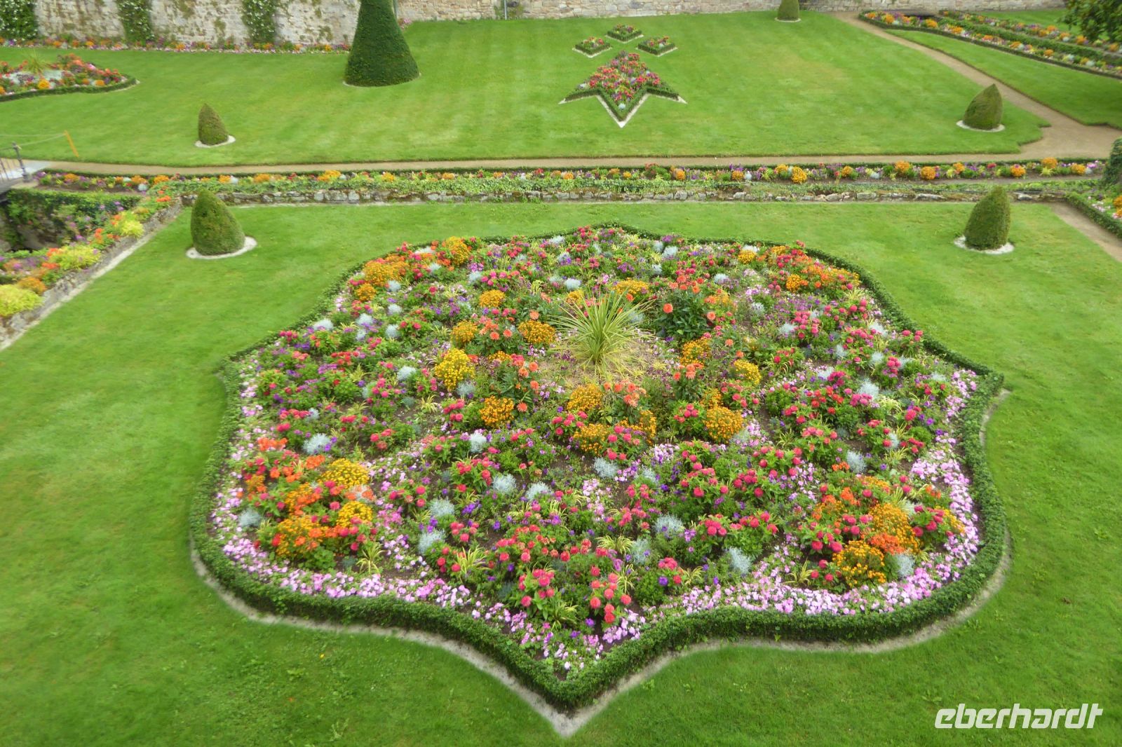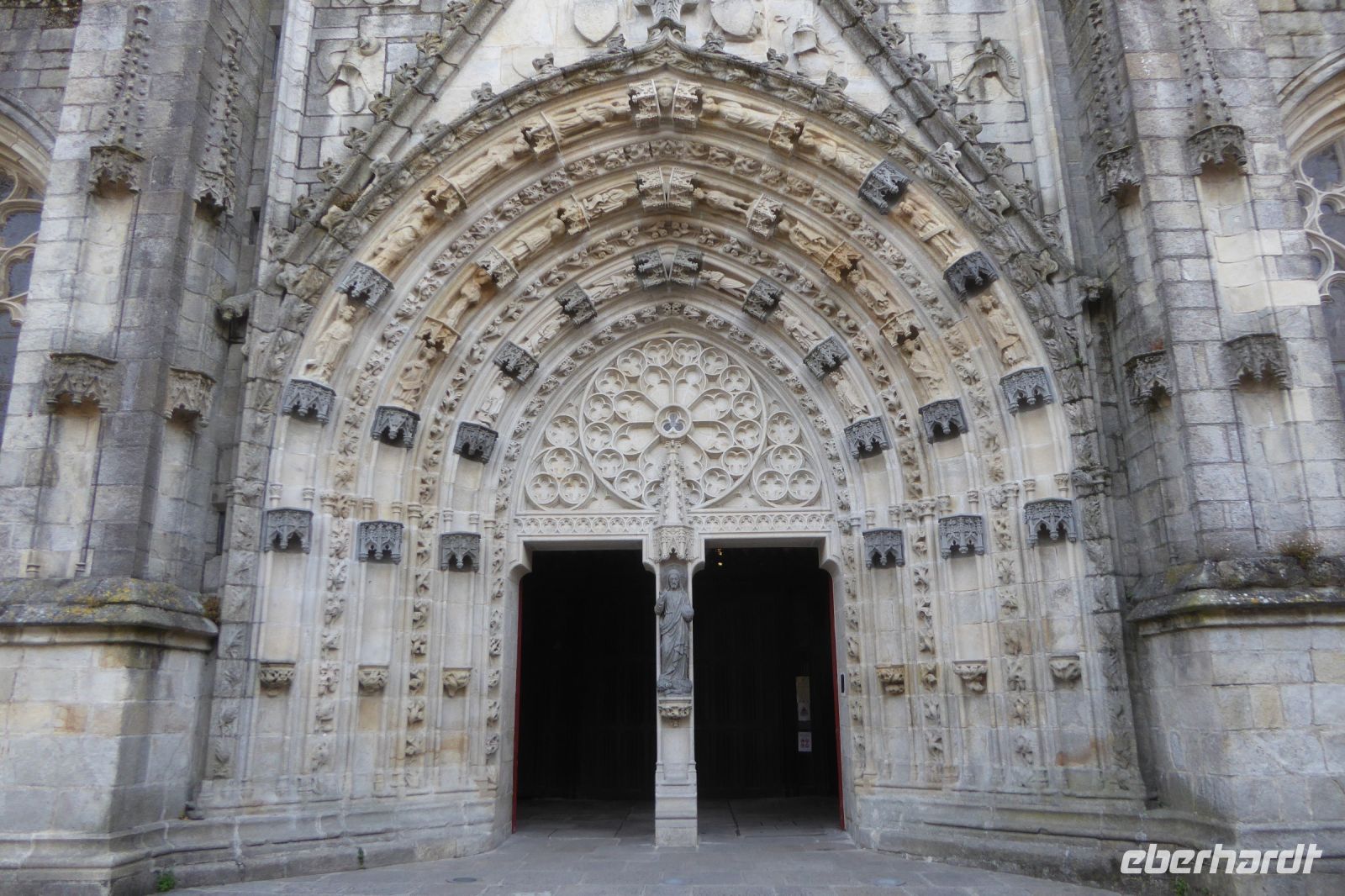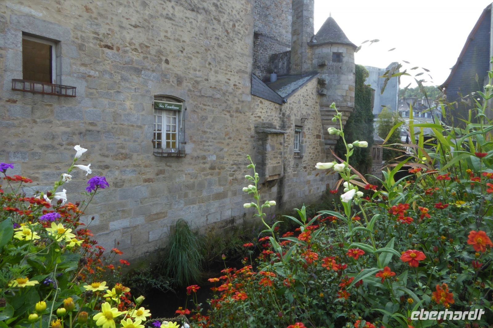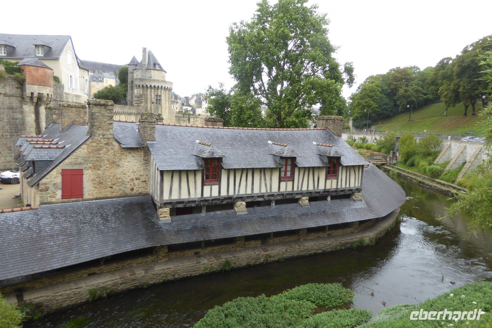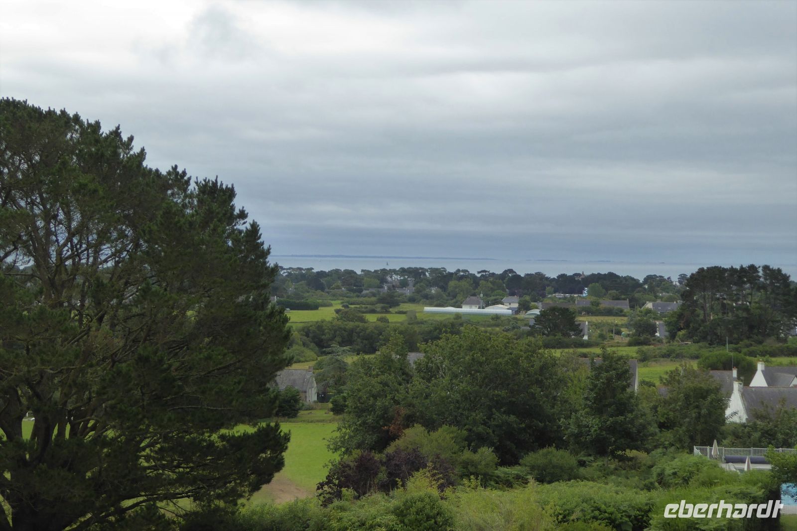 Der Himmel war bedeckt und es war mit 16° recht kühl als uns unsere Stadtführerin Kristin, eine waschechte Bretonin, am Hotel abholte. Vor dem beeindruckenden Hôtel de Ville von Vannes erzählte sie uns viel von der Geschichte der Stadt und der Bretagne. Wir streiften durch die Stadt und erreichten die imposante Stadtmauer und das Château de L´Hermine, das seinen Namen `Hermelin´ dem Wappentier des Herzogs Jean IV verdankt. In der Zeit seiner Regentschaft blühte die Stadt auf. Wir gingen über die Stadtmauer zum alten Waschhaus und bewunderten den herrlichen Blumenschmuck. Auf holprigen kopfsteingepflasterten Straßen ging es wieder in den alten Stadtkern zurück, mit seinen pittoresken Plätzen und den alten Fachwerkhäusern. In der Mitte der Stadt steht die gotische Kathedrale St. Pierre, die mit 110 Meter Länge einer der größten Kirchenbauten der Bretagne ist. Mit einem kurzen aber heftigen Regenschauer endete unsere Führung am Monoprix, wo wir uns mit Proviant und Getränken für unsere erste Wanderung am Nachmittag versorgten.