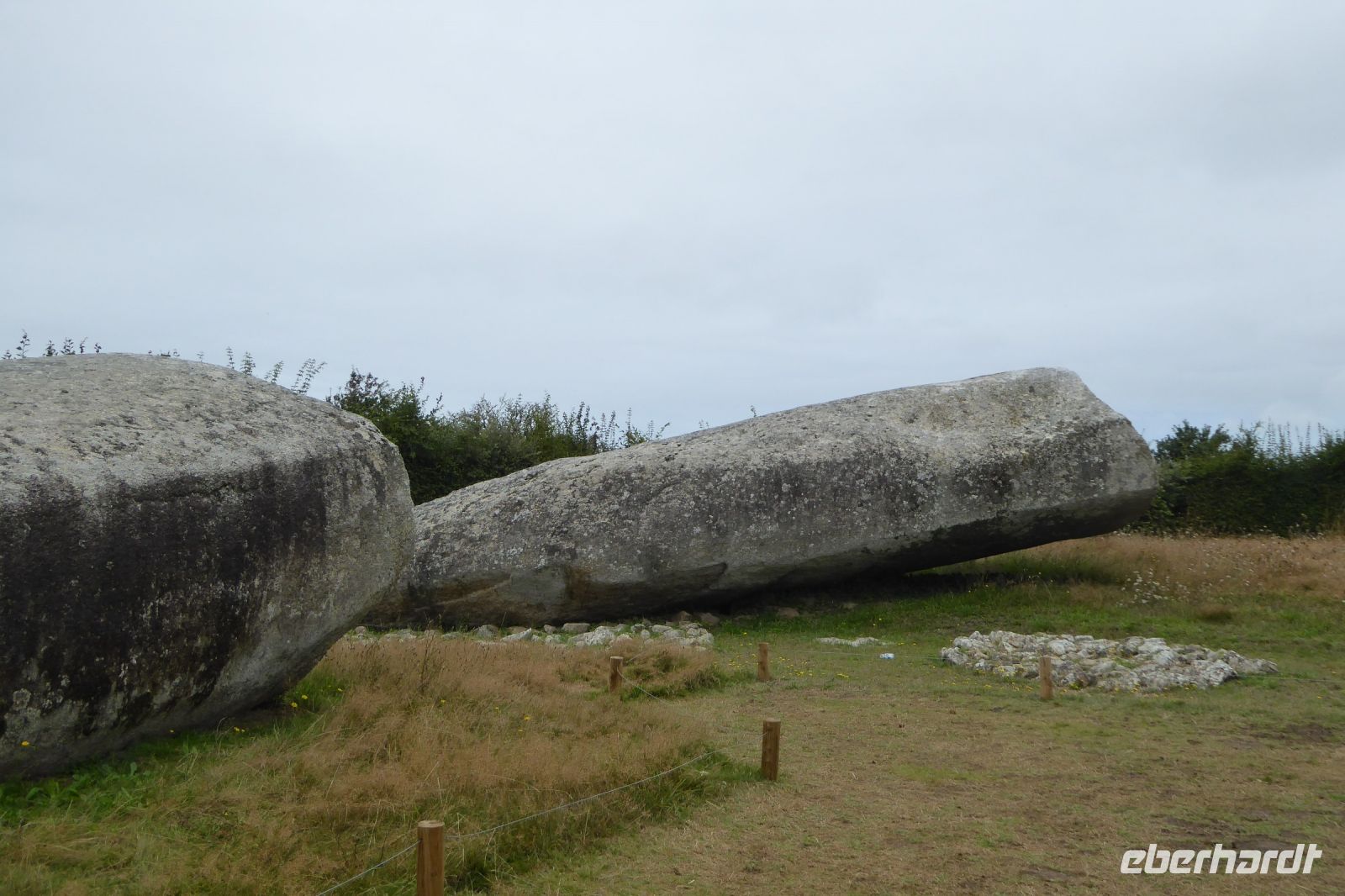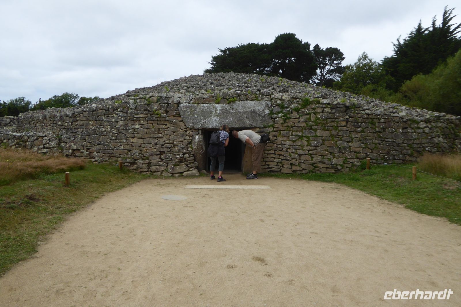 Der nächste Tag stand ganz im Zeichen der Megalithkultur. Taranis, der keltische Gott des Wetters und des Donners meinte es gut mit uns und wir umrundeten die großen drei Alignements (Steinreihungen) von Carnac, die mit ihren 4000 aufrecht stehenden Steinen mit einer Höhe von bis zu vier Metern zu den bekanntesten und beeindruckendsten rätselhaften Monumenten der Jungsteinzeit vor 6000 Jahren zählen. Vom Aussichtsturm hatten wir einen Blick über die unendlich scheinenden Steinreihen dieser Anlage, die die größte ihrer Art in Europa ist und die bis heute ihr Geheimnis nicht preisgegeben hat. Auf einem Hügel oberhalb der Küstenstraße von Carnac erhebt sich weithin sichtbar eine kleine Kapelle, die dem heiligen Michael geweiht ist. In diesem 10 m hohen künstlich angelegten Hügel befindet sich ein Dolmen und weitere Bestattungen in Steinkisten. Mit 30.000 m³ Erdaufschüttung ist es das größte Megalithgrab Europas. Von dort oben hat man eine wunderschöne Aussicht auf den gesamten Golf von Quiberon. Der anschließende Besuch im Museum von Locmariaquer trumpfte noch einmal mit Superlativen der Jungsteinzeit auf: dem größten Menhir mit 300 t Gewicht, dem längsten Galerie Grab mit 140 m Länge und einem begehbaren Dolmen mit einzigartigen rätselhaften Gravuren im Inneren.