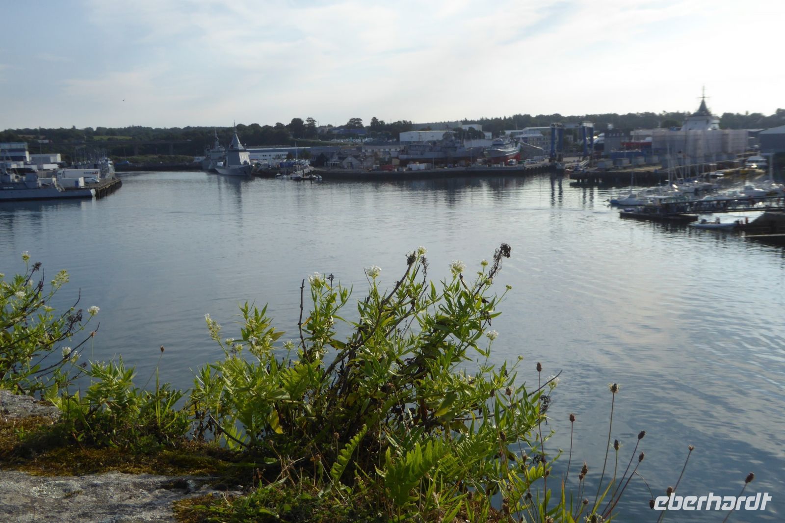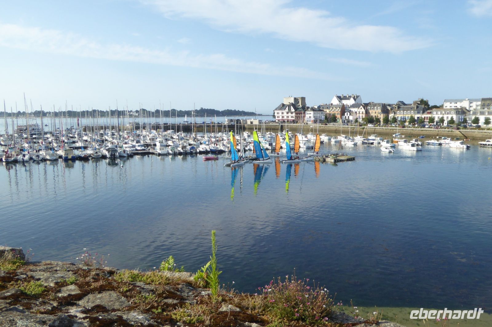 Gleich am Morgen brachen wir auf nach Concarneau. In den frühen Morgenstunden waren wir die einzigen Touristen in der Ville Close, die der Stadt vorgelagerte Seefeste, die deutlich die Handschrift Vaubans, des großen Festungsbaumeisters Ludwigs XIV trägt. Von den massiven Wehrmauern hat man einen schönen Blick auf die Uferstraße, an der das ´Amiral`, das Stammlokal des (fiktiven) Kommissar Dupin liegt. Unter dem Pseudonym Jean-Luc Bannalec hat 2012 der Autor und Verleger Jörg Bong einen neuen Serienhelden geschaffen, dessen Einsatzgebiet in der Bretagne ist. Die Romane, mittlerweile zehn an der Zahl, wurden vor der herrlichen Kulisse der Bretagne verfilmt und haben, vor allem in Deutschland, einen unglaublichen Bretagne Boom ausgelöst.