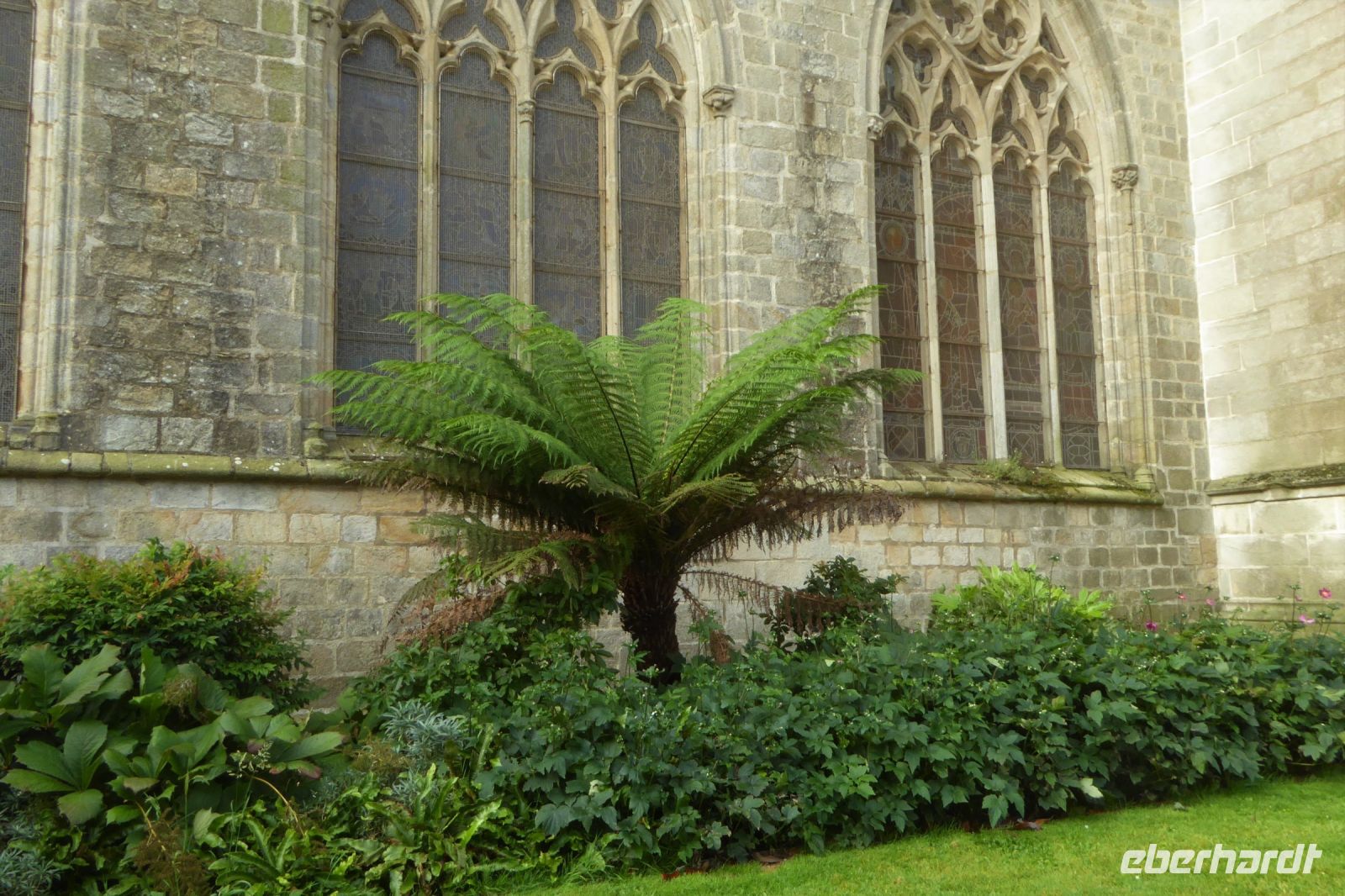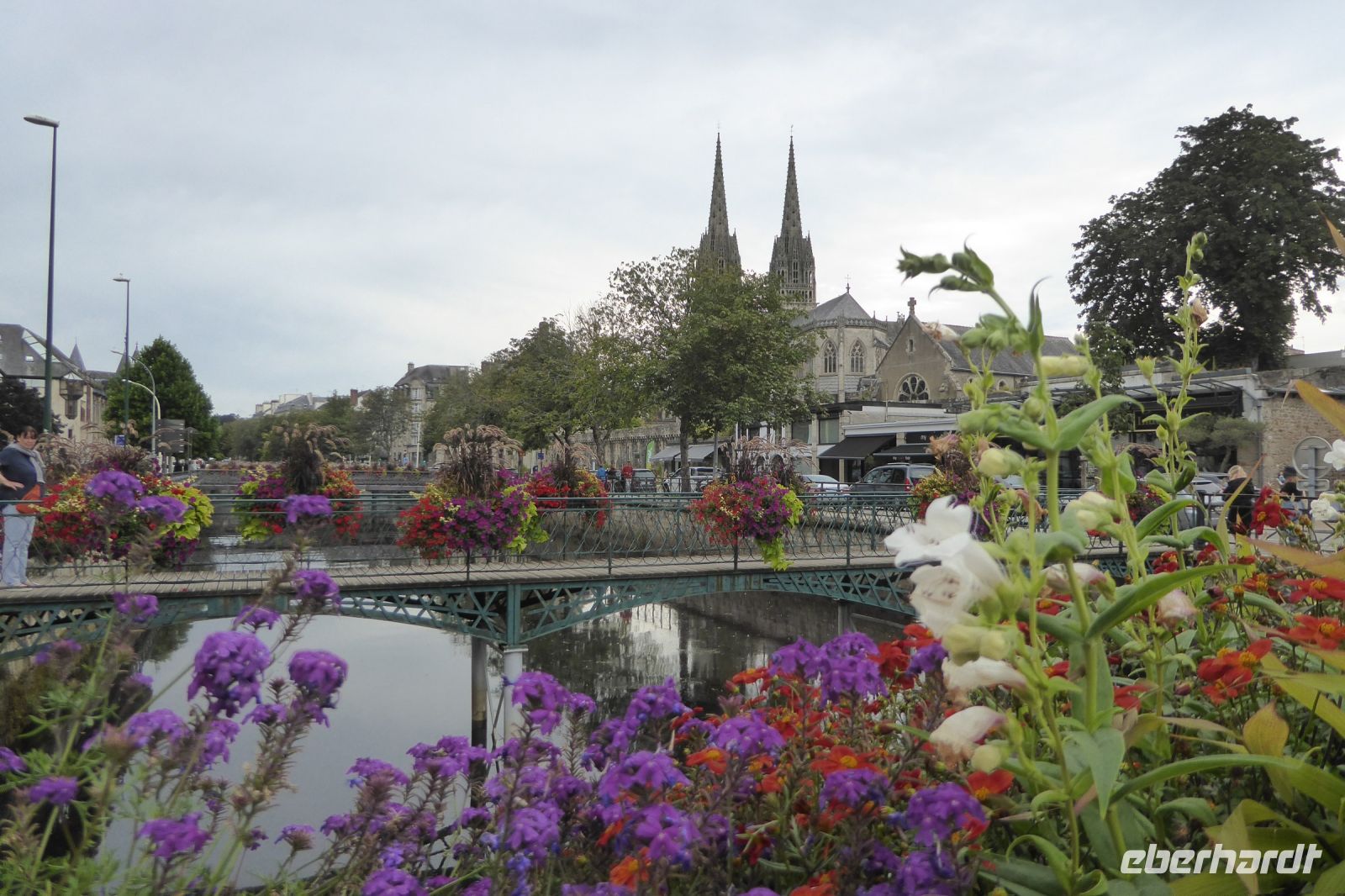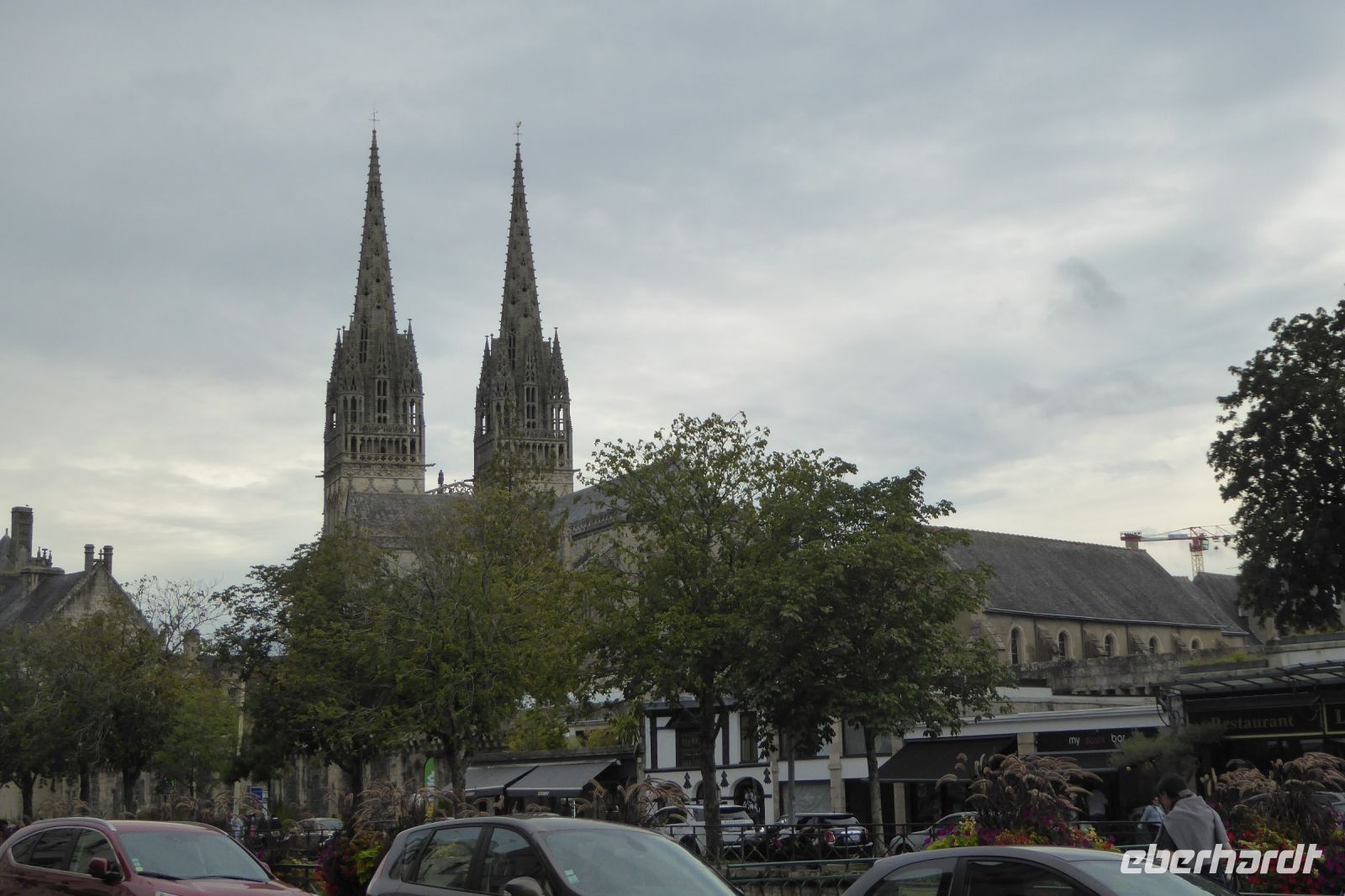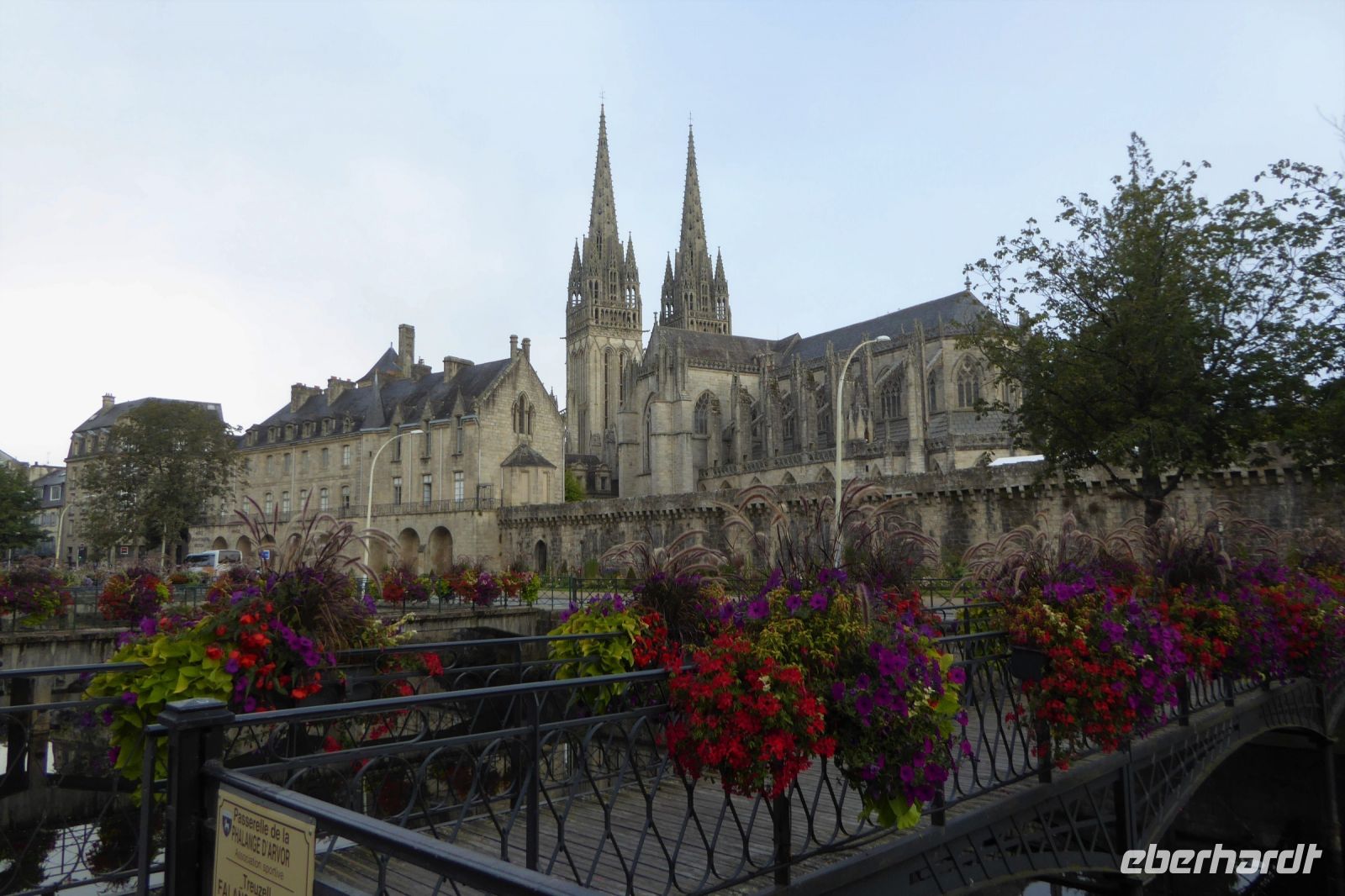 Heute Morgen wollten wir uns noch Quimper genauer ansehen. Wir trafen uns mit unserer Stadtführerin Yolande an der Kathedrale. Ähnlich wie Rom liegt die Stadt auf sieben Hügeln, drei Flüsse treffen sich hier und bis zum Meer sind es nur wenige Kilometer. Wir bummelten durch die Gassen der Altstadt und bestaunten die schönen alten Fachwerkhäuser, den Buttermarkt mit seinen netten Crêperien und natürlich die Kathedrale St. Corentin. Mehr als 600 Jahre mussten vergehen bis das Gotteshaus seine heutige Gestalt erhielt. Auffallend ist im Inneren der leicht abgeknickt gebaute Chor, der viel Platz für Spekulationen lässt und in dieser Form baugeschichtlich einzigartig ist. Im Chorumgang beeindruckten uns die bunten Glasfenster, darunter auch moderne Arbeiten der in Paris lebenden ungarischen Künstlerin Anna Stein. Die Zeit eilte schnell vorüber und nach kleineren Einkäufen verließen wir Quimper und fuhren weiter in den Norden Richtung Lannion. Eine kleine Programmänderung beschied uns in Trégastel an der rosa Granitküste eine Wanderung um die Halbinsel Renote. Herrliche Felsformationen, wunderschöne Anwesen, und Ausblicke auf die umgebenden Inseln vermittelten einen schönen Eindruck dieses Landstrichs. Auf einer der Inseln hat sich Didi Hallervorden einen Traum verwirklicht: er hat auf der Insel Costaèrés das neogotische Schloss, das Bruno Abdank-Abakanowicz Ende des 19. Jahrhunderts errichtet hat, 1988 als Zweitwohnsitz erworben. Nach unserer kleinen Wanderung stand der Besuch einer Whisky Destillerie auf dem Programm. Vor 35 Jahren wurde die Idee, in der Bretagne Whisky herzustellen, von der Brennerei Warenghem umgesetzt. Die edlen Brände haben längst einen festen Platz in der Branche und genießen bei Kennern einen guten Ruf. Im gemütlichen Gartenhotel Kyriad in Lannion ließen wir den Abend ausklingen.