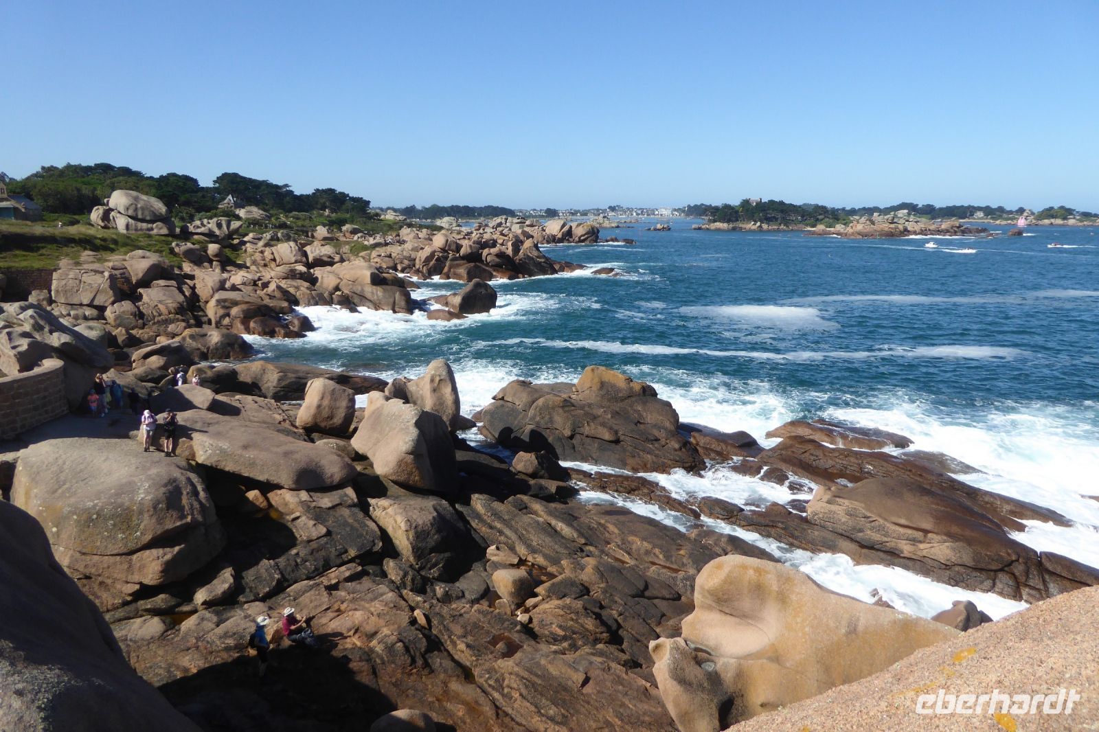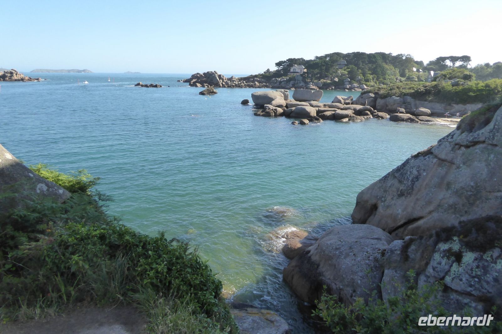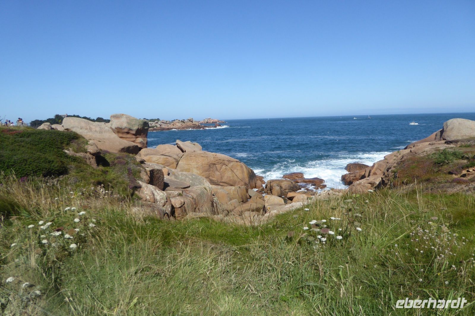 Wanderung auf dem Zöllnerpfad entlang der rosa Granitküste und Baden im Meer in der Bucht von Trestraou
