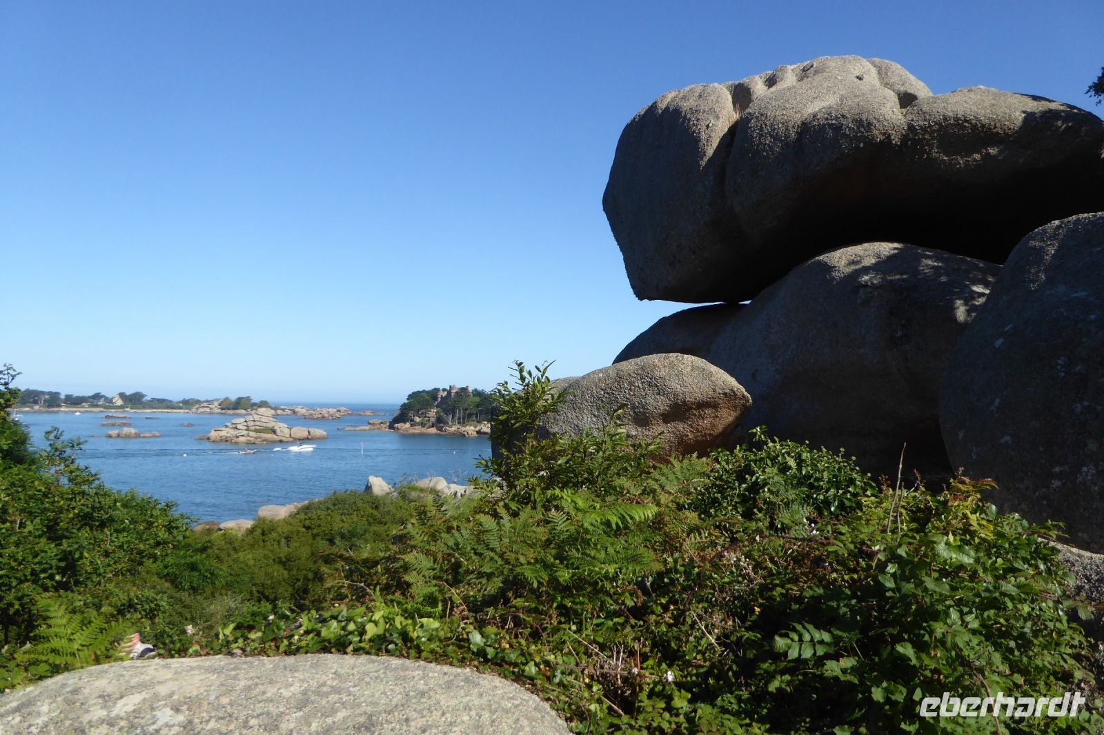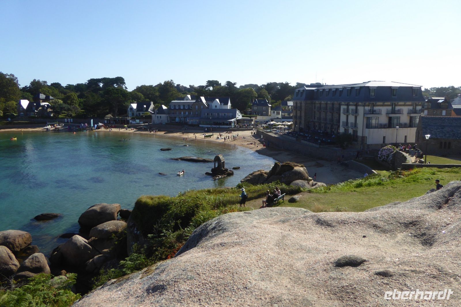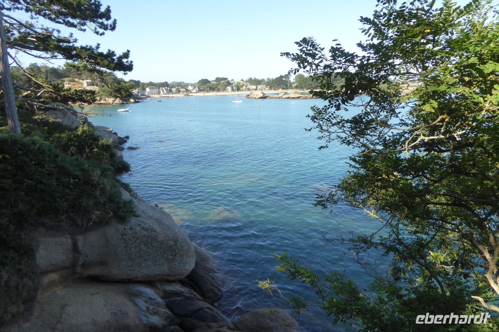Wanderung auf dem Zöllnerpfad entlang der rosa Granitküste und Baden im Meer in der Bucht von Trestraou