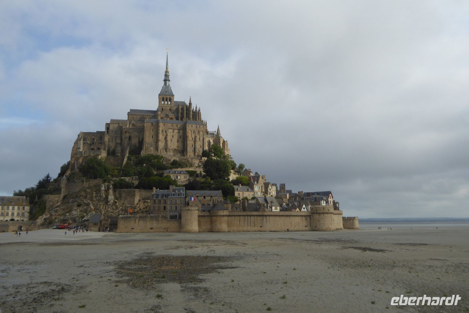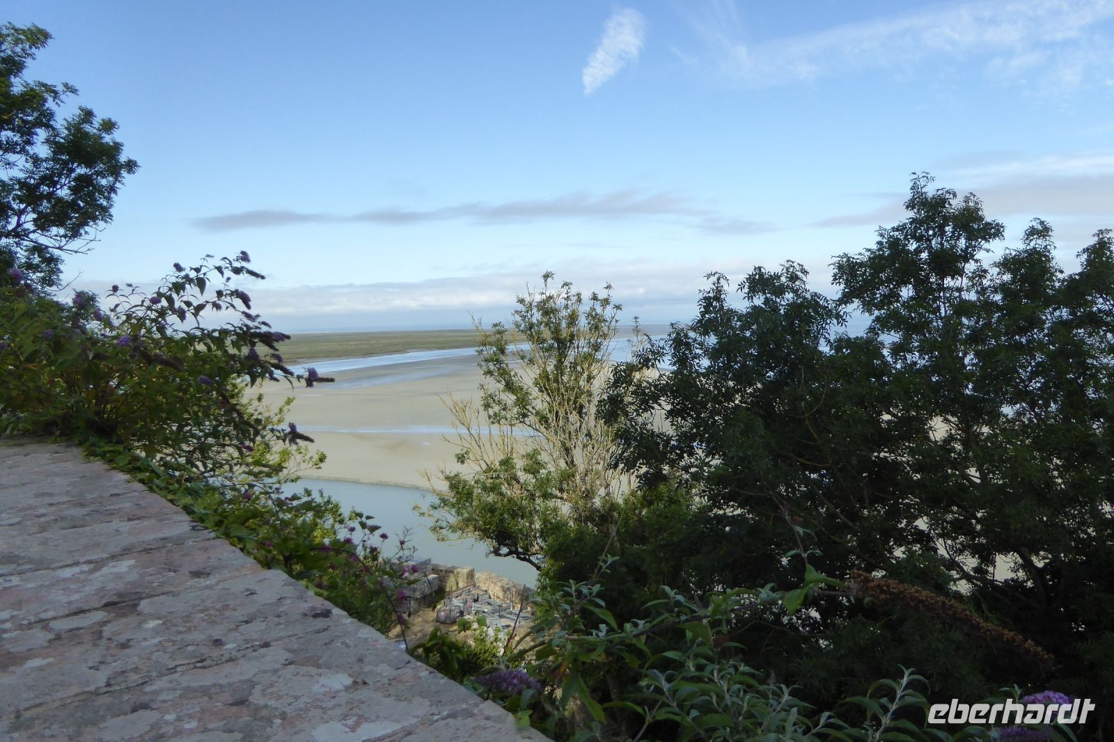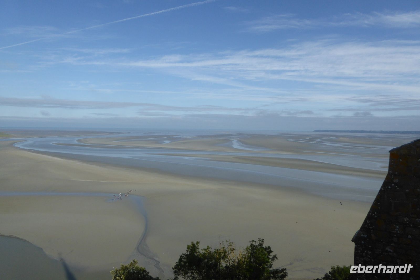 Schon früh am nächsten Morgen machten wir uns auf zum Mont St. Michel. Wir erreichten den Berg noch vor dem großen Ansturm. Seit 1300 Jahren zieht der Inselberg die Menschen in seinen Bann. Jedes Jahr wird der Berg, der seit 1979 UNESCO Weltkulturerbe ist, von drei Millionen Touristen und Pilgern besucht. Viele Stufen galt es zu bewältigen, bevor wir ganz oben den lichtdurchflossenen Chor der gotischen Kathedrale sehen konnten. Der Kreuzgang begegnete uns in meditativer Stille. Die unteren Geschosse erinnerten an die langen Jahre nach der französischen Revolution, als die alte Klosteranlage ein gefürchtetes Staatsgefängnis war. in der Mitte des 19. Jahrhunderts hat sich Victor Hugo für die Restaurierung des ursprünglichen Ensembles stark gemacht. Bei einem Rundgang über die Festungsmauern konnten wir die Wattwanderer beobachten und sahen, einer Ameisenstraße gleich, die Besuchermassen über die neue Brücke den Berg erstürmen.