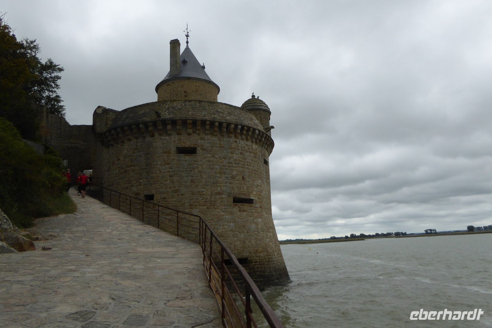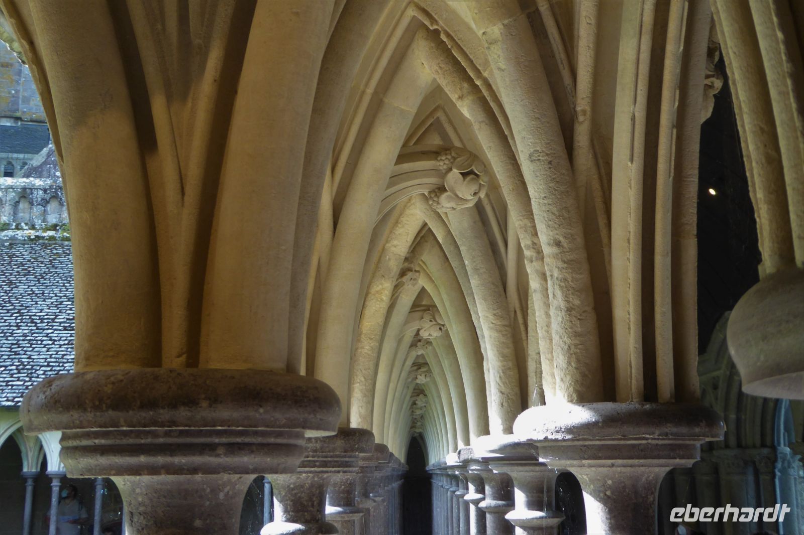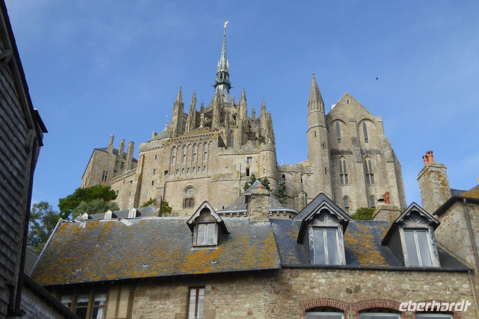 Schon früh am nächsten Morgen machten wir uns auf zum Mont St. Michel. Wir erreichten den Berg noch vor dem großen Ansturm. Seit 1300 Jahren zieht der Inselberg die Menschen in seinen Bann. Jedes Jahr wird der Berg, der seit 1979 UNESCO Weltkulturerbe ist, von drei Millionen Touristen und Pilgern besucht. Viele Stufen galt es zu bewältigen, bevor wir ganz oben den lichtdurchflossenen Chor der gotischen Kathedrale sehen konnten. Der Kreuzgang begegnete uns in meditativer Stille. Die unteren Geschosse erinnerten an die langen Jahre nach der französischen Revolution, als die alte Klosteranlage ein gefürchtetes Staatsgefängnis war. in der Mitte des 19. Jahrhunderts hat sich Victor Hugo für die Restaurierung des ursprünglichen Ensembles stark gemacht. Bei einem Rundgang über die Festungsmauern konnten wir die Wattwanderer beobachten und sahen, einer Ameisenstraße gleich, die Besuchermassen über die neue Brücke den Berg erstürmen.