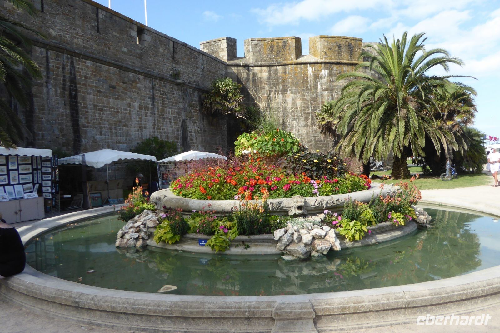Kurze Zeit später waren wir wieder in St. Malò und hatten genügend Zeit die kleine Corsarenstadt auf eigene Faust zu erkunden, lag doch unser Hotel genau in der Mitte der von einer festen Mauer umgebenen Altstadt. Zum Abendessen waren wir im Hotel Châteaubriand verabredet. Das Hotel besticht durch seinen Charme des kaiserzeitlichen alten Frankreichs. Ein gewaltiger Kronleuchter erhellt den Speisesaal und ein kleines Feuerwerk überraschte uns zum Nachtisch.