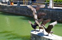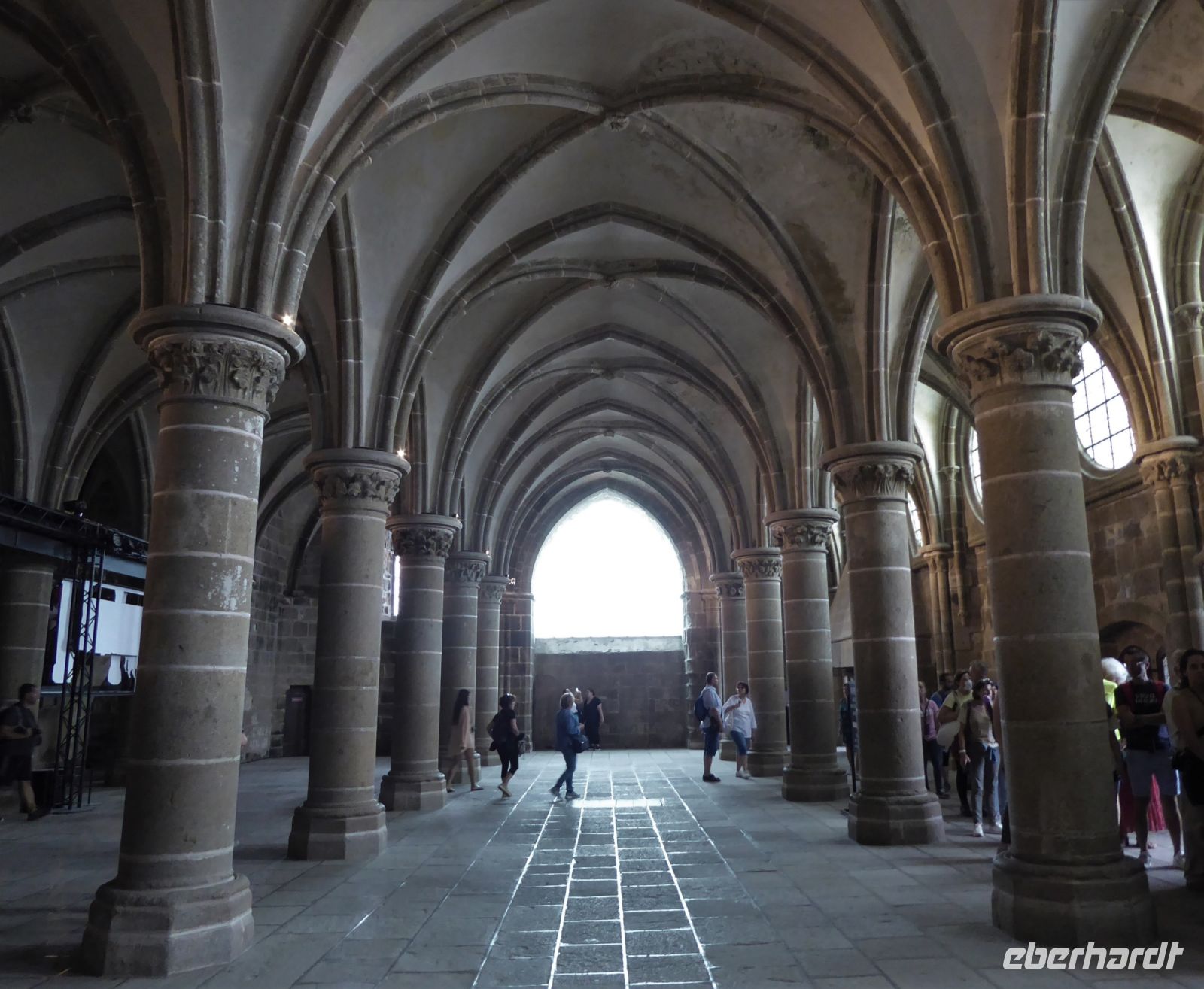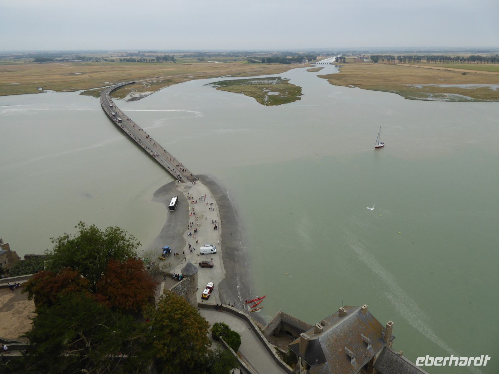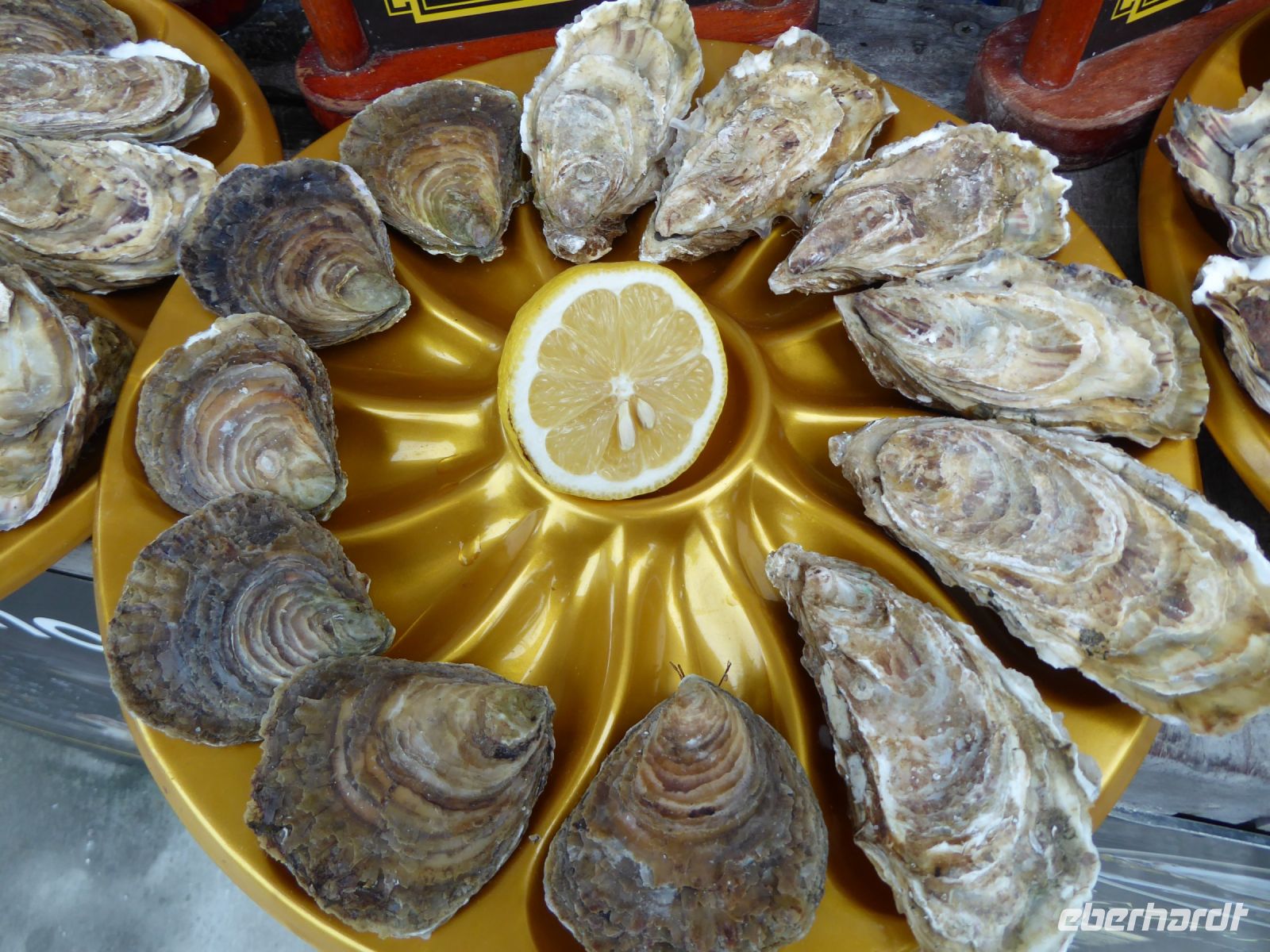 Schon früh am nächsten Morgen machten wir uns auf den berühmten Mont Saint Michel zu besuchen. Nach einer guten Stunde Fahrt erreichten wir den Berg noch vor dem großen Besucheransturm. Seit 1300 Jahren zieht der Inselberg die Menschen in seinen Bann. Jedes Jahr wird der Berg, der seit 1979 UNESCO Weltkulturerbe ist, von drei Millionen Touristen und Pilgern besucht. Bei unserer Ankunft war der Berg tatsächlich noch ganz vom Meerwasser umspült. Viele Jahrzehnte lang wurde die Klosteranlage als gefürchtetes Staatsgefängnis genutzt, bis sich im neunzehnten Jahrhundert Victor Hugo für die Schließung des Gefängnisses einsetzte. Heute ist der Klosterberg das touristische Highlight der Normandie. 286 steinerne Stufen gilt es nach oben zu steigen, um von der Plattform vor der Kirche St. Michel einen grandiosen Blick über das Wattenmeer und die vom Fluss Couesnon in die Regionen Normandie und Bretagne geteilte Landschaft zu werfen. Ausgestattet mit Audioguides wurden wir über die spannende Geschichte des Bergs und seiner Bewohner informiert. Nach und nach füllten sich die Gassen mit einer Flut von Touristen, die sich den Mont St. Michel als Ziel für ihren Sonntagsausflug auserkoren hatten. Nach der Mittagspause verließen wir gemeinsam den heiligen Berg und ließen uns von den bequemen Shuttlebussen zurück zum Parkplatz fahren. Über die Salzwiesen fuhren wir nach Cancale, einem kleinen Ort an der Smaragdküste, der vor allem bei Austernliebhabern einen Namen hat. Nirgends sind die Austern frischer, nirgends bekommt man bessere Austern als in Cancale. Seit dem dreizehnten Jahrhundert werden sie hier gezüchtet. Marktfrisch wird überwiegend die pazifische Felsenauster angeboten und mit etwas Zitrone direkt am Strand verzehrt. Auch die seltene europäische Auster, die Huître plat, die bei Feinschmeckern wegen ihres leicht nussigen Geschmacks gerühmt wird, wird hier auf dem Austernmarkt angeboten. Ausgestattet mit Flaschen gekühlten Weißweins, einem leckeren Chablis, gesellten wir uns zu den anderen Gourmets und schlürften genüsslich direkt am Meer die frischen Austern. Zurück in St. Malò bummelten wir durch die von dicken Mauern umgebene Korsarenstadt. Wir staunten über den perfekten Wiederaufbau der im August 1944 zu 85 % durch anglo-amerikanische Bombardierungen zerstörten Stadt, in der sich die deutschen Besatzer verschanzt hatten und sich weigerten, die Stadt aufzugeben und zu kapitulieren. Heute tummeln sich Touristen in den Gassen, aus allen Lokalen tönt Musik und Lachen- längst ist St. Malò zu einer Hochburg des internationalen Tourismus geworden. Erst spät in der Nacht wird es ruhig und die Wellen des Meeres branden sanft an die hölzernen Wellenbrecher.