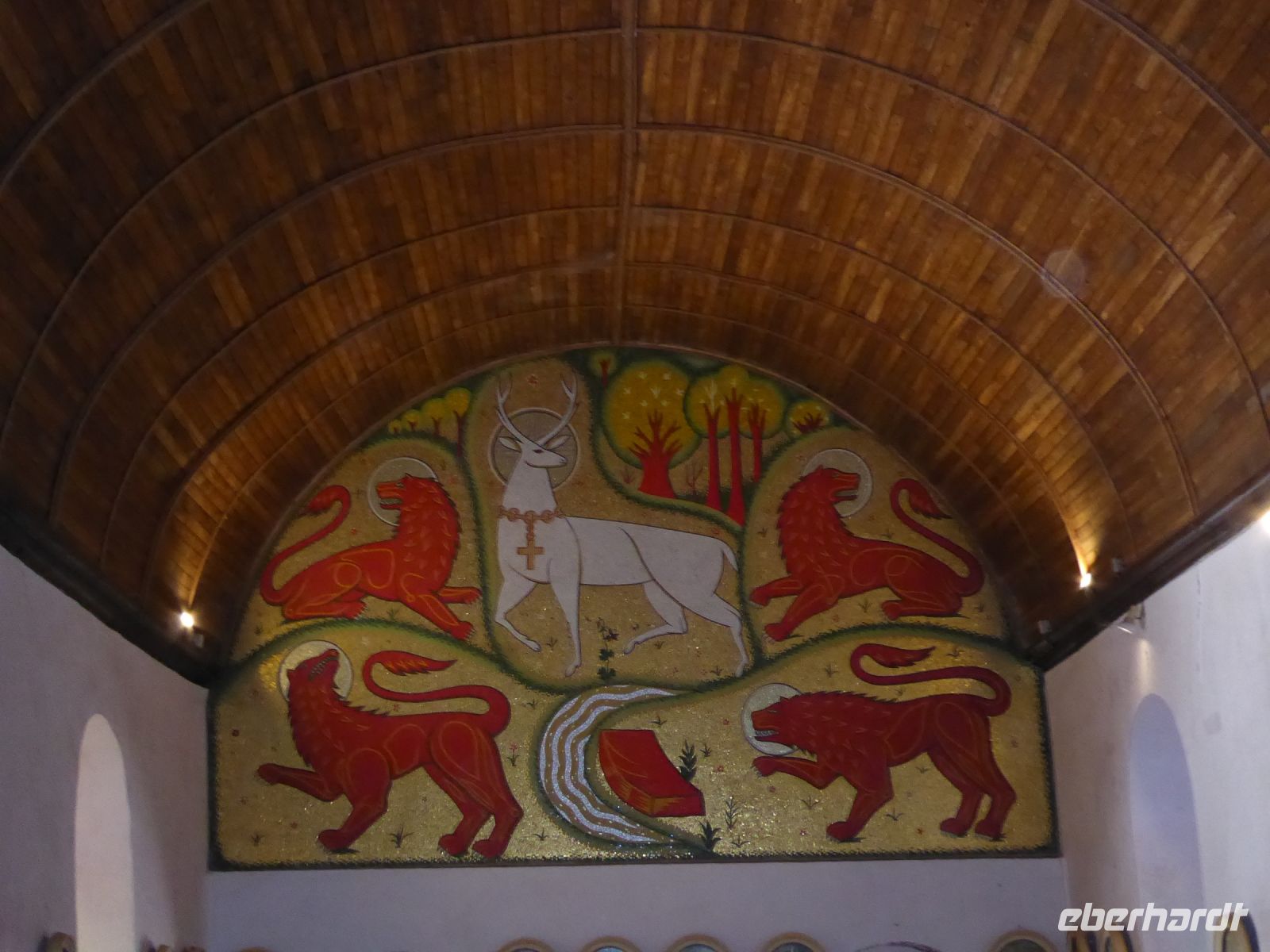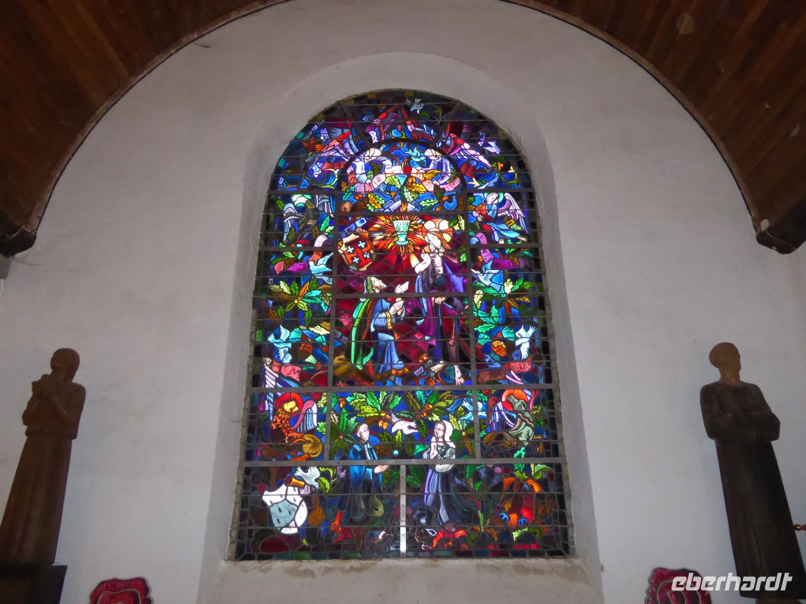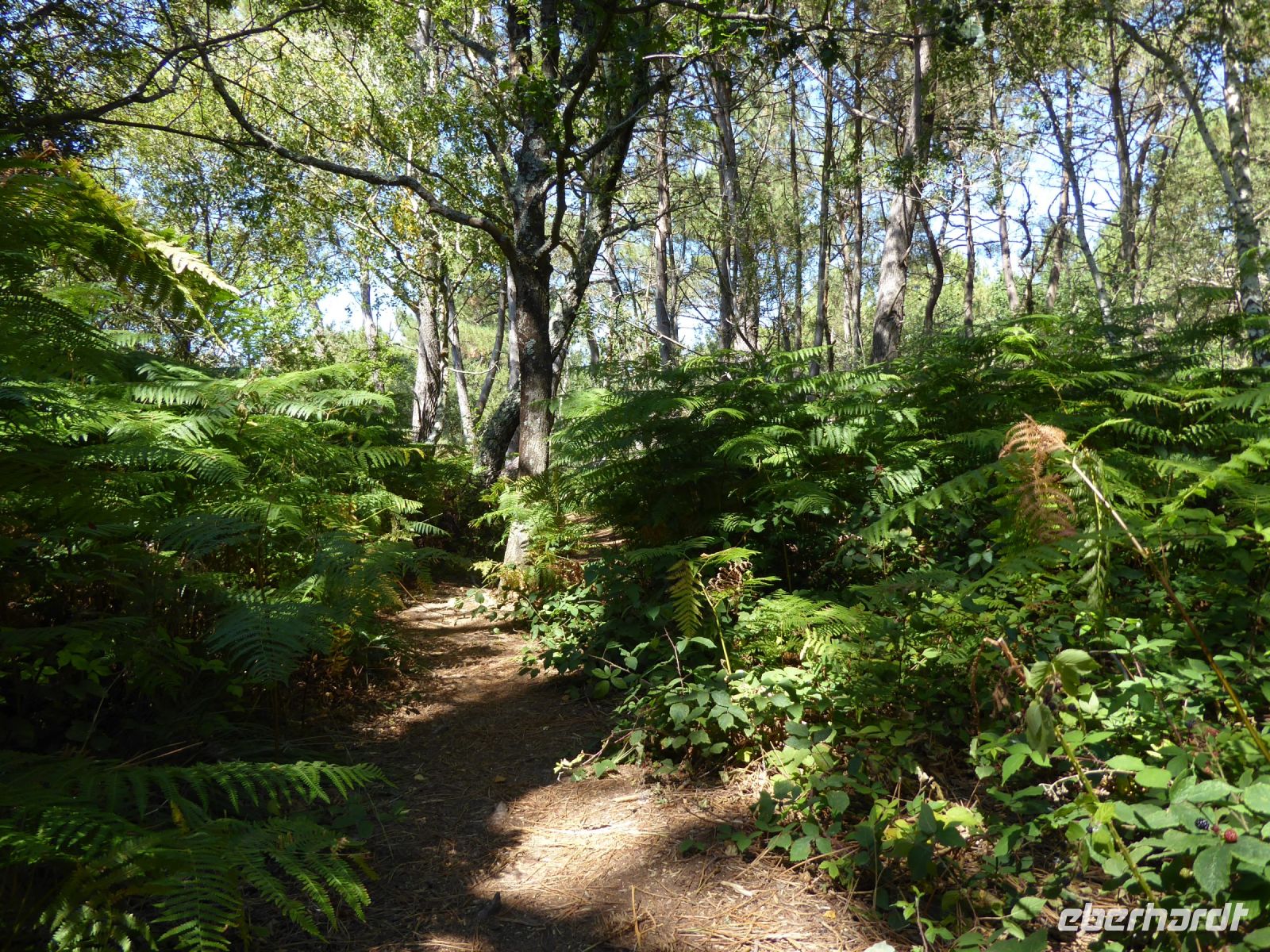 Wieder schien die Sonne vom strahlend blauen Himmel, als uns unsere Stadtführerin Kristin, eine waschechte Bretonin am Hotel abholte. Vorbei am beeindruckenden Rathaus von Vannes streiften wir durch die Gassen der Stadt zur Kathedrale. Die Kathedrale ist mit 110 Metern Länge eine der längsten gotischen Kathedralen in der Bretagne, die in ihrem fast 1000-jährigen Bestehen viele Veränderungen erfahren hat. In ihrem Inneren befindet sich das Grabmal des 1419 hier verstorbenen Dominikanermönch und Wanderprediger aus Valencia, Vincent Ferrer. Er begeisterte die Menschen seiner Zeit durch seine persönliche Ausstrahlung und einfache Lebensführung sowie die Ankündigung eines bevorstehenden Weltunterganges. Vor sechs Jahrhunderten Heilig gesprochen, ist er ein idealer Reisebegleiter: zuständig für reiche Ernte und guten Wein, der bei Fieber, Kopfschmerzen, Besessenheit und Gefahren aller Art angerufen wird. Über die Place des Lices, dem ehemaligen Turnierplatz, erreichten wir das untere Stadttor. Wir spazierten vorbei am Château de l´ Hermine und dem alten Waschhaus am Flüsschen Marle. Wir bewunderten die schönen französischen Gartenanlagen mit ihrer barocken Blütenpracht vor dem Schloss und entlang der mittelalterlichen Wehrmauer. Die kurzweilige Führung mit Kristin endete am Monoprix, wo wir uns mit Proviant und Getränken für unsere erste Wanderung am Nachmittag versorgten. Unser Bus brachte uns danach in das waldreiche Binnenland der Bretagne: Der Wald von Paimpont ist der Überrest eines riesigen, zusammenhängenden Waldgebietes, das einst das gesamte Landesinnere der Halbinsel bedeckte. Der Legendenname dieses Waldes lautet Brocéliande und soll der Schauplatz vieler Begebenheiten aus der Sagenwelt von König Artus und seiner Tafelrunde sein. Unser erster Spaziergang führte uns an die magische Quelle von Barenton, die der Trockenheit der letzten Wochen geschuldet, nur mäßig sprudelte. Und weder Merlin noch Viviane kreuzten unseren von Heidekraut und gelbem Stachelginster gesäumten Weg. Im lichten Wald machten wir eine kleine Pause, um uns miteinander bekannt zu machen. Gespannt auf die kommenden Tage setzten wir unseren Spaziergang fort. Nach einer Mittagspause am überdachten Marktplatz der kleinen Gemeinde Tréhorenteuc und der Besichtigung der Dorfkirche, machten wir uns auf ins Tal ohne Wiederkehr. Der goldene Baum, ein Kunstobjekt des französischen Bildhauers François Davin aus dem Jahre 1991, war von mehreren Schulklassen umlagert und so wanderten wir gleich weiter durch das Tal und hinauf auf das Hochplateau, von dem wir einen wunderschönen Ausblick über das unberührt scheinende Waldgebiet genossen. Da wir unsere erste Wanderung den außergewöhnlich hohen Temperaturen angepasst hatten, nutzten wir die gewonnene Zeit und stattete noch dem wenige Kilometer entfernt an einem See gelegenen Kloster von Paimpont einen kurzen Besuch ab.