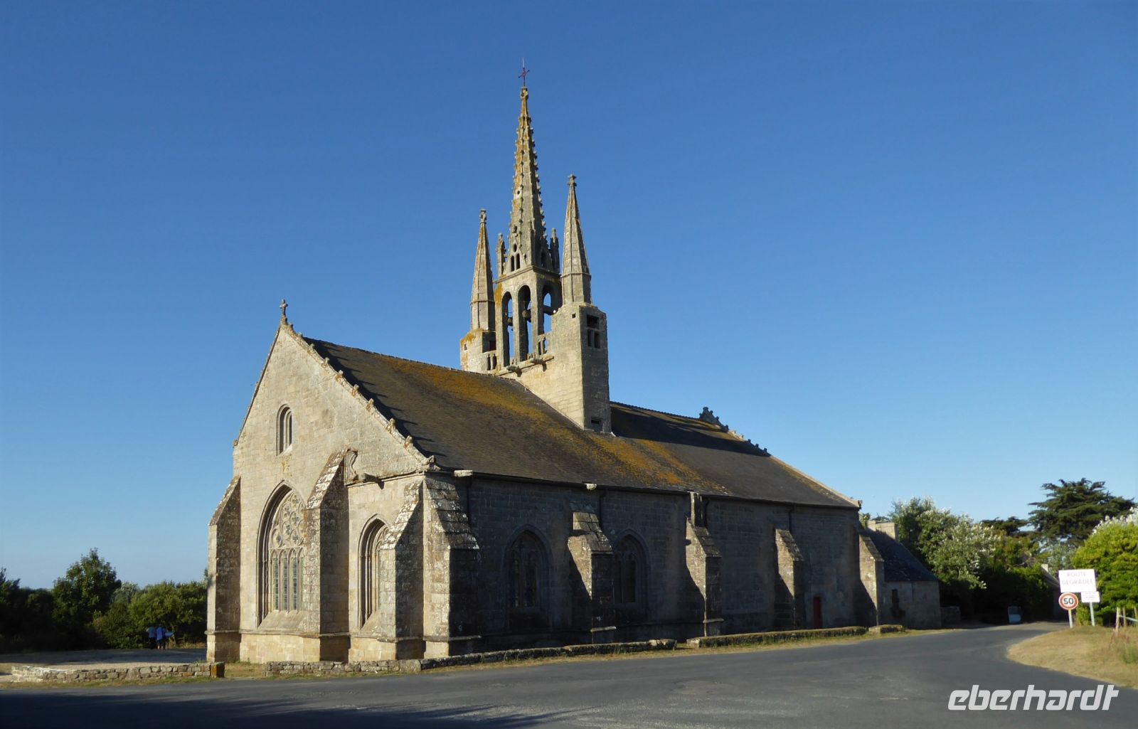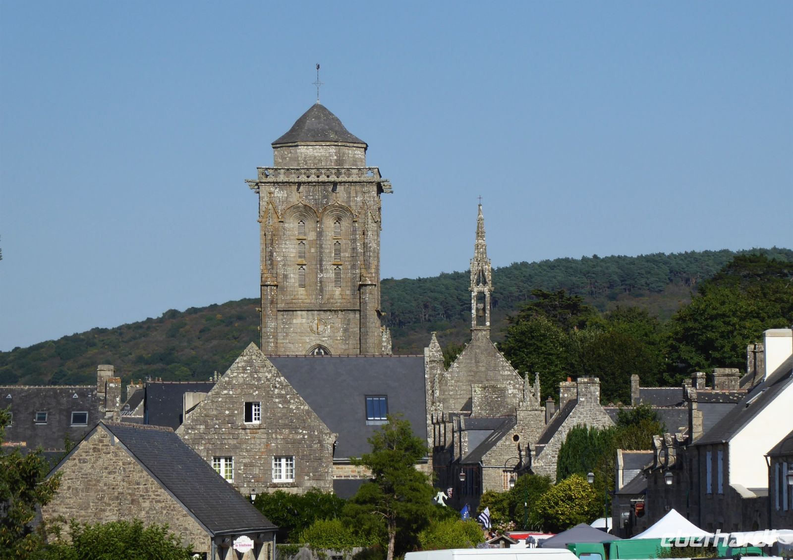 Die heutige Wettervorhersage versprach gemäßigte Temperaturen mit maximal 27°. Ideale Voraussetzungen für unsere Klippenwanderung zur Pointe du Raz. Doch schon die Anfahrt gestaltete sich schwierig und unser Fahrer Alexander verweigerte die Weiterfahrt zum Parkplatz neben der kleinen Kirche ´Nôtre Dame de Bonsecours`. Er erwartete uns am Ende unserer anstrengenden Tour in der Baie des Tréspassés. Diese Küstenwanderung war für viele unserer Teilnehmer eine echte Herausforderung. Zwar wehte beständig ein laues Lüftchen, doch die Temperaturen machten uns allen zu schaffen und so spaltete sich unsere Gruppe in zwei Teile: ein Drittel der Gruppe entschied sich, den Weg Richtung Lescoff abzukürzen und den Nachmittag am Freizeitzentrum der Pointe du Raz zuzubringen. Der Rest der Gruppe wanderte weiter über die Felsnase der Pointe du Raz bis zur Baie des Tréspassés, wo wir mit einem kurzen aber sehr erfrischenden Bad in den türkisfarbenen, fast karibischen anrollenden Wellen des Meeres, belohnt wurden. Mit knapp 16 Kilometern Länge war dies unsere längste Wanderung. Mit vielen Pausen und Fotostopps meisterten wir den Weg im beständigen auf- und ab der Küstenlinie in gut fünfeinhalb Stunden. Am frühen Nachmittag war unsere Gruppe dann wieder vereint und wir fuhren weiter nach Locronan, dem Ort des heiligen Ronan. Hier erreichte die Hitze mit 38° ihren Höhepunkt. Die Sonne stach vom Himmel, als wir tapfer Richtung Kirche trabten. Der Ort ist mit dem Label „besonders malerischer Ort der Bretagne“ ausgezeichnet und man hat den Eindruck, hier sei die Zeit stehen geblieben. Die Stadt diente daher schon oft als Filmkulisse. Mit ihren Steinhäusern aus bretonischem Granit wirkt sie eher britisch, als französisch, was übrigens Roman Polanski dazu veranlasste, den Film ´Tess´, mit der gerade mal achtzehnjährigen Nastassja Kinski in der Hauptrolle, nicht in England sondern kostengünstiger hier in der Bretagne zu drehen.