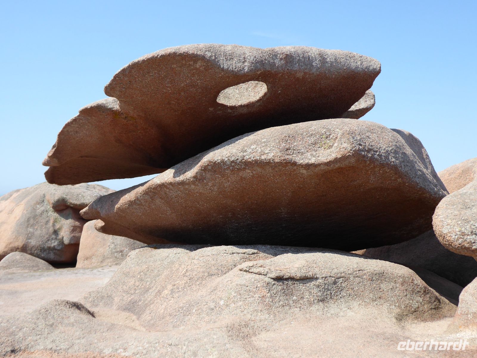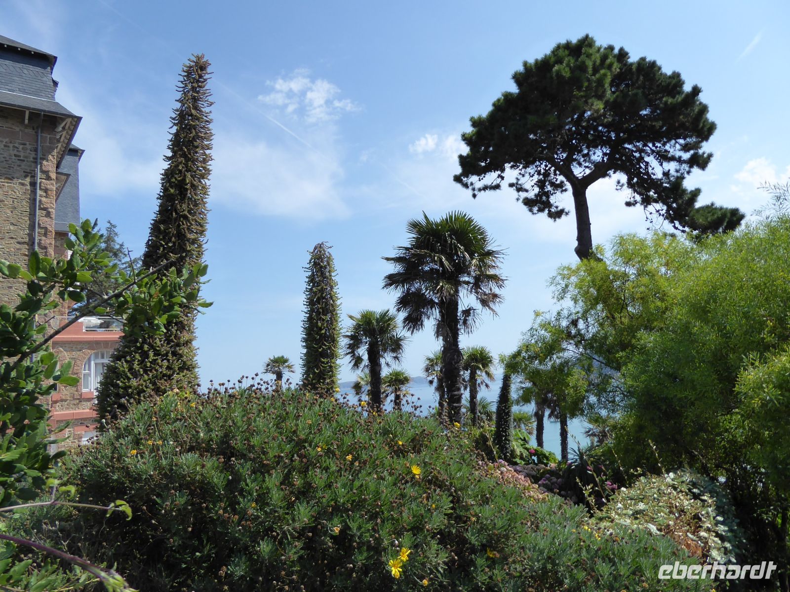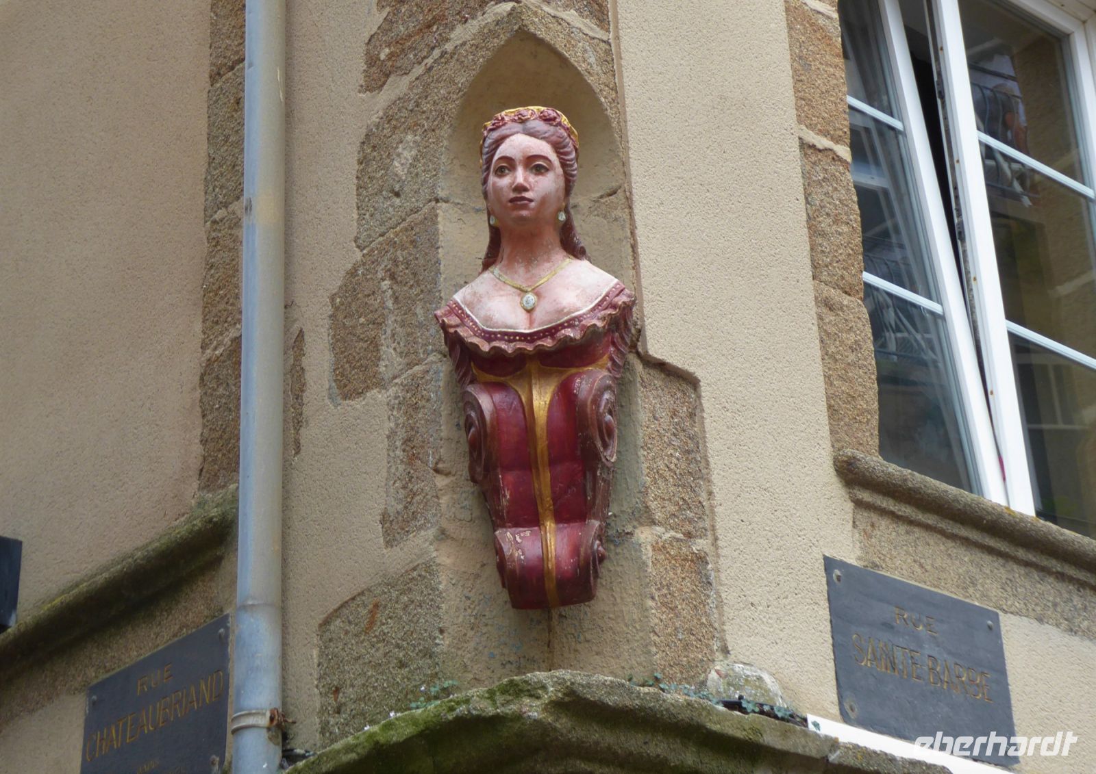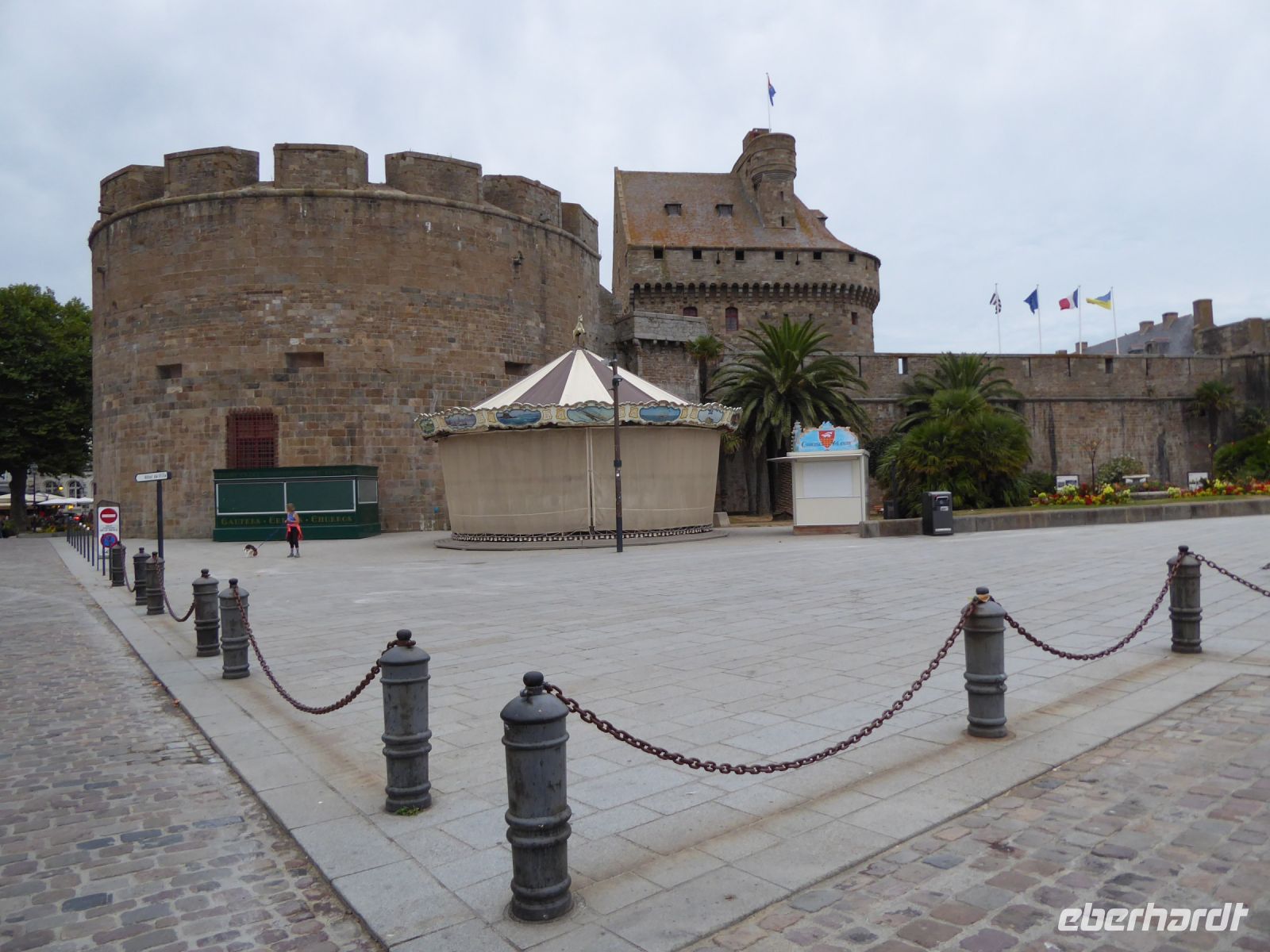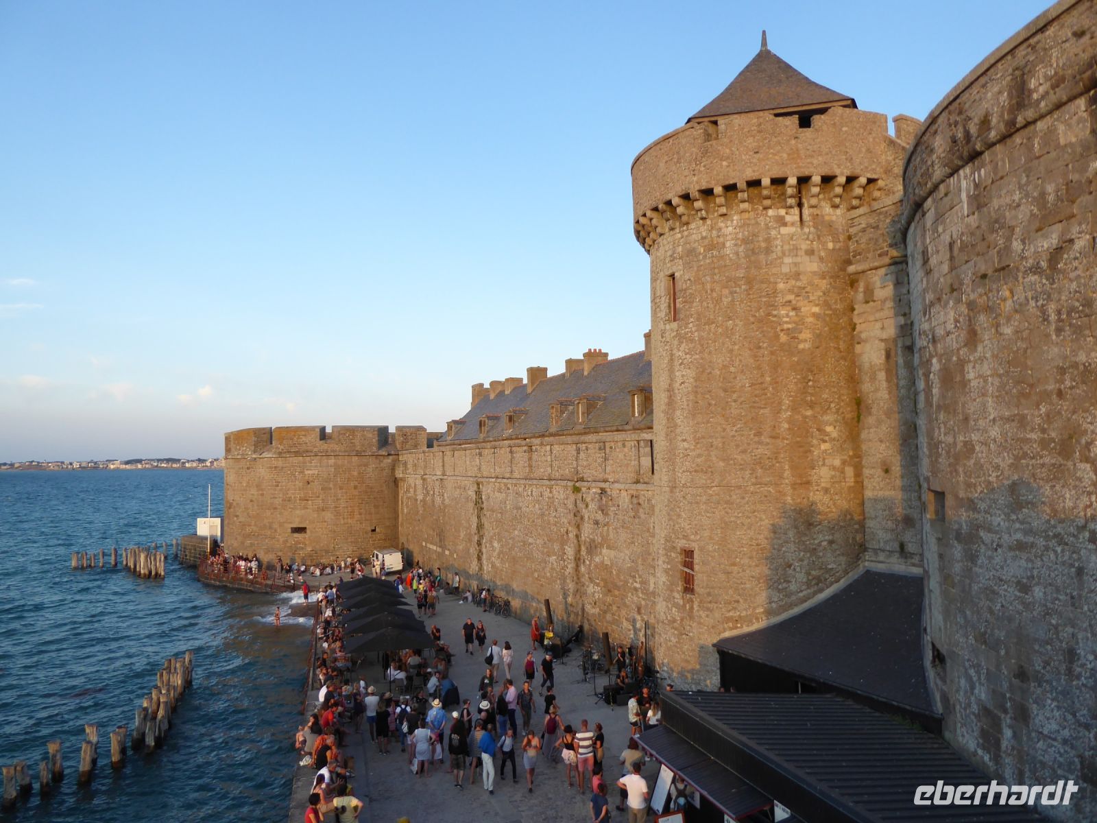 Die rosa Granitküste gehört zu den schönsten Küstenabschnitten der Bretagne. Bereits gestern konnten wir uns bei unserer kleinen Wanderung davon überzeugen. Heute, bei wunderschönem Wetter und angenehmen Temperaturen stand der berühmte Zöllnerpfad auf unserem Programm, den wir von der Wassermühle am Eingang des Traouiero Tales in Tournay, einem Vorort von Trégastel, bis zum herrlichen Badestrand von Trestraou gehen wollten. Begeisterten Krimilesern ist auch diese Gegend aus den Romanen von Jean-Luc Bannalec bekannt, der im Tal von Traouiero seinen Kommissar Dupin in einem Mordfall ermitteln lässt. Leider war uns der Weg entlang des Strandes durch das Meer blockiert, und selbst auf den zweiten Anlauf trauten sich nicht alle Mitwanderer, wie eine Bergziege auf einem schmalen Mäuerchen entlang zu tänzeln, um auf die andere Seite der Bucht zu gelangen. So mussten wir einen kleinen Umweg in Kauf nehmen. Am Ende des Freizeithafens von Ploumanach beginnt der romantische Teil unserer Wanderung durch die labyrinthischen Gänge des Zöllnerpfades. Immer wieder öffnen sich atemberaubende Ausblicke auf das Meer und die vorgelagerten Inseln. Vor 300 Millionen Jahren sind die Steine an der Küste entstanden, die, wie von Riesenhand geworfen, bizarre Formationen bilden. Jeder sieht in diesen Steinhaufen andere Bilder: die Gesichter berühmter Schauspieler, prähistorische Tiere oder einfach ein Stapel Pfannkuchen. In der Bucht von Ploumanach steht mitten im Wasser ein kleines Oratorium mit der Statue des Heiligen Guirec. In früheren Zeiten glaubten heiratswilligen Mädchen fest daran, dass der Heilige, so man ihm eine Nadel in die Nase gepiekt hatte, einen passenden Ehemann bescheren möge. Kurze Zeit später erreichten wir den Leuchtturm von Men Ruz, der seit 75 Jahren an der felsigen Küste den Schiffen den rechten Weg weist. Nach der Mittagspause nahmen wir die letzten drei Kilometer unsere Tour in Angriff und erreichten schon wenig später den weißen Sandstrand von Trestraou. Mit erfreulich wenigen Touristen teilten wir das kühle Meer und den breiten Strand. Zwei Stunden später sammelte uns der Bus auf und es galt wieder eine längere Busfahrt zu bewältigen. Die Hafenstadt und Seefeste St. Malo war unser nächstes Ziel, wo wir die folgenden beiden Nächte im Hotel Univers verbrachten.
