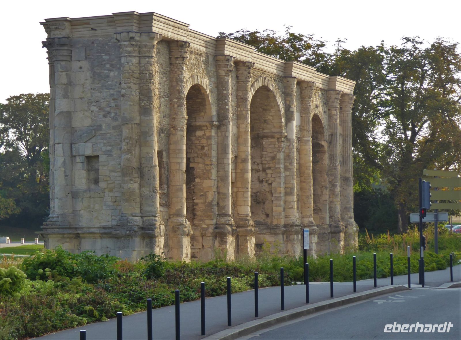 Nach einem für französische Verhältnisse sehr üppigen Frühstück, das keine Wünsche offen ließ, verabschiedeten wir uns noch von unserer individuell angereisten Teilnehmerin, bestiegen unseren Bus und nahmen die lange Heimfahrt in Angriff. Der herrliche Park gegenüber unseres Hotels strahlte schon im Morgenlicht und wir konnten noch einen Blick auf das römische Erbe der Stadt Reims werfen. Der gallorömische Ehrenbogen beeindruckte uns mit seiner Größe, 13 Meter hoch und 32 Meter breit war er Teil der antiken Stadtmauer. Heute steht er direkt an der Straße, am Rand der großzügigen Place de la République. Doch lange Zeit blieb uns nicht mehr für die Stadt, lagen doch noch über 900 Kilometer auf französischen und deutschen Autobahnen vor uns. Bereits nach drei Stunden erreichten wir die `goldene Bremm`, die Landesgrenze in Saarbrücken. In Grünstadt verließ uns unsere nächste Gästin. Bei unserer fast staufreien Fahrt durch fünf Bundesländer hieß es beständig Abschied nehmen, bevor wir am Abend pünktlich unseren Ausgangsort in Dresden erreichten.