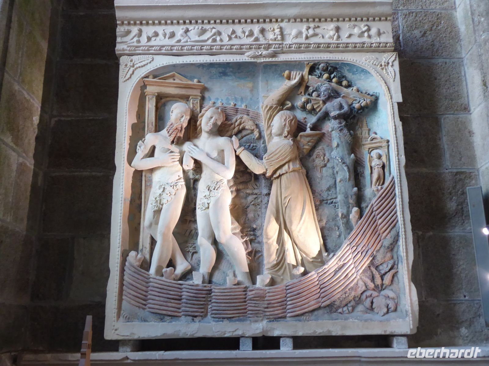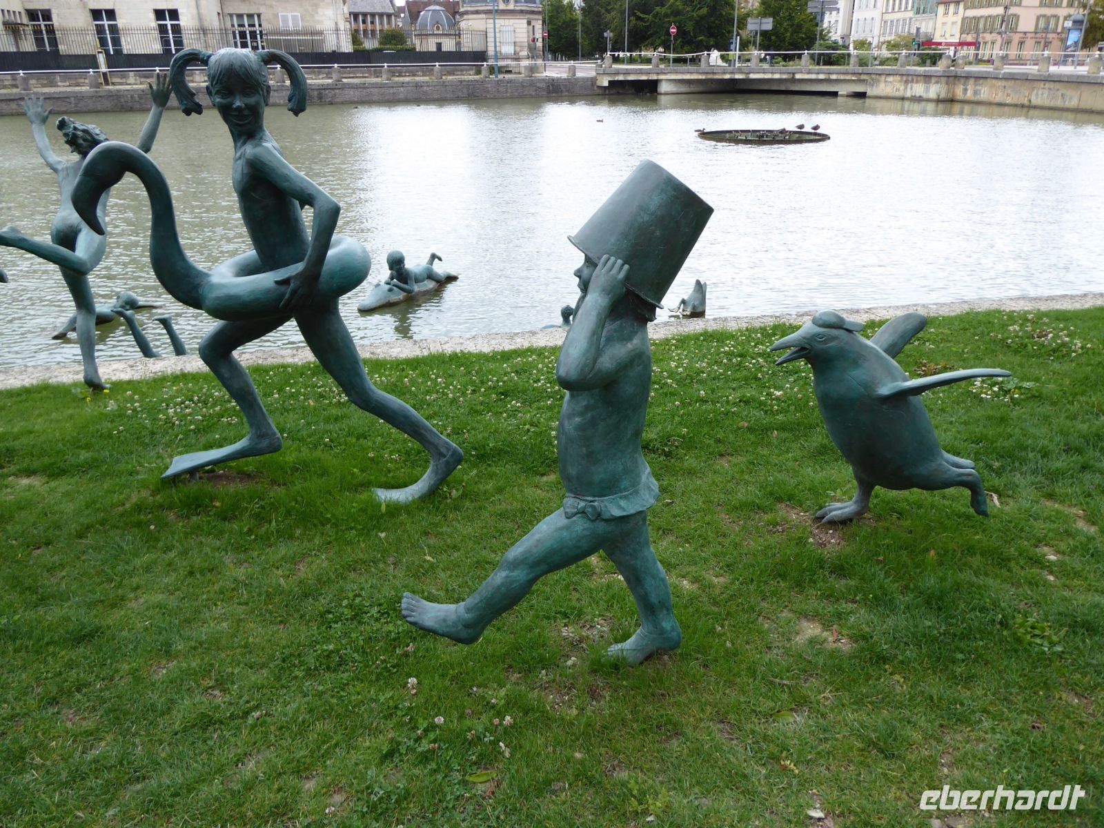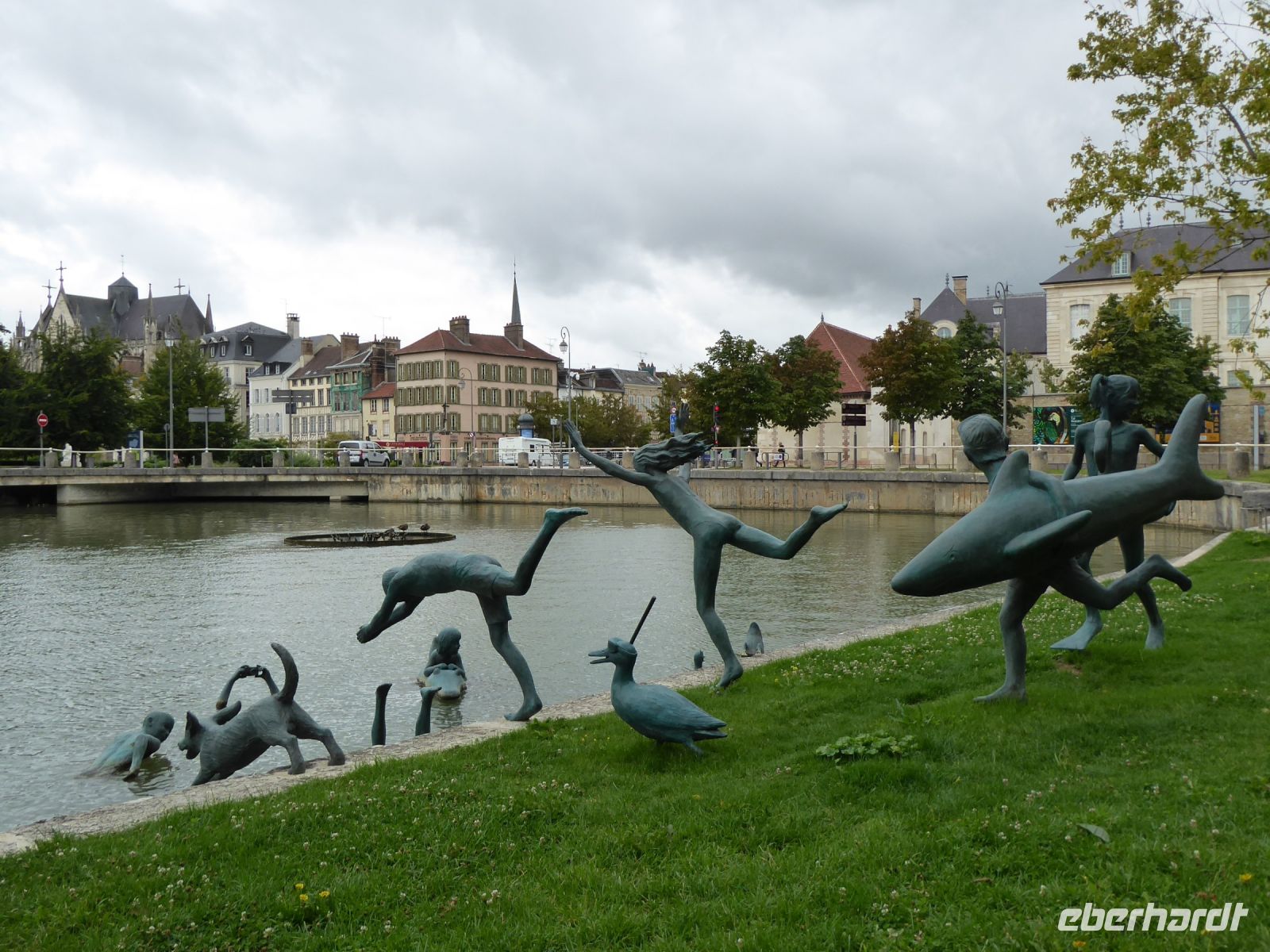 Das kleine Städtchen Troyes zeigte sich am Sonntagmorgen noch recht verschlafen. Gleich neben unserem Hotel liegt eine wunderschöne Parkanlage mit herrlichen blühenden Blumen und unterschiedlichsten Bäumen, darunter ein sogenannter Milchorangenbaum, der unsere Neugier weckte. Der Baum mit seinen sonderbaren Früchten stammt aus der Familie der Maulbeerbäume. Gemütlich bummelten wir durch die engen Gassen mit ihren schiefen Fachwerkhäusern. Die Stadt atmet noch den Geist des Mittelalters und überall stoßen wir auf die Zeugen der Geschichte. Im elften Jahrhundert wurde hier der jüdische Gelehrte Raschi geboren. Er war einer der bedeutendsten Interpreten des Talmud und der Bibel, der auch in Worms und Mainz lehrte. Neben seinem Wohnhaus in einer kleinen Gasse befindet sich die Synagoge. Thibault, der Befreier Jerusalems, schrieb hier seine Liebeslieder für Blanca von Kastilien und mit den Werken Chrétien de Troyes wird der alte keltische Mythos um die Ritter der Tafelrunde und König Artus mit christlichen Tugenden, Minne und Ritterehre gemischt zum ersten großen Publikumserfolg. Die Tempelritter zogen von hier ins Heilige Land, Gelehrte, Geldwechsler, Handwerker aller Art, Glas- und Tuchmacher brachten Reichtum in die Stadt und die Mühlen an der Seine klapperten unablässig. 1429 befreite Jeanne d´Arc die Stadt von den Engländern. Gleich neben der Kathedrale fiel uns eine Schnapsbrennerei auf: friedliche Koexistenz des Heiligen und des hochprozentigen Geistes. Die gotische Kathedrale überrascht durch ihre Asymmetrie und ihren fehlenden Figurenschmuck: aus Geldmangel im siebzehnten Jahrhundert wurde der Südturm nie vollendet und 100 Jahre später holten französische Revolutionstruppen die Heiligen von ihren Sockeln. Lediglich die wunderschönen Glasfenster haben die Jahrhunderte unbeschadet überstanden und schaffen eine ganz eigene Atmosphäre im Inneren des Kirchengebäudes. Troyes punktet zwar mit pittoresken Fachwerkhäusern und imposanten Kirchenbauten. Doch überall finden sich gepflegte Parkanlagen und selbst in und um die Seine kann man Kunstwerke internationaler Künstler entdecken, wie zum Beispiel die fröhliche Kinderschar des belgischen Künstlers Tom Frantzen, die sich zum Bad im kühlen Nass des Flusses trifft. Am Abend waren wir dann schon in der Bretagne, in Ploërmel, wo wir uns in einem top modernen Hotel ein leckeres französisches Abendessen schmecken ließen.