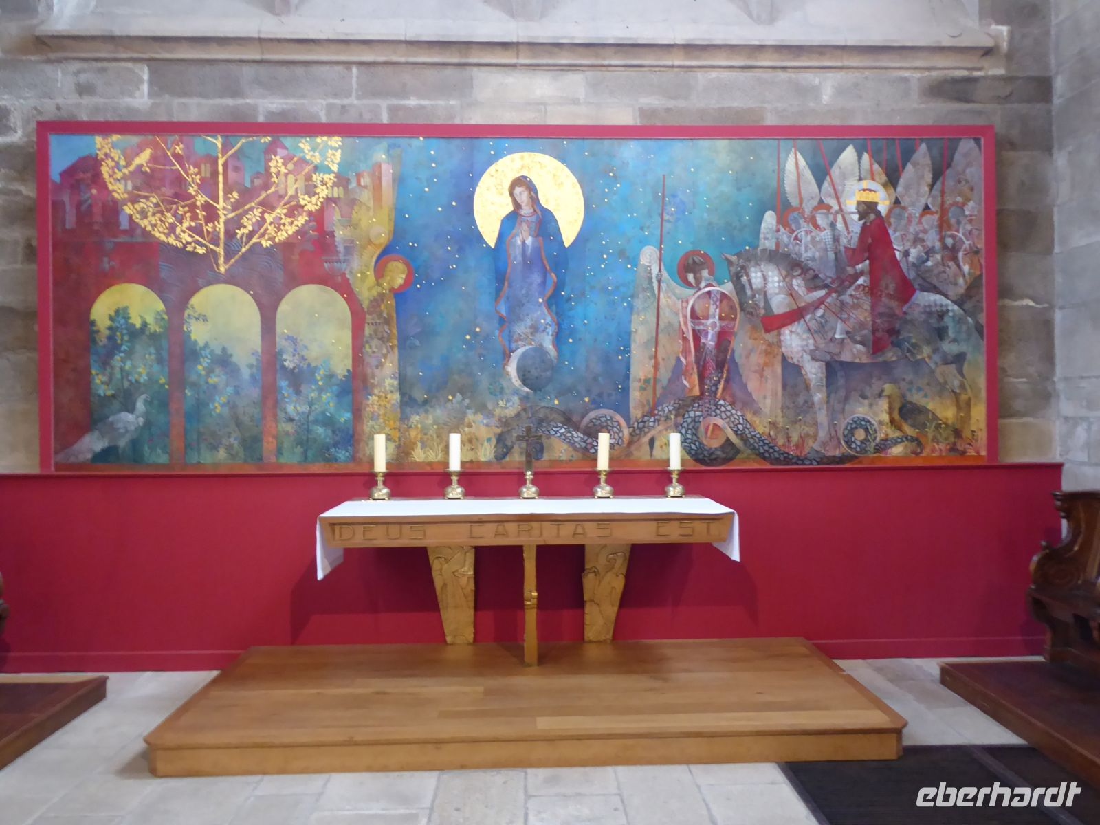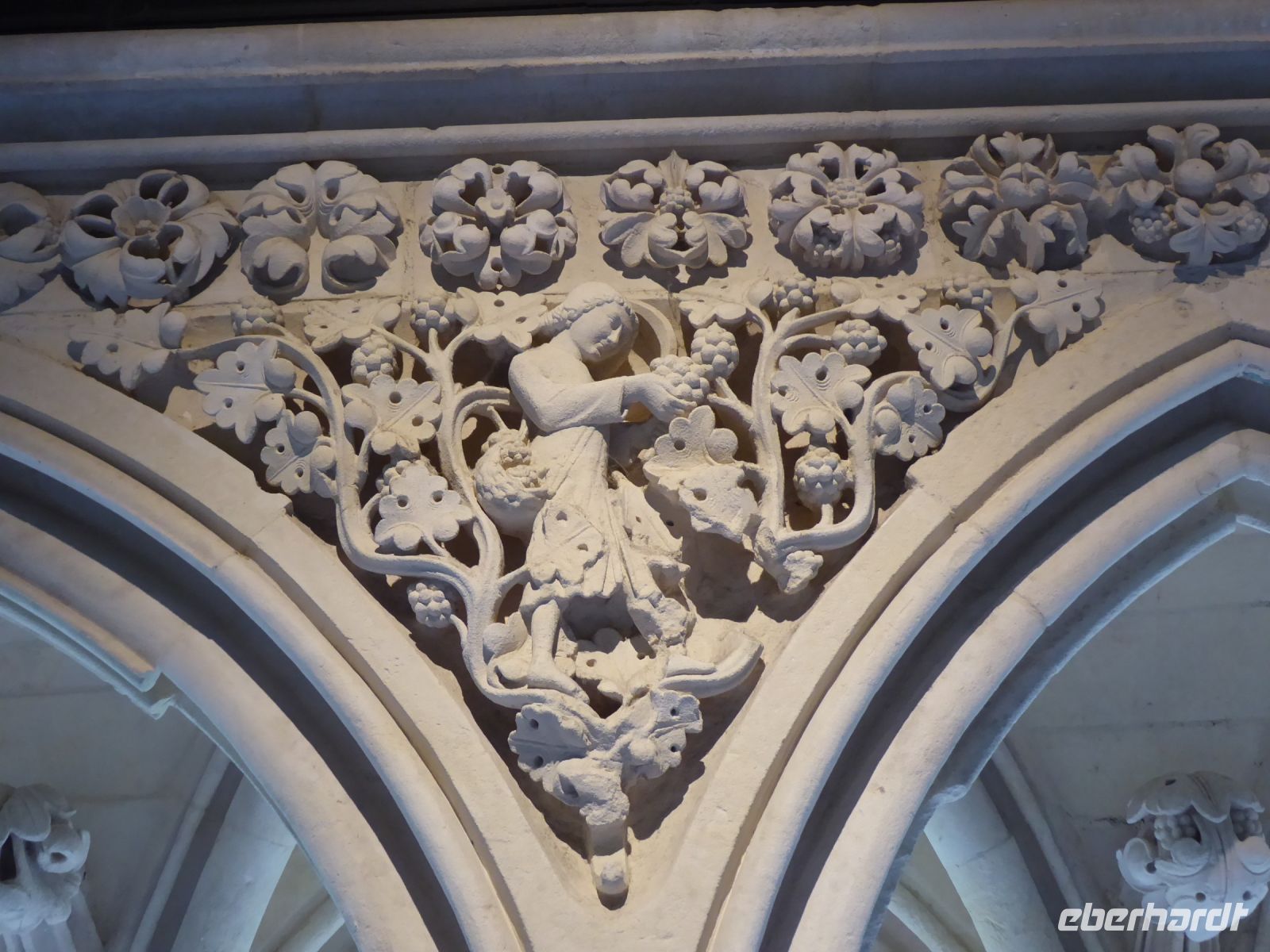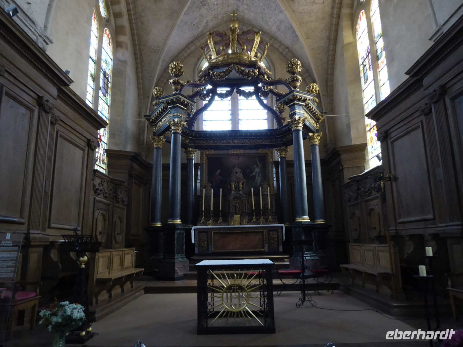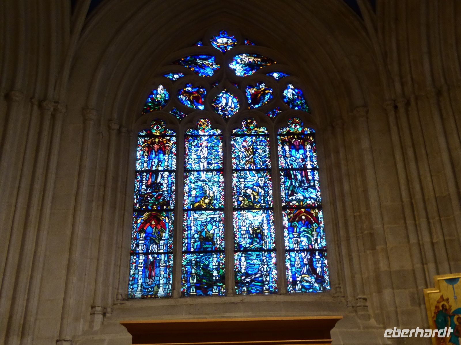 Am Nächsten Morgen hieß es 'Koffer packen' und Abschied nehmen von der Bretagne, dem Meer und der Küste. Die erste Etappe unserer Rückreise führte uns über die Straße der Gotik nach Rouen. Dort bewunderten wir die Fassade der Kathedrale von genau der Stelle, wo die Staffelei Claude Monets stand. Der große Maler des Impressionismus hat die Kathedrale in einem Bilderzyklus von dreiunddreißig Gemälden festgehalten. Seine Werke sind in den großen Museen in aller Welt vertreten. Die heutige Kathedrale Notre-Dame mit ihren beiden Türmen der Westfassade steht auf den Grundmauern eines romanischen Vorgängerbaus. Der Butterturm mit seinen 75 Metern Höhe ist eines der schönsten Beispiele für die Kunstfertigkeit der Bauleute der Hochgotik. Bis 1880 war der Turm über der Vierung mit 151 Metern Höhe das höchste Bauwerk der Welt! Die berühmten Gräber im Inneren des Bauwerks beleuchten die Meilensteine der Geschichte der Region: hier wurden Rollo, der erste Herzog der Normandie und Richard Löwenherz unter Stein gemeißelten Grabmonumenten bestattet - im Falle des Letztgenannten jedoch lediglich sein einbalsamiertes Herz in einem Bleikästchen. Durch die engen Gassen, dicht mit Fachwerkhäusern gesäumt, kamen wir erst zur Kirche St. Maclou und zum Pesthof, der heute nur noch in Schnitzereien am Gebälk der Gebäude an die großen Pestepidemien im vierzehnten und sechzehnten Jahrhundert erinnert. Ateliers, Ladenlokale, ein Café und ein Restaurant beleben heute das Ensemble. Kurze Zeit später erreichten wir den Justizpalast. An diesem größten, nicht sakralen Gebäude des ausgehenden Mittelalters, waren noch deutlich die Spuren der Häuserkämpfe am Ende des Zweiten Weltkriegs zu erkennen. Wir bestaunten noch den Uhrturm und gingen zum Alten Markt. An der Stätte, an der die junge Jeanne d´Arc 1431 den Flammentod erleiden musste, steht heute eine moderne Kirche, die ihr geweiht ist. Versorgt mit leckeren belegten Baguettes kletterten wir nach unserer Besichtigungstour wieder in den Bus und erreichten am frühen Abend die Stadt Reims in der Champagne. Unser Hotel lag direkt im Zentrum, sodass wir uns vor dem Abendessen noch zu einem gemeinsamen Spaziergang zur Kathedrale verabredeten. Die Kathedrale Notre Dame, mit ihrer Ausstattung und den mehr als 2300 Skulpturen, ist ein Meisterwerk der Hochgotik. Sie ist seit 1991 eingetragenes Weltkulturerbe der UNESCO. In dem imposanten Kirchengebäude wurden 29 französische Könige gekrönt, darunter auch Charles VII, der von Jeanne d´Arc zu seiner Krönung geführt wurde. Im Inneren der Kathedrale sind noch zahlreiche original erhaltene farbige Glasfenster aus dem dreizehnten Jahrhundert zu sehen. 1974 entwarf Marc Chagall drei Fenster für eine Kapelle des Chorraums. Im typischen transluzenten Blau Chagalls sind biblische Szenen dargestellt. Rechts und links werden diese Werke von sehr farbintensiven modernen Glasfenstern des aus Dessau stammenden Künstlers Imi Knoebel flankiert. Das heiter verhaltene Lächeln des berühmten lächelnden Engels an der Westfassade der Kathedrale begleitete uns in den Abend. Das Abendessen in der Brasserie Excelsior entsprach den gehobenen Ansprüchen an die französische Küche. Besonders lecker war das Dessert, eine Kreation aus den berühmten Bisquites roses aus Reims, die 1690 für den Sonnenkönig Ludwig XIV erfunden wurden. Getränkt in Champagner und mit frischen Beeren verziert waren sie der krönende Abschluss unseres letzten gemeinsamen Abendessens. Nicht umsonst steht auch die französische Küche mittlerweile auf der Liste des Weltkulturerbes der UNESCO!
