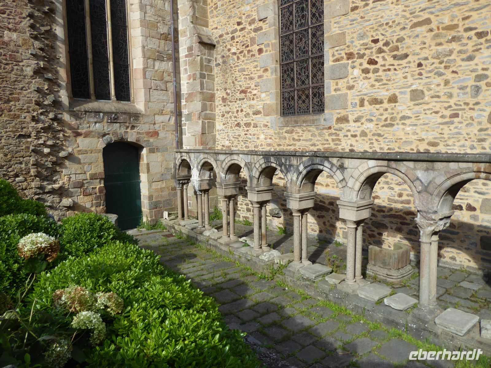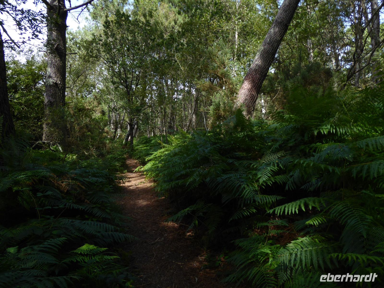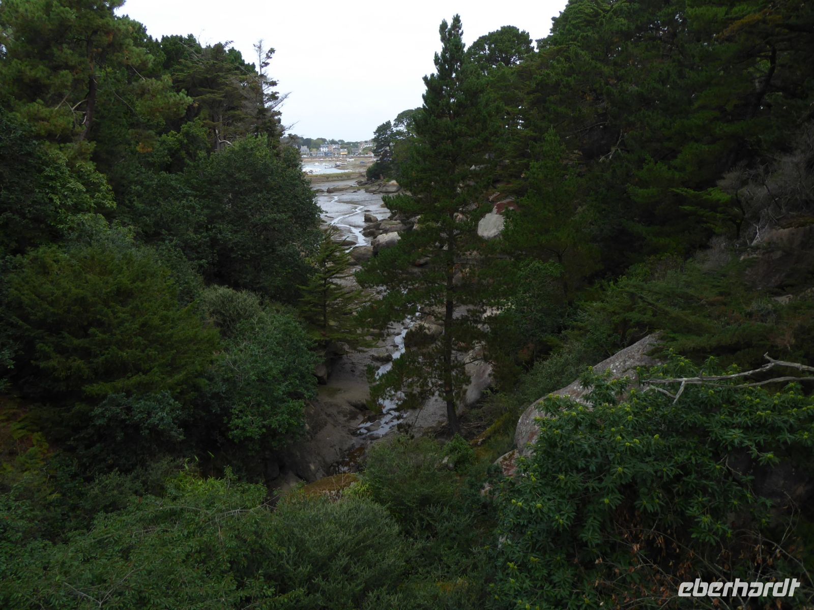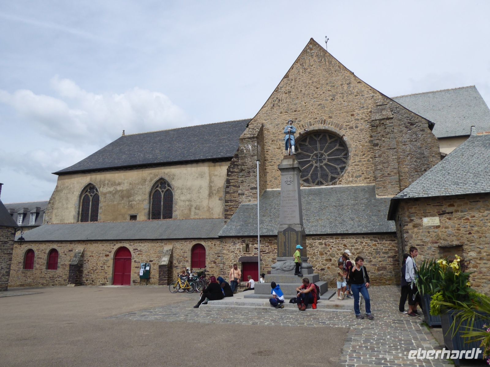 Unsere erste gemeinsame Wanderung führte uns zum sagenumwobenen Wald von Brocéliande, der noch vor ein paar Jahren lediglich als der Wald von Paimpont bekannt war. Dieser Wald ist der Legende nach der Schauplatz der Artussage und es wimmelt geradezu von mystischen Plätzen. Zwischen Weihern, Quellen, Felsen und Dickicht sind der Fantasie keine Grenzen gesetzt und allein bei der Nennung des Namens Brocéliande denkt man unweigerlich an den Zauberer Merlin, Viviane und an den Ritter Lancelot. Unsere erste kleine Runde führte uns zur Quelle von Barenton, wo wir uns gemütlich niederließen und bei einer Vorstellungsrunde unsere Wünsche und Erwartungen austauschten. Gespannt auf die kommenden Tage setzten wir unseren Weg fort und erfreuten uns an den herrlichen blühenden Sträuchern und dem lichten Wald. Die kleine Kirche in Tréhorenteuc ließ uns staunen: auf den Glasfenstern ist auf der einen Seite der Apsis das heilige Abendmahl dargestellt, auf der anderen Seite versammeln sich die Ritter der Tafelrunde um den Heiligen Gral. Wie viele Franzosen, die das schöne Wetter für eine Wanderung mit der Familie nutzten, spazierten auch wir weiter in das Tal ohne Wiederkehr, in dem Morgane le Fey ihre Liebhaber, allesamt untreue Ehemänner, gefangen hielt. Wir machten eine kurze Rast am Arbre d´Or, dem goldenen Baum, einem Kunstobjekt des französischen Bildhauers François Davin aus dem Jahre 1991 nach dem großen Waldbrand und stiegen dann hinauf aufs Hochplateau und über einen bequemen Feldweg wieder hinunter ins Tal, wo uns unser Fahrer Heiko mit dem Reisebus wieder erwartete. Schnell ging es weiter nach Vannes, wo uns am Hafenbecken bereits Christine, unsere Stadtführerin, eine waschechte Bretonin mit einem herzlichen „Degemer mat“ begrüßte. Hunderte Segelschiffe schaukelten auf den Wellen und die Innenstadt war voller gut gelaunt Urlauber. Wir spazierten entlang der Stadtmauer zum Château de l´Hermine, das seinen Namen, Hermelin, dem Wappentier des Herzogs Jean IV verdankt und gelangten zum alten Waschhaus an der Marle. Der Stadtgraben wird seit Jahrzehnten als wunderschöne Parkanlage zu Füßen des Schlosses und der Stadtmauer gestaltet. Über holpriges Kopfsteinpflaster gelangten wir durch das hintere Stadttor, Porte Prison, wieder in den alten Stadtkern mit seinen pittoresken Plätzen und Fachwerkhäusern. Die gotische Kathedrale, mit 110 m Länge eine der längsten der Bretagne, hat in ihrem fast 1000-jährigen Bestehen viele Veränderungen erfahren. Sie birgt das Grab des Heiligen Vincent Ferrer, einem Dominikanermönch: der Heilige ist für viele Handwerker sowie für eine reiche Ernte und guten Wein zuständig. Rund um die Place de Lices, an der im Mittelalter Turniere ausgetragen wurden, stehen moderne Stadtvillen neben alten Fachwerkhäusern. Die Fassaden leuchten in fröhlich bunten Farben. Viel zu schnell verging die Zeit, doch es reichte noch für eigene Entdeckungen, bevor wir uns in einer typischen Brasserie zum Abendessen trafen. Müde sanken wir in unsere Betten, steckte uns doch die lange Anreise in den Knochen, doch morgen früh wollten wir für unsere erste große Wanderung alle fit sein!