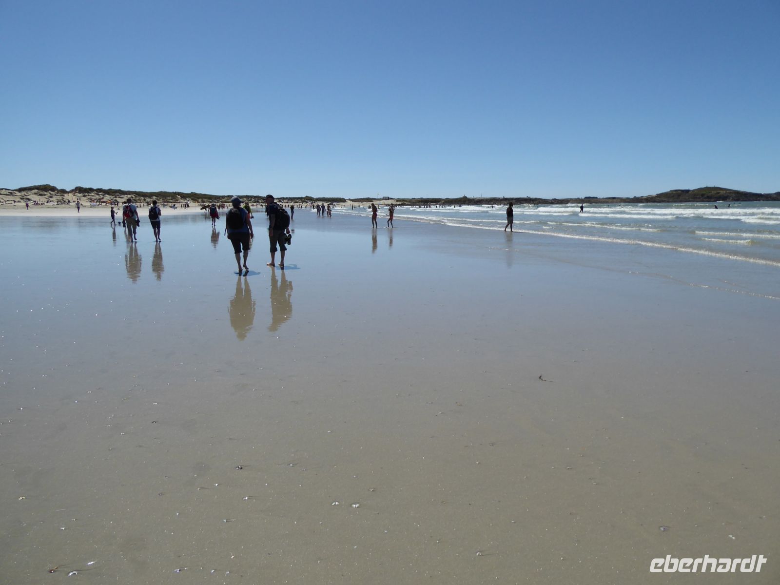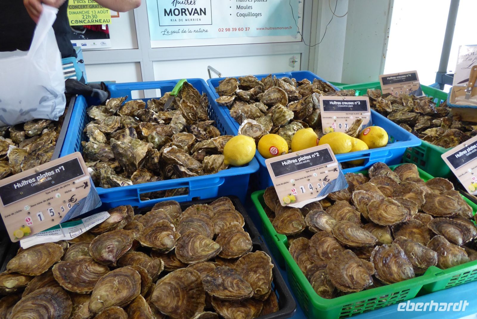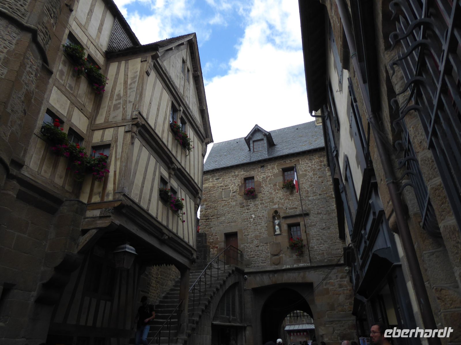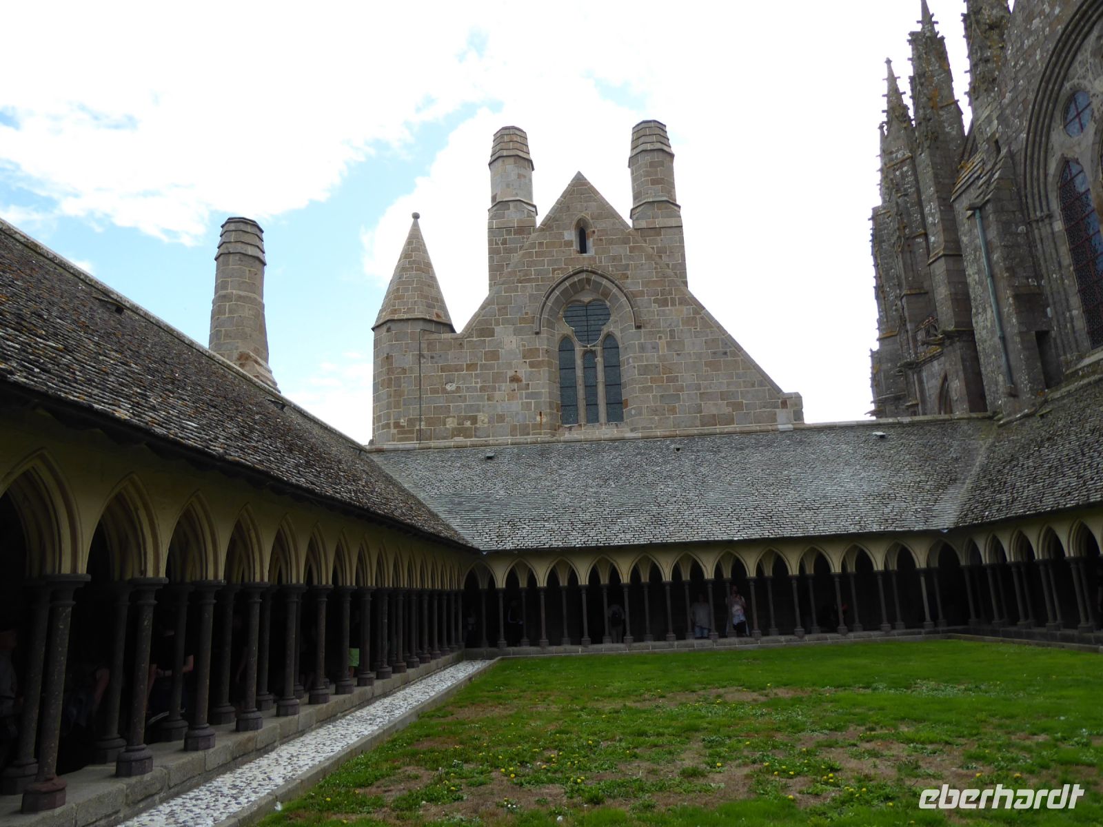 Schon früh machten wir uns auf zum Mont Saint Michel. Noch vor dem großen Ansturm erreichten wir den Inselberg, der auch bei Ebbe ein imposantes Bild bot. Wir entschieden uns, zu Fuß über die erst vor zehn Jahren gebaute Stelzenbrücke zu gehen. Langsam näherten wir uns dem Inselberg, der die Menschen seit 1300 Jahren in seinen Bann zieht. Jedes Jahr wird die Anlage, die seit 1979 UNESCO Weltkulturerbe ist, von über drei Millionen Touristen und Pilgern besucht. Viele Jahrzehnte lang wurde die Klosteranlage als gefürchtetes Staatsgefängnis genutzt, bis sich im neunzehnten Jahrhundert Victor Hugo für die Schließung des Gefängnisses einsetzte. Heute ist der Klosterberg das touristische Highlight der Normandie. Um die obere Abteikirche zu erreichen müssen erst viele steile Stufen erklommen werden, doch die grandiose Aussicht von oben entschädigt für alle Mühen! Ausgerüstet mit Audioguides ließen wir uns die Geschichte der bedeutenden christlichen Wallfahrtsstätte erklären. Bei unserem Rundgang über die Festungsmauern konnten wir die Wattwanderer beobachten und sahen, einer Ameisenstraße gleich, die Besuchermassen über die neue Brücke den Berg erstürmen. Glück gehabt, das frühe Aufstehen hat sich gelohnt - wir hatten den Berg noch fast für uns und konnten im Kreuzgang noch kurz die meditative Stille genießen! Nach und nach füllten sich die Gassen mit einer Flut von Touristen, die sich den Mont St. Michel als Ziel für ihren Sonntagsausflug auserkoren hatten. So verließen wir die Anlage gemeinsam und fuhren mit dem gesteckt vollen Shuttlebus zurück zum Parkplatz. Als nächstes Ziel stand die Stadt Cancale und unsere Austernverkostung an. Austernzucht ist in Cancale schon seit dem 13. Jahrhundert nachgewiesen. Heute beschäftigen 50 Austernzuchtbetriebe mit einem Jahresumsatz von über vier Millionen Euro 300 Mitarbeiter und versorgen die Gourmets in aller Welt mit den besten Austern der Welt. Doch frisch direkt am Strand genossen sind die berühmten Austern aus Cancale doch noch immer am Besten. Mit gut gekühlten Flaschen Weißwein aus dem Pays de Nantes spazierten wir durch das sonntäglich festlich gestimmte Städtchen, vorbei an gesteckt vollen Restaurants, in denen großzügig getafelt wurde. Wir wollten zu den Marktständen am Ende des Ortes, die auch sonntags frische Austern feil bieten, um uns von der Einzigartigkeit des Geschmacks der berühmten Cancaleser Austern überzeugen zu lassen. Auf der großen Freitreppe hinter dem Markt fanden wir ein gemütliches Plätzchen zwischen Feinschmeckern aus aller Welt, die sich hier am Strand ein Stelldichein geben. Am Anfang eher zögerlich, leisteten dann auch wir unseren Beitrag zur Erhöhung des Berges aus Austernschalen zu unseren Füßen und genossen die Atmosphäre dieses besonderen Ortes. Zurück in St. Malò reichte es noch für ein kleines Bad im Meer oder für einen Spaziergang durch die Altstadt. St. Malò wurde nach der Bombardierung durch anglo-amerikanische Truppen im August 1944 nach alten Plänen originalgetreu wieder aufgebaut und ist heute das Ziel internationaler Touristen.
