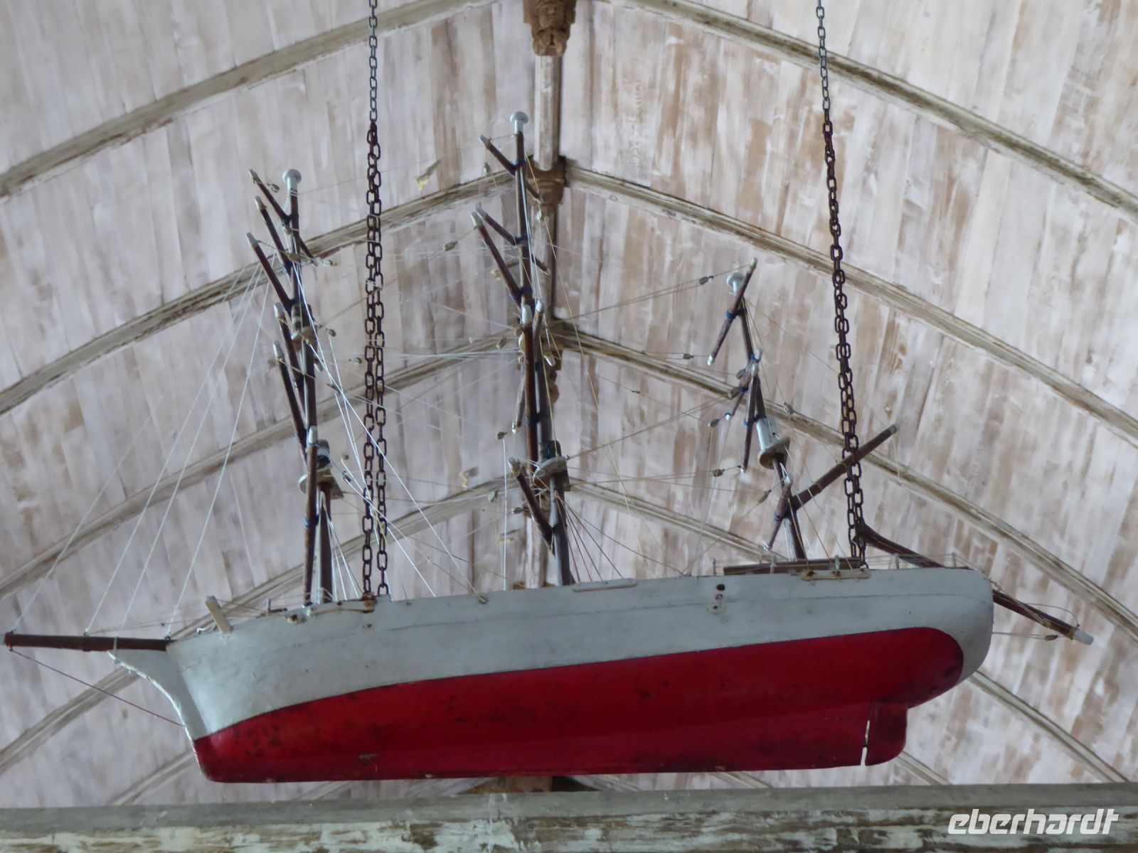 Auf unserem Plan stand heute eine Wanderung um die Pointe du Raz, der westlichsten Landspitze Frankreichs in Finistère, gut 60 Kilometer von Quimper entfernt. Nach einer knappen Stunde legten wir einen kurzen Zwischenhalt im Confort-Meilars ein. Die Kirche, direkt an der Straße gelegen birgt ein kleines Geheimnis: das Rad der wundertätigen Maria. Schon seit über 400 Jahren hängt hoch im Kirchenschiff ein hölzernes Rad, das mit kleinen Glöckchen besetzt ist. Mittels einer Kette in Schwung gebracht, ertönt eine seltsame Melodei. Ein einzigartiges Erlebnis! Ergriffen lauschten wir dem einzigartigen Glockenspiel.