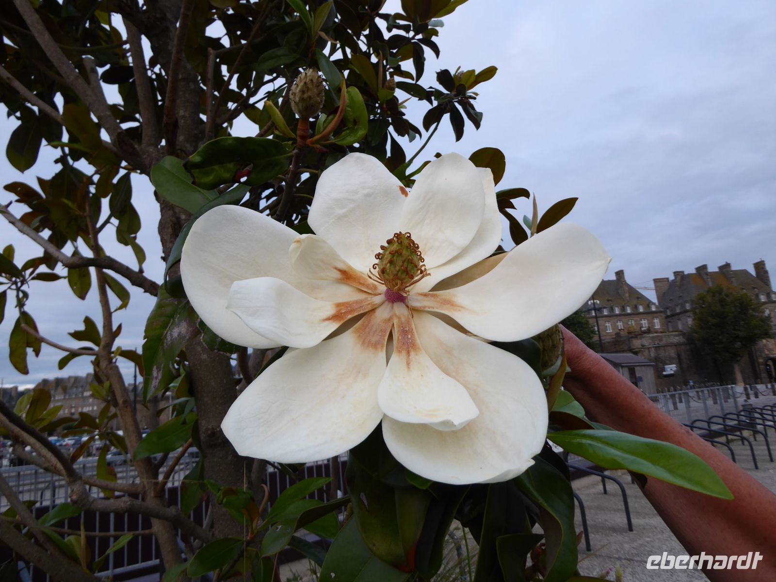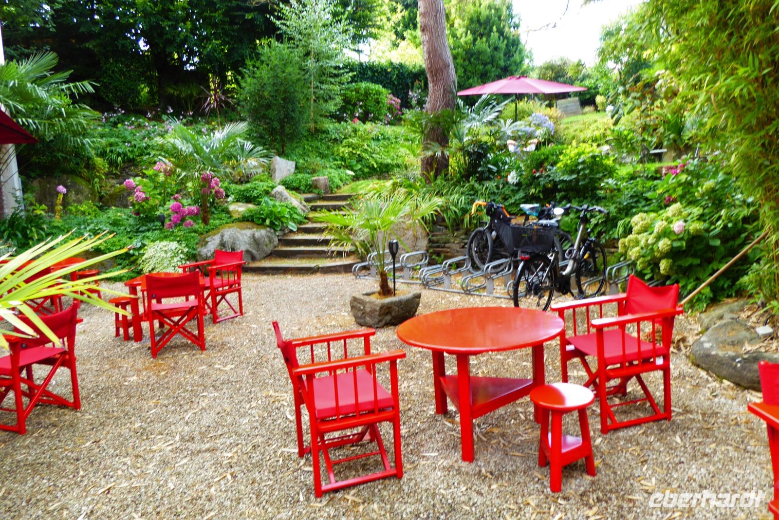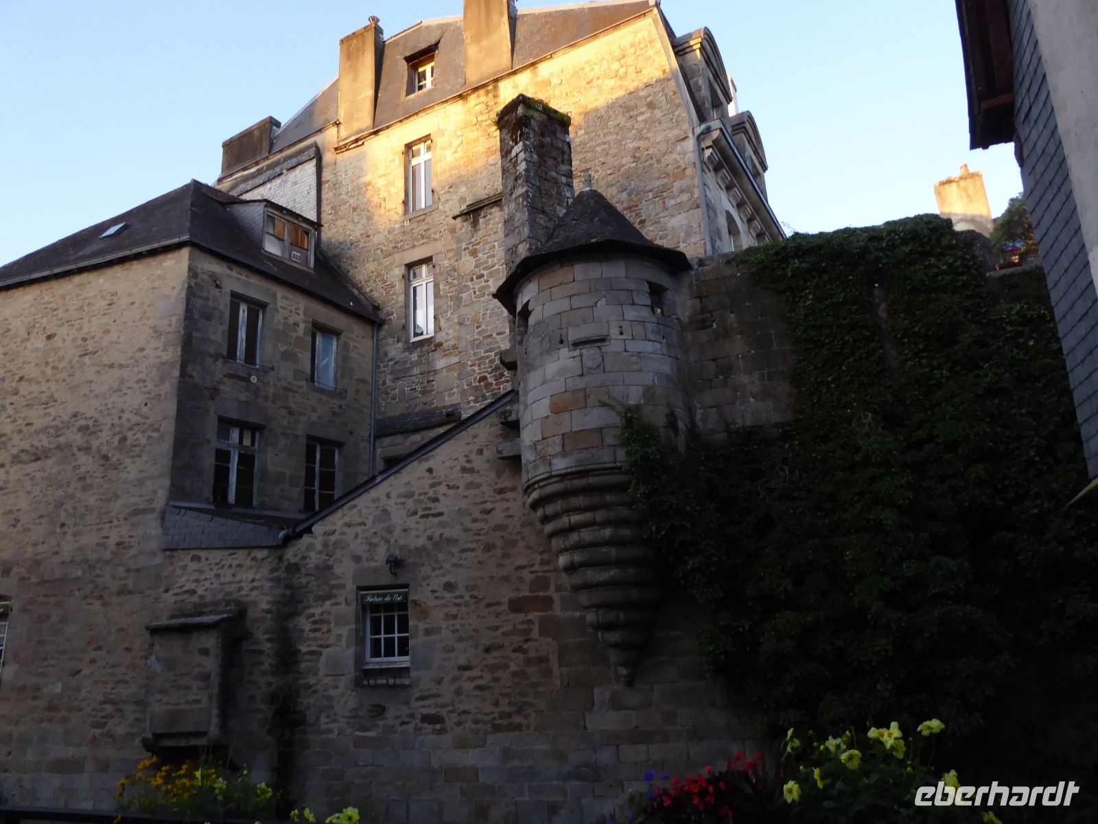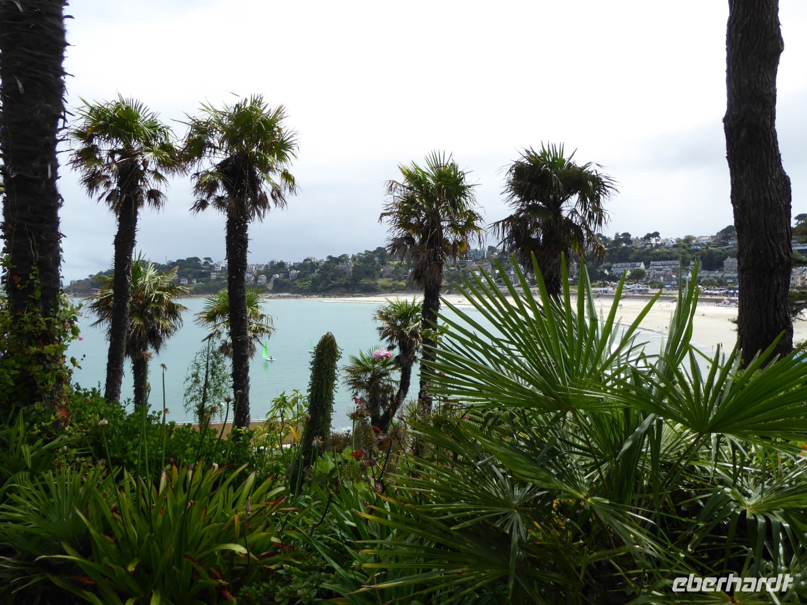 Heute stand die Wanderung zu dem vielleicht schönsten Abschnitt unserer Reise an. Bei herrlichem Wetter und angenehmen Temperaturen knapp unter 25° wanderten wir den Weg am Strand entlang, den das Meer erst vor kurzer Zeit freigegeben hat. Um dem zähen Schlamm zu entkommen, mussten wir eine kleine Klettertour über die Wellenbrecher auf uns nehmen. Durch die eleganten Villenviertel von Trégastel, vorbei an den Kapitänshäusern und den beiden Wassermühlen von Ploumanac´h erreichten wir den kleinen Stausee, wo das Traouiero Tal abzweigt, das im sechsten Band der Romane um Kommissar Dupin, 'Bretonisches Leuchten', eine wichtige Rolle spielt. Hier beginnt der geologisch interessanteste Teil der Route. Vor 300 Millionen Jahren sind diese Steine entstanden, die, wie von Riesenhand geworfen, bizarre Formationen bilden. Bei der Interpretation der Gebilde sind keine Grenzen gesetzt: neben einem großen Stapel Crêpes sitzt ein Papagei und sieht das nicht aus wie ein Schwarzwälder Bollenhut? Und da hinten, ist das nicht ein riesiger Igel? Sogar das markante Profil Gérard Depardieus ist in den Formationen zu entdecken! Wir gingen über den alten Zöllner- und Schmugglerpfad, der uns immer wieder herrliche Ausblicke auf das Meer und die vorgelagerten Inselchen bot. Mitten am Strand von Ploumenac´h, steht ein kleines Oratorium mit der Statue des Heiligen Guirec. Eine Nadel in seine Nase gestochen, soll heiratswilligen jungen Mädchen einen Ehemann bescheren. Kein Wunder, bei der Beanspruchung, dass die alte Holzstatue längst in massiven Stein ausgetauscht wurde. Am Leuchtturm Men Ruz angekommen, kletterten wir über die blanken Felsen, an die gewaltige Wellen donnerten. Das große Gebäude neben dem Leuchtturm wurde 1903 für den Sohn von Gustav Eiffel errichtet und steht derzeit zum Verkauf. Leider verschlechterte sich das Wetter mit kurzen aber kräftigen Schauern, vor denen wir im Maison Littoral Schutz fanden. Kurze Zeit später schien wieder die Sonne und wir wanderten weiter entlang dieser sensiblen Küstenlandschaft, die schon mehrere Ölkatastrophen zu verkraften hatte. Die Spuren der Havarie der Amoco Cadiz 1978 sind noch immer zu sehen. Die weitere Wanderung war ein einziges Spiel der Farben: der rosa Granit, der tiefblaue Himmel, das Smaragdgrün des Meeres, dunkelgrüne Koniferen, Palmen, wilde leuchtend orangefarbene Montbretien und dazu die blau-violett blühenden Hortensien. Wir wanderten durch schattige Laubengänge weiter und gut eine Stunde später erreichte unsere starke Wandergruppe den herrlich weißen Sandstrand von Trestraou. Der Strand lud ein zum Verweilen und so verbrachten wir unsere Zeit mit Sonnenbaden, Strandlaufen und Eisessen, bevor es wieder Zeit wurde, den Bus zu besteigen. Leichte Wellen umspülten die Mauern der kleinen Korsarenstadt St. Malò, die wir am frühen Abend erreichten. Das Hotel Univers liegt mitten in der Altstadt am Festungsring und die engen Gassen laden zu Entdeckerspaziergängen ein. Die 1,8 Kilometer lange Stadtmauer schließt die Altstadt intra muros ein, durchbrochen nur von eindrucksvollen Stadttoren. Von oben hat man einen fantastischen Blick einerseits auf die imposanten Gebäude der Stadt und andererseits auf die vorgelagerten Inseln und Felsen, die bei Ebbe langsam aus dem smaragdgrünen Wasser emporsteigen. Das Fort National, Teil der Verteidigungsanlagen Vaubans, war gerade zu Fuß zu erreichen und wir erlebten nach dem Abendessen im Hotel Chateaubriand in stimmungsvollem Ambiente des Fin de Siècle, einen fantastischen Sonnenuntergang.