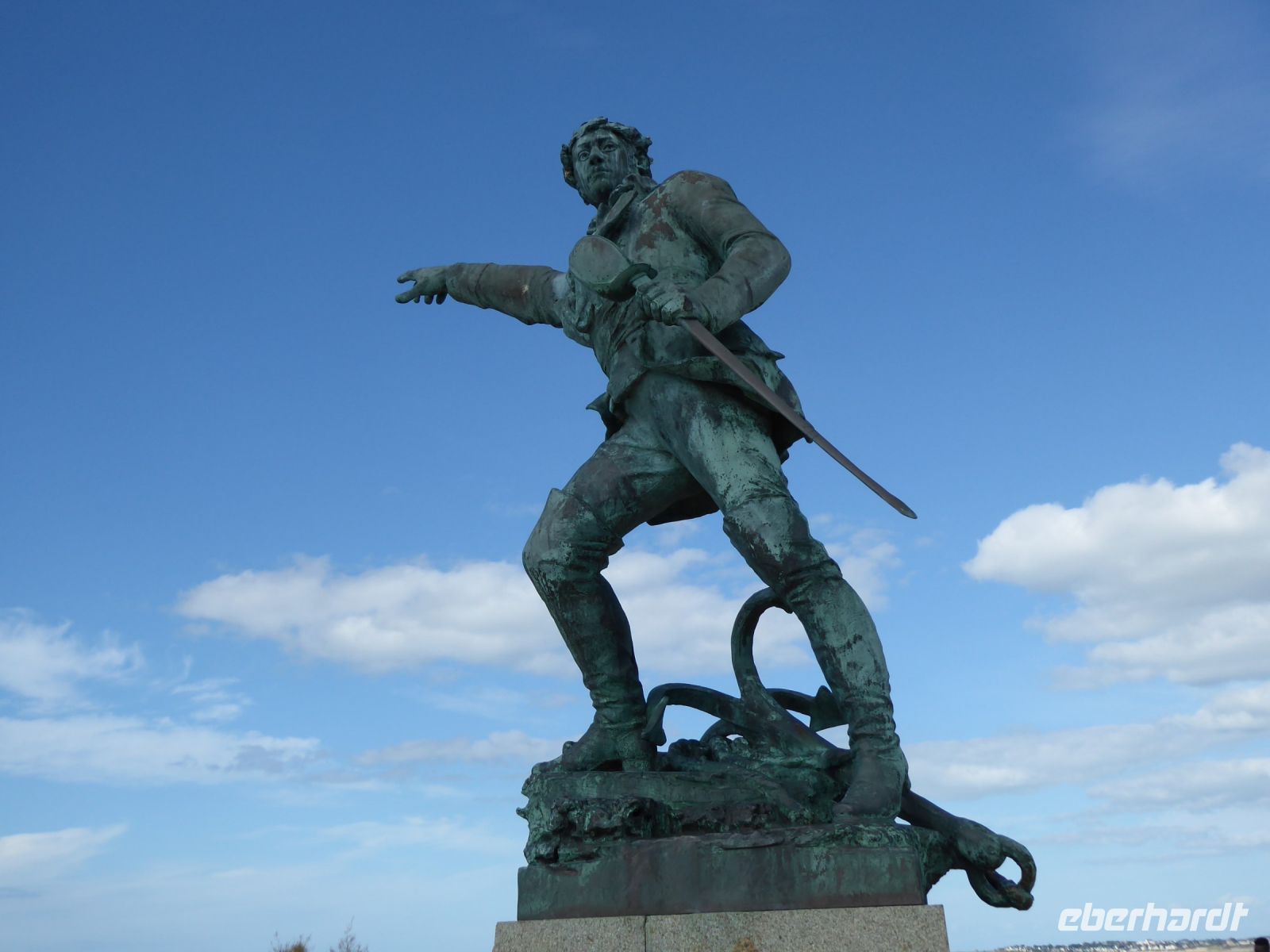 Vor unserer heutigen Wanderung wollten wir Concarneau einen Besuch abstatten. Die Seefeste, die Ville Close, liegt auf einer kleinen, der heutigen Stadt vorgelagerten Insel mit gerade mal 3,5 Hektar. Sie ist von dicken Festungsmauern umgeben. Die ältesten stammen bereits aus dem vierzehnten Jahrhundert. Erneuert und ausgebaut wurden sie von Vauban, dem Architekten des Sonnenkönigs Ludwig XIV. Die Handschrift dieses großen Baumeisters ist bis heute zu erkennen. In der Rue Vauban wurde übrigens 1982 unter der Regie von Claude Chabrol der Film die „Fantome des Hutmachers“ mit Michel Serrault und Charles Aznavour gedreht. Der Schriftsteller Henry Belbeoch erklärt den Reiz seiner Stadt: „Concarneau ist eine Hafenstadt. Von Grund auf kosmopolitisch, heißt sie Fremde willkommen und steht deren Sprache offen.“ Die vielen bunten Flaggen, die auf den Mauern wehen, unterstreichen diese Weltoffenheit. Von den Festungsmauern hat man einen schönen Blick auf die Uferstraße, an der das „i´Amiral“, das Stammlokal des (fiktiven) Kommissar Dupin liegt. Unter dem Pseudonym Jean-Luc Bannalec hat 2012 der Autor und Verleger Jörg Bong einen neuen Serienhelden geschaffen, dessen Einsatzgebiet sich genau hier in der Bretagne verortet. Die Stadt ist seither ein viel besuchter Ort für deutsche Krimifans. Bei den französischen Lesern sind die Bücher allerdings noch nicht angekommen. Pünktlich zum Beginn der deutschen Sommerferien 2023 ist der zwölfte Band der Serie erschienen.
