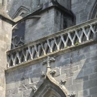 Die Kathedrale, deren Vorgängerbau 1060 von Wilhelm dem Eroberer geweiht worden war (davon noch erhalten die Krypta und Teile des Nordturms), erhielt ihre fantastische Fassade bereits ab 1170 – damit rückt sie zeitlich in die Anfänge von Notre Dame de Paris und Chartres. 1185 wurde das romanische Schiff abgerissen, 1247 war der Bau vollendet. Nur die Querhausportale, die Rose und die Marienkapelle entstanden noch wenig später. Die Apsisfenster sind heute nicht mehr original, sondern wurden durch die der im 2.WK zerstörten Kirche St.Vincent ersetzt. Das linke Fassadentympanon aus dem 13.Jh. zeigt den Tanz der Salome, mehr akrobatisch als erotisch. Im Inneren des Baues gibt es wertvolle Gräber und das Herz des Richard Löwenherz. Zerstörungen durch Hugenotten und die Revolution machten auch vor dieser Kathedrale nicht halt. Innen erhalten aber ist eine spätgotische Treppe mit zierlichem Maßwerk. Nach einem Brand des Vorgängers entstand 1825 der gusseiserne, 151 m hohe Vierungsturm, zu seiner Zeit sehr umstritten und heute Bestandteil der faszinierenden Turmlandschaft der Stadt.