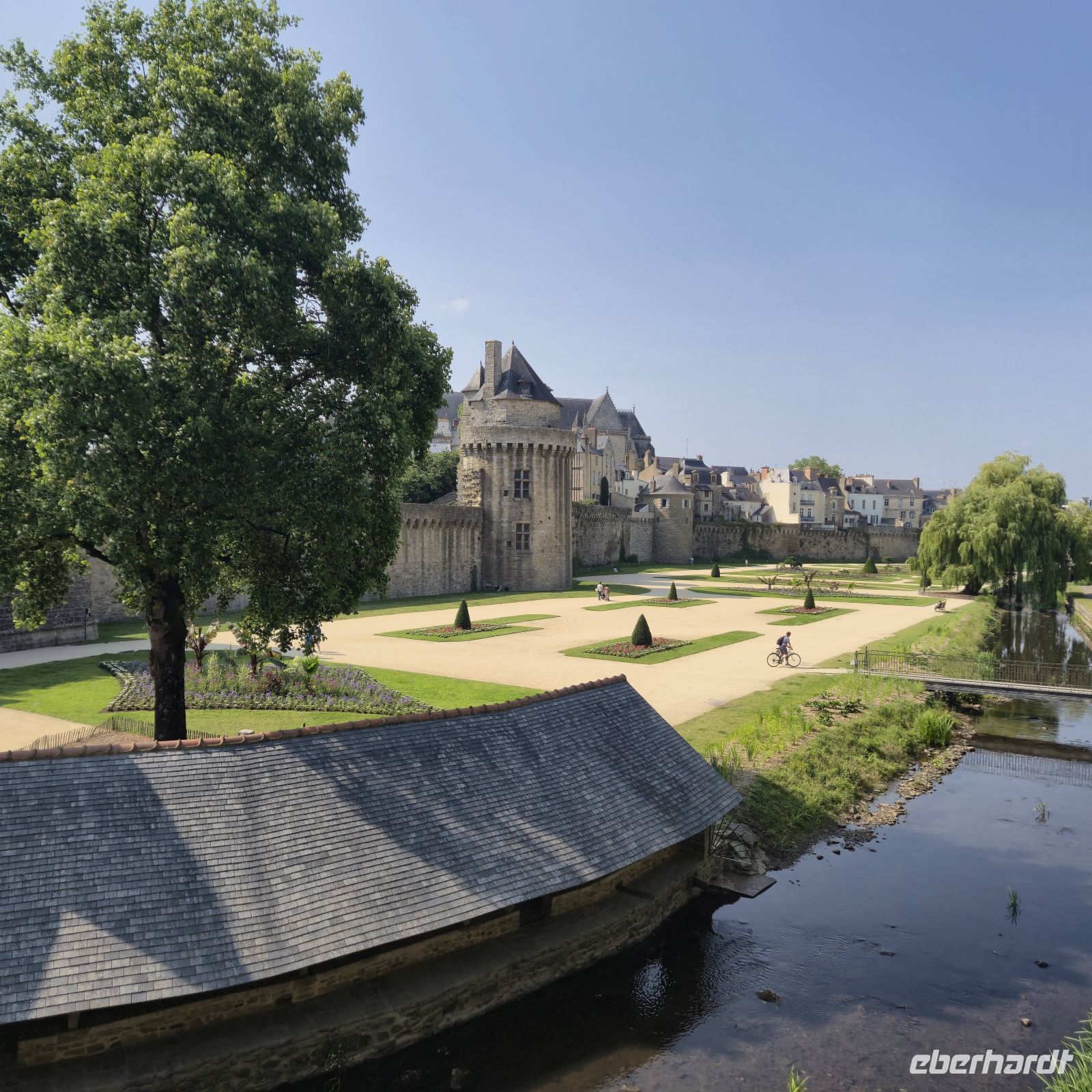 Die Burg am Stadteingang wurde von Herzogin Anne einst gegen die Stadt errichtet. Heute dient sie als Rathaus – und symbolisch wehen oben die bretonische und unten die französische Flagge.