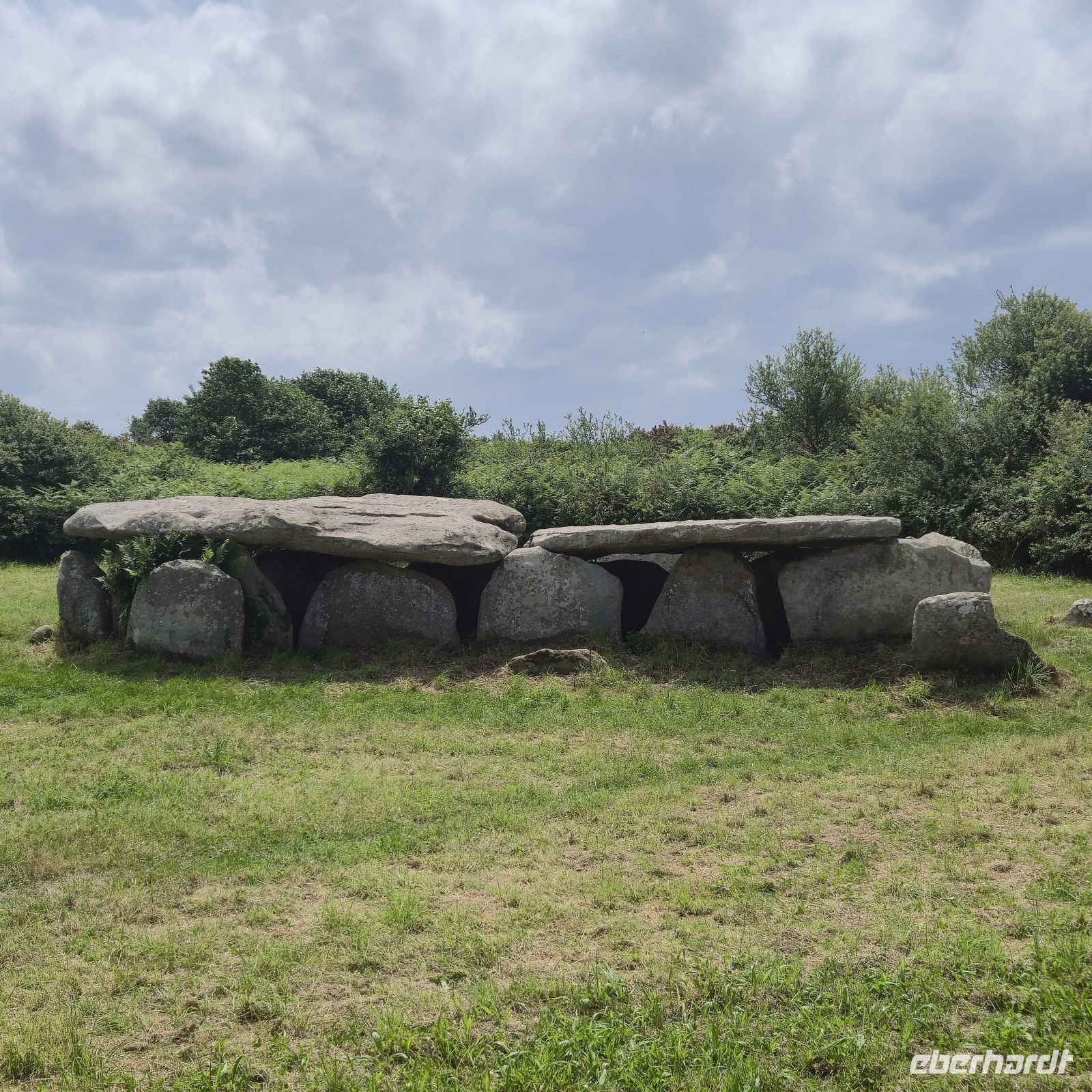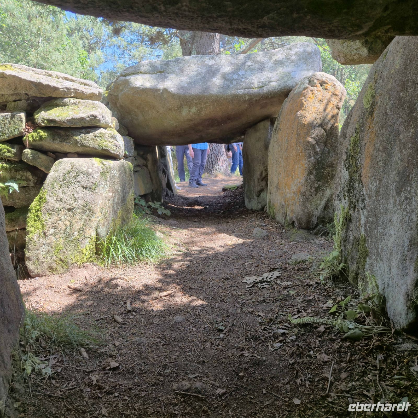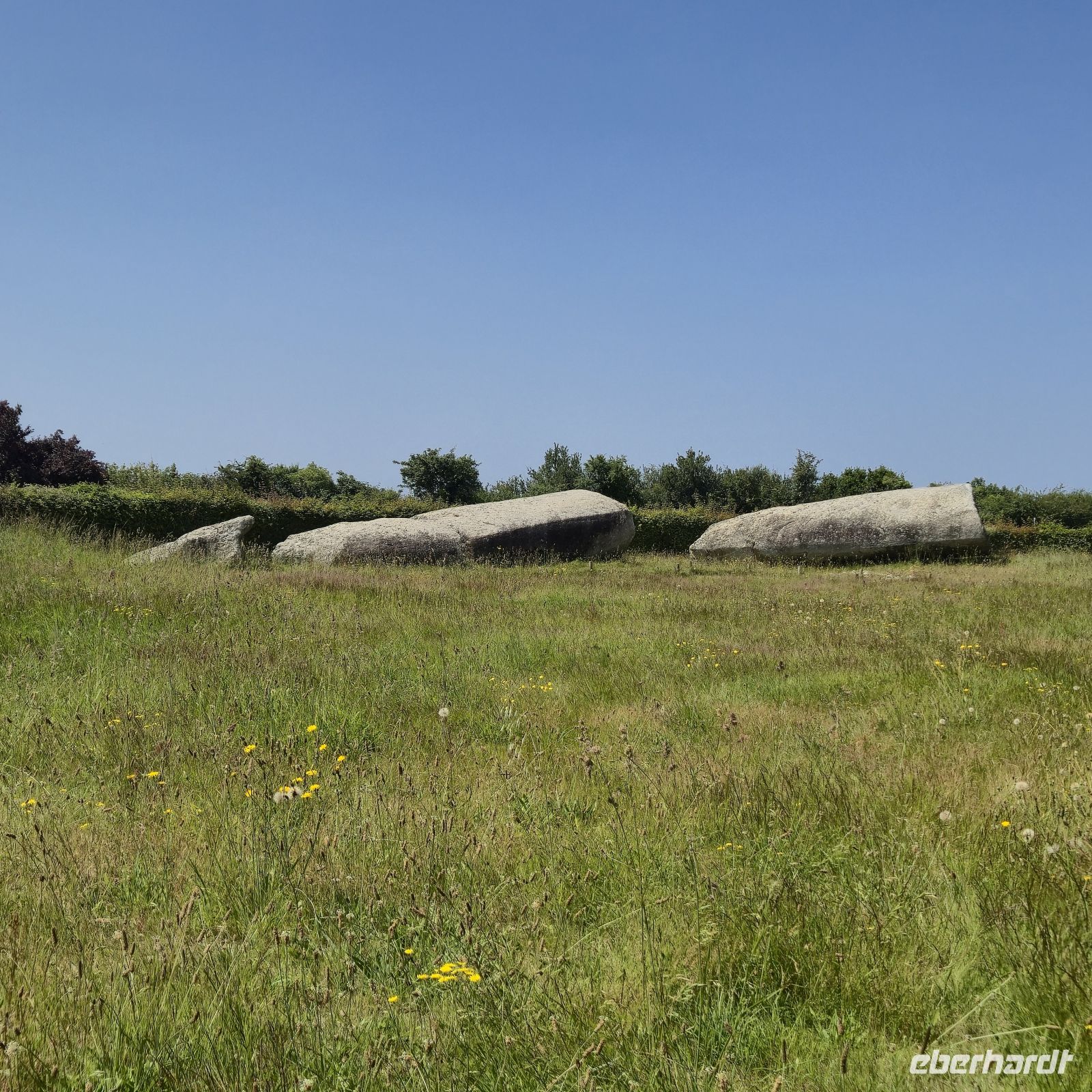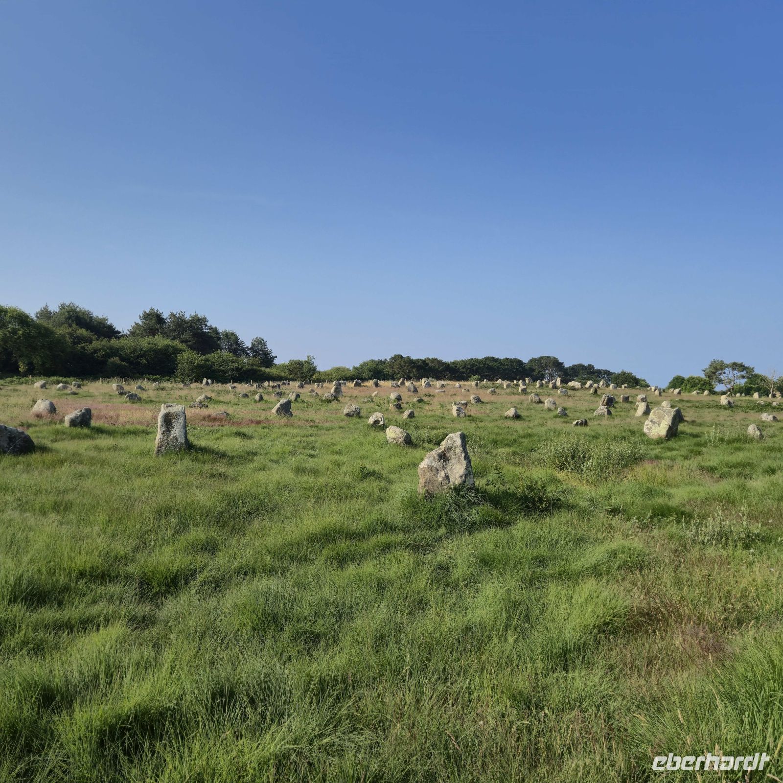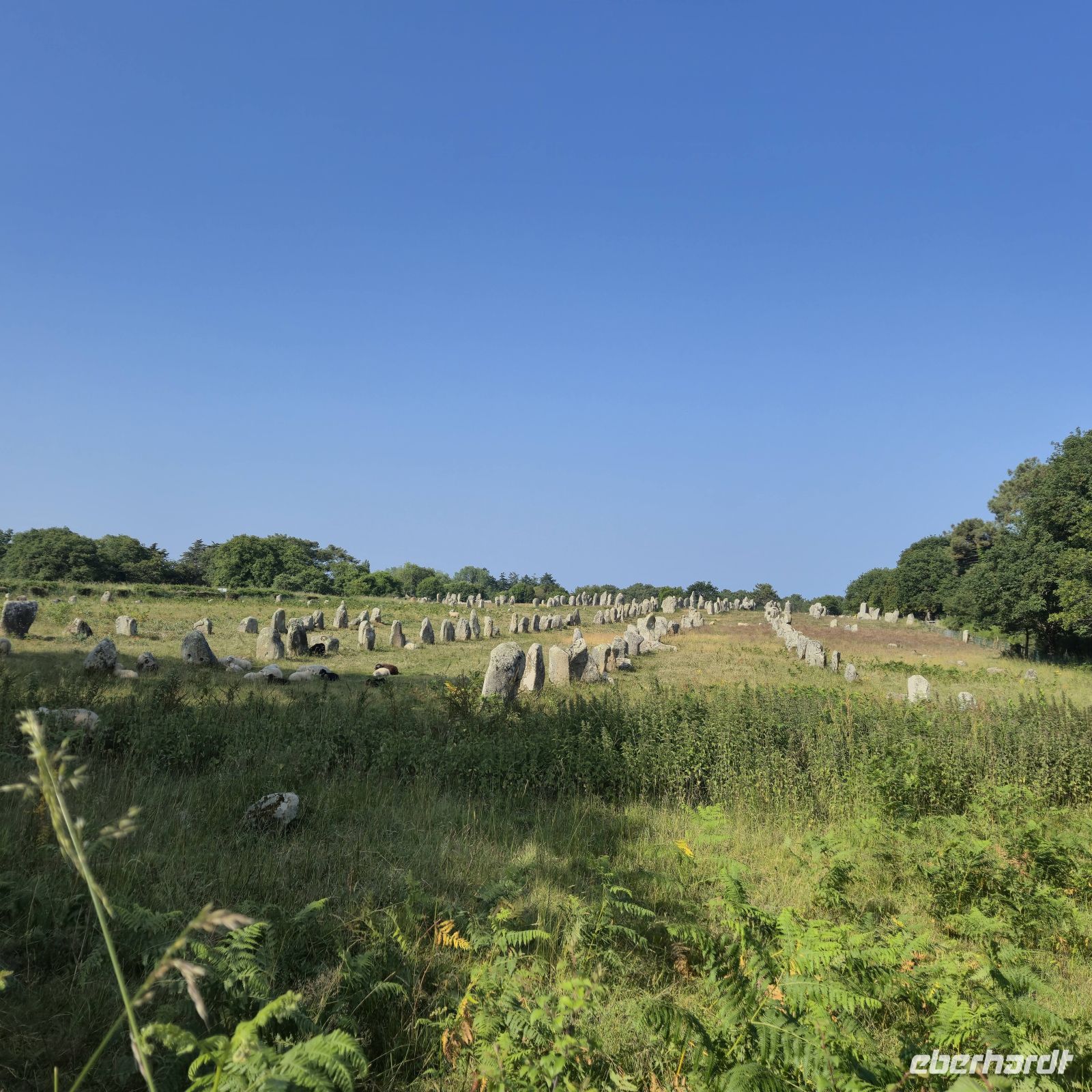 Hinter dem kleinen Ort Crocuno stiegen wir später nochmals aus für eine kleine Wanderung entlang gleich mehrerer Dolmen, bis zu den Alignements de Kerzerho, weiteren Steinreihen. Die größten Menhire ragen 6 m auf.