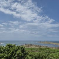 Eine längere Fahrt brachte uns nun an die Nordküste der Bretagne. Auch auf der Grand Ile, die eigentlich ziemlich klein ist und deren höchster Punkt auf 35 m Höhe liegt, erwarteten uns wieder Sand und Dünen und schönes Wetter. Eine 3/4 -Umwanderung bis zum kleinen Hafen dauerte nur 1 Stunde 40 Minuten. Unterwegs sahen wir eine weitere gut erhaltene "Allée Couverte", einen steinzeitlichen Dolmen.