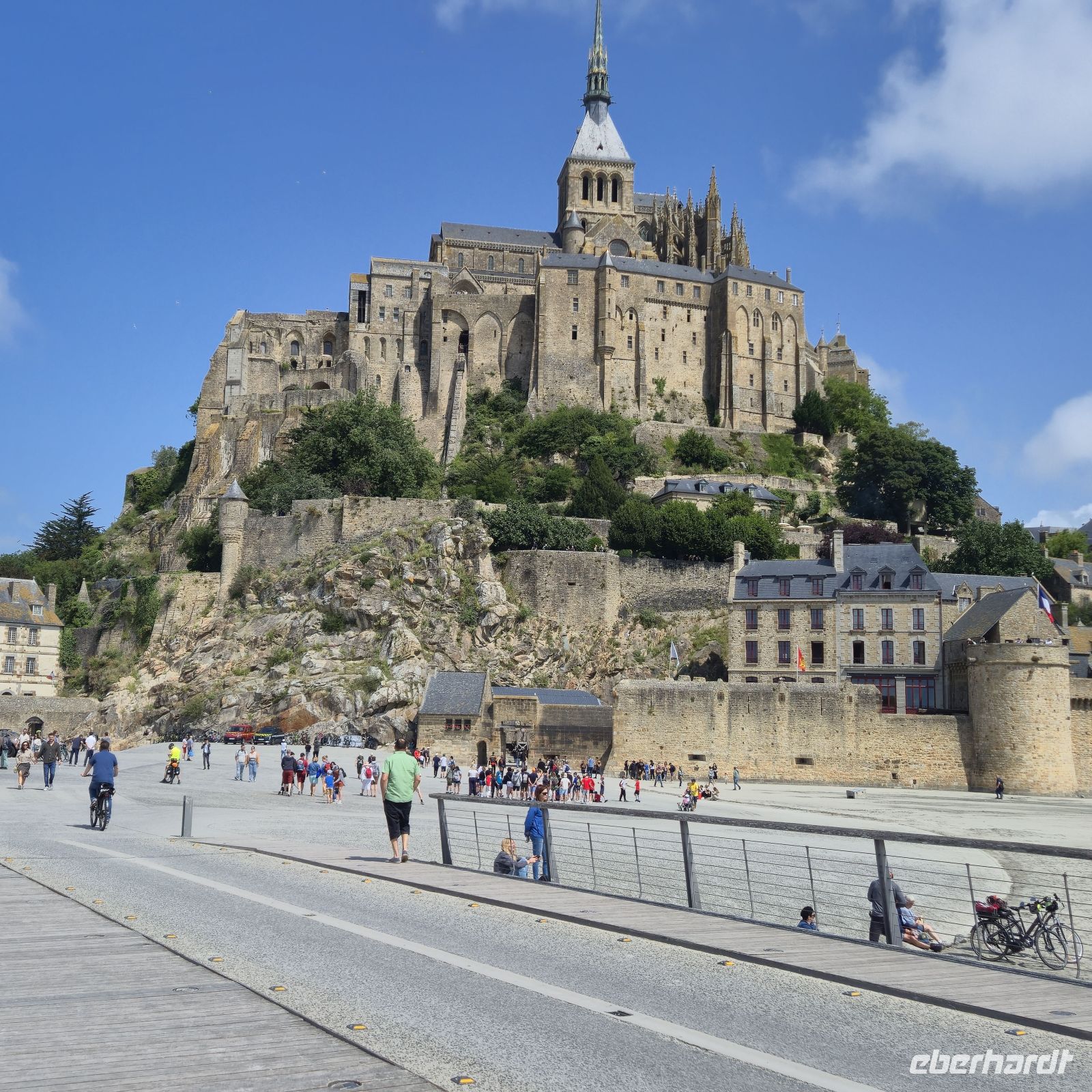 Der Mont Saint-Michel, nach dem Eiffelturm das meistbesuchte Denkmal Frankreichs, ist ein symbolträchtiger Ort voller Geschichte, Mythos und architektonischer Wucht. Die Silhouette des Klosterbergs ragt markant aus der Bucht – früher nur bei Ebbe erreichbar, heute durch eine moderne Stelzenbrücke.
