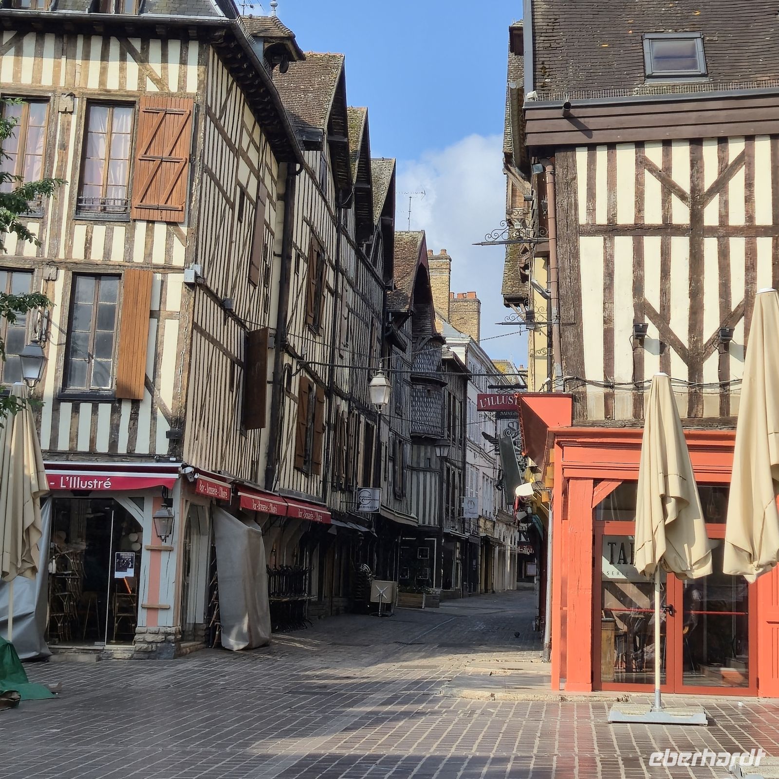 Unser erster Halt war die charmante Stadt Troyes am Oberlauf der Seine. Mit ihren gut erhaltenen Fachwerkhäusern, zahlreichen Kirchen und Stadtpalästen (sogenannten „Hôtels“) gilt sie als eine der schönsten Städte der Champagne. Nach dem Stadtbrand von 1524 wurden viele Gebäude prachtvoll wiederaufgebaut. Besonders sehenswert waren die Kirche Ste. Madeleine mit ihren Fenstern im Flamboyant-Stil, das barocke Rathaus, die spätgotische Basilika St. Urbain, sowie die imposante Kathedrale St. Pierre et Paul. Letztere veranschaulicht das Prinzip gotischer Baukunst: maximale Durchlichtung der Mauern durch Glas, stabilisiert durch außenliegende Strebebögen – besonders eindrucksvoll im „Strebenwald“ am Chor.