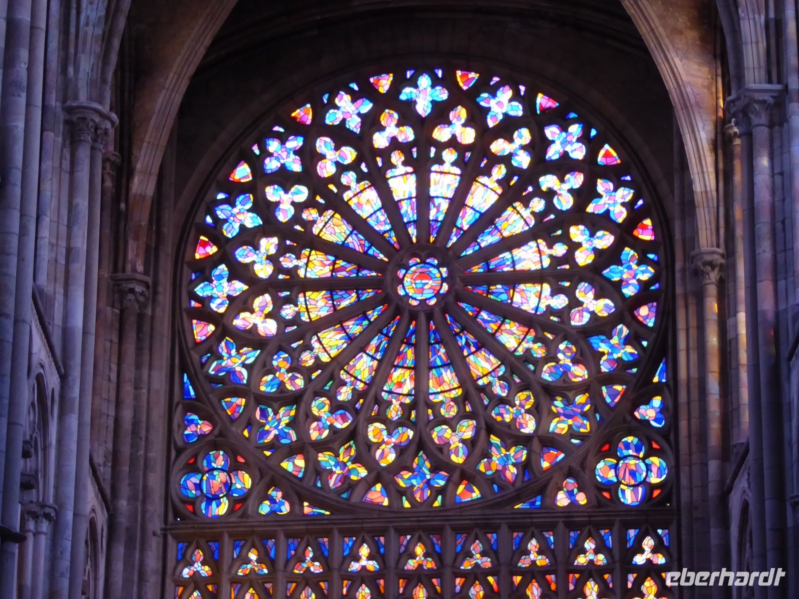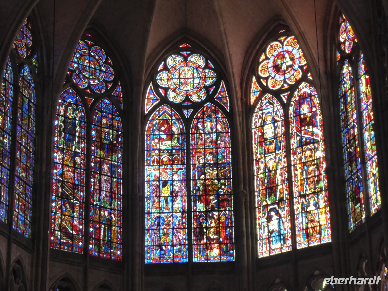 Am nächsten Morgen hieß es Abschied nehmen von der Bretagne, dem Meer und der Küste. Die erste Zwischenstation unserer Rückreise war die an der oberen Seine gelegene Stadt Rouen. Die Kathedrale Notre-Dame mit ihren beiden markanten Türmen der Westfassade steht auf den Grundmauern eines romanischen Vorgängerbaus. Der sogenannte Butterturm ist eins der schönsten Beispiele für die Kunstfertigkeit der Bauleute der Hochgotik. Er ragt 75 Meter in den Himmel. Der Maler Claude Monet war fasziniert von der Fassade der Kathedrale, die er in einem dreiunddreißig Gemälde umfassenden Bilderzyklus festgehalten hat. Seine Werke sind in den großen Museen in aller Welt vertreten. Mit dem Fotoapparat ist es längst nicht zu einfach das gesamte Bauwerk in einem Bild festzuhalten. Die Kirche Saint-Maclou mit dem dazugehörigen ehemaligen Hospital, dem sogenannte Pesthof, liegt einige Schritte hinter der Kathedrale. In einer der engen Gassen wohnten Jean-Paul Sartre und Simon de Beauvoir. Bei unserer kompakten Stadtführung kamen wir vorbei am Justizpalast, einem prachtvollen gotischen Profanbau und dem Uhrenturm mit seiner astronomischen Uhr aus dem vierzehnten Jahrhundert, bevor wir den alten Markt erreichten. Dort ist der Platz an dem die junge Jeanne d´Arc aus Lothringen im Jahre 1431 den Flammentod erleiden musste. Die moderne Kirche an dem von Fachwerkhäusern bestandenen Marktplatz, ist dieser jungen und mutigen Frau, deren Visionen und Taten den 100-jährigen Krieg beendeten, geweiht. Am frühen Abend erreichten wir Reims in der Champagne. Unser Hotel beim Bahnhof lag nur wenige Schritte entfernt von dem berühmten Traditionslokal Boulingrin, wo wir unser letztes gemeinsames festliches Abendessen verspeisten. Mit einem kleinen Abendspaziergang durch das nächtliche Reims mit seinen römischen Hinterlassenschaften, seinen modernen Gebäuden aus den zwanziger Jahren des vergangenen Jahrhunderts und natürlich der beeindruckenden Kathedrale Notre-Dame, einem Meisterwerk der Hochgotik, beendeten wir unser umfangreiches Besichtigungsprogramm mit einer kleinen Überraschung hinter der Kathedrale: Bei herrlichem Mondenschein veranstalteten wir noch einen Umtrunk zum Abschied und stießen gemeinsam an auf diese wunderschöne Reise. Es war schon spät, als wir uns auf den Heimweg machten, zurück zum Hotel. Die Fassade der Kathedrale erstrahlte im hellen Licht, und wenige Sekunden später, tauchte sie, Computer animiert, in ein wunderschönes Farbkleid.